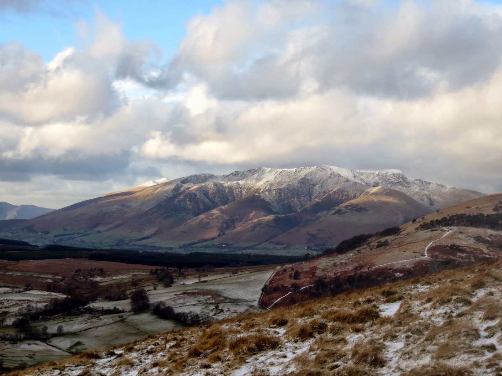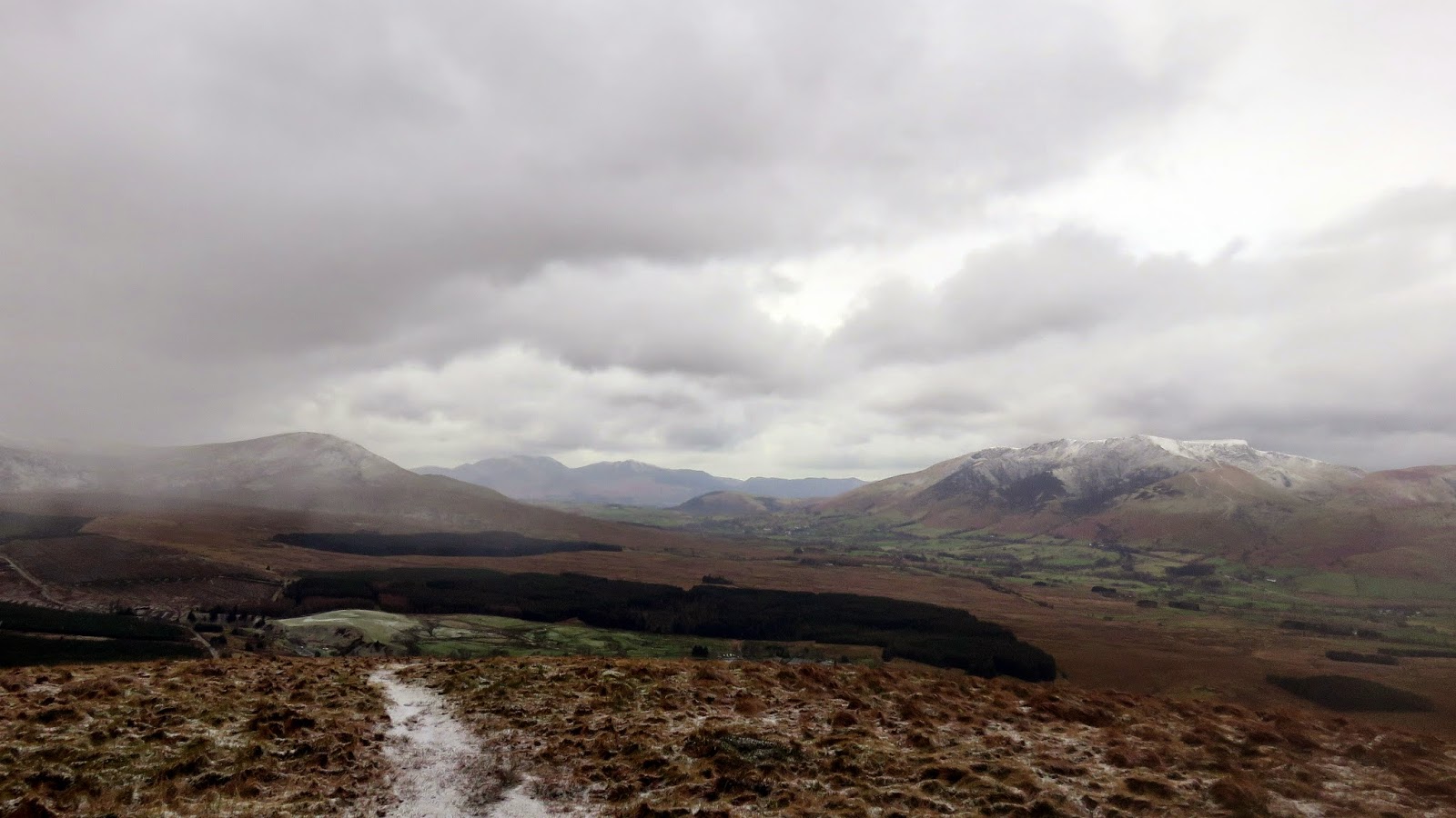| The clouds break over the Vale of Keswick |