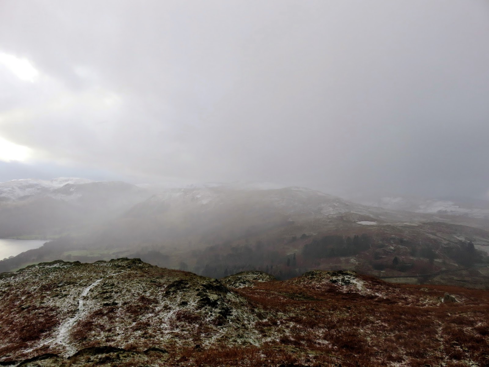 Green Hill, connected to Airy Crag by the new path, has the best views of the day, stretching along Ullswater to Patterdale and including the majority of the fells that encircle it. A perfect spot to survey the incoming snow showers that were about to give me another lashing. An obvious path from here begins the descent down towards the final stop and perhaps the true highlight of the day; Aira Force.