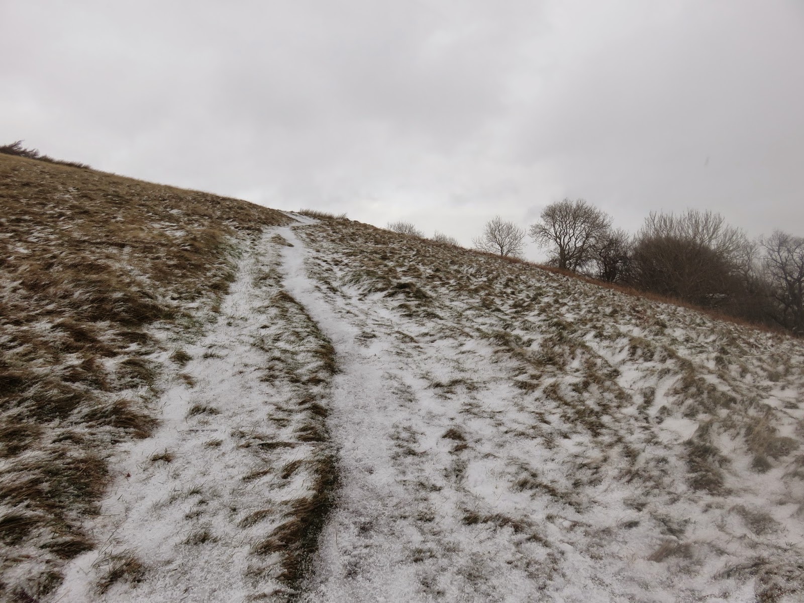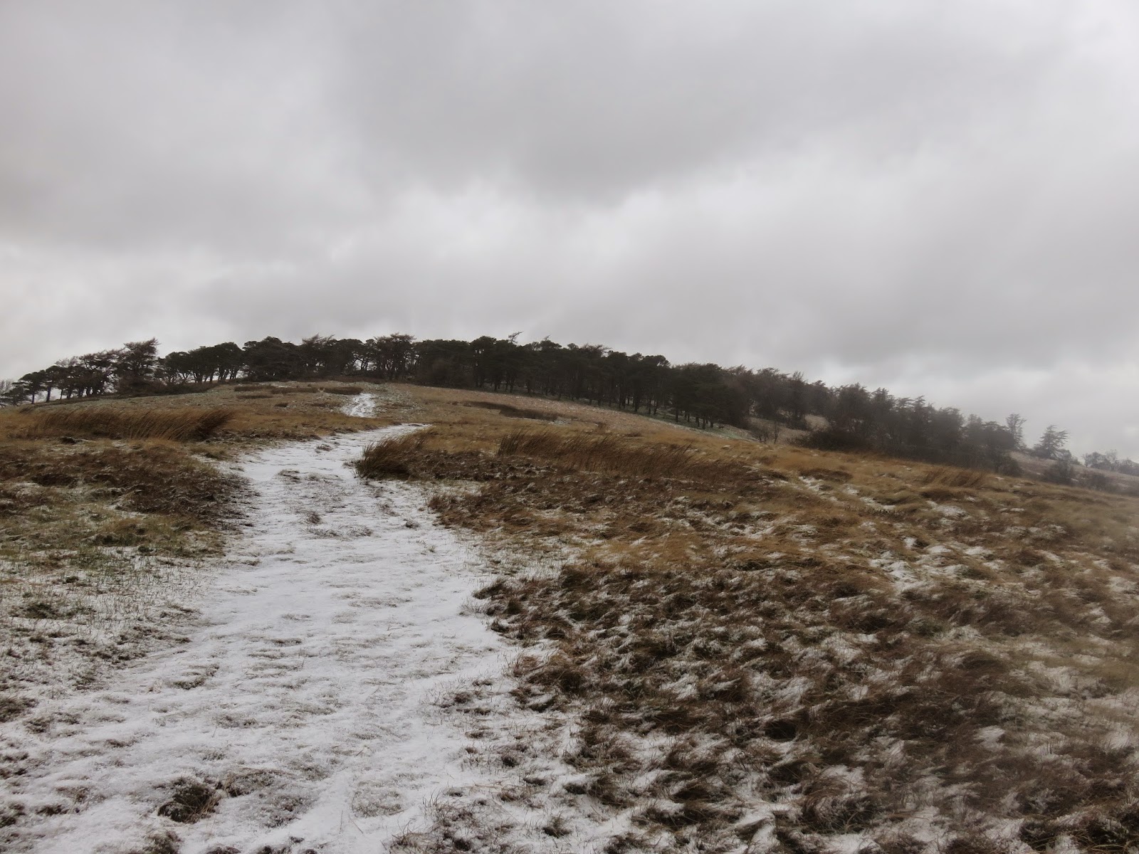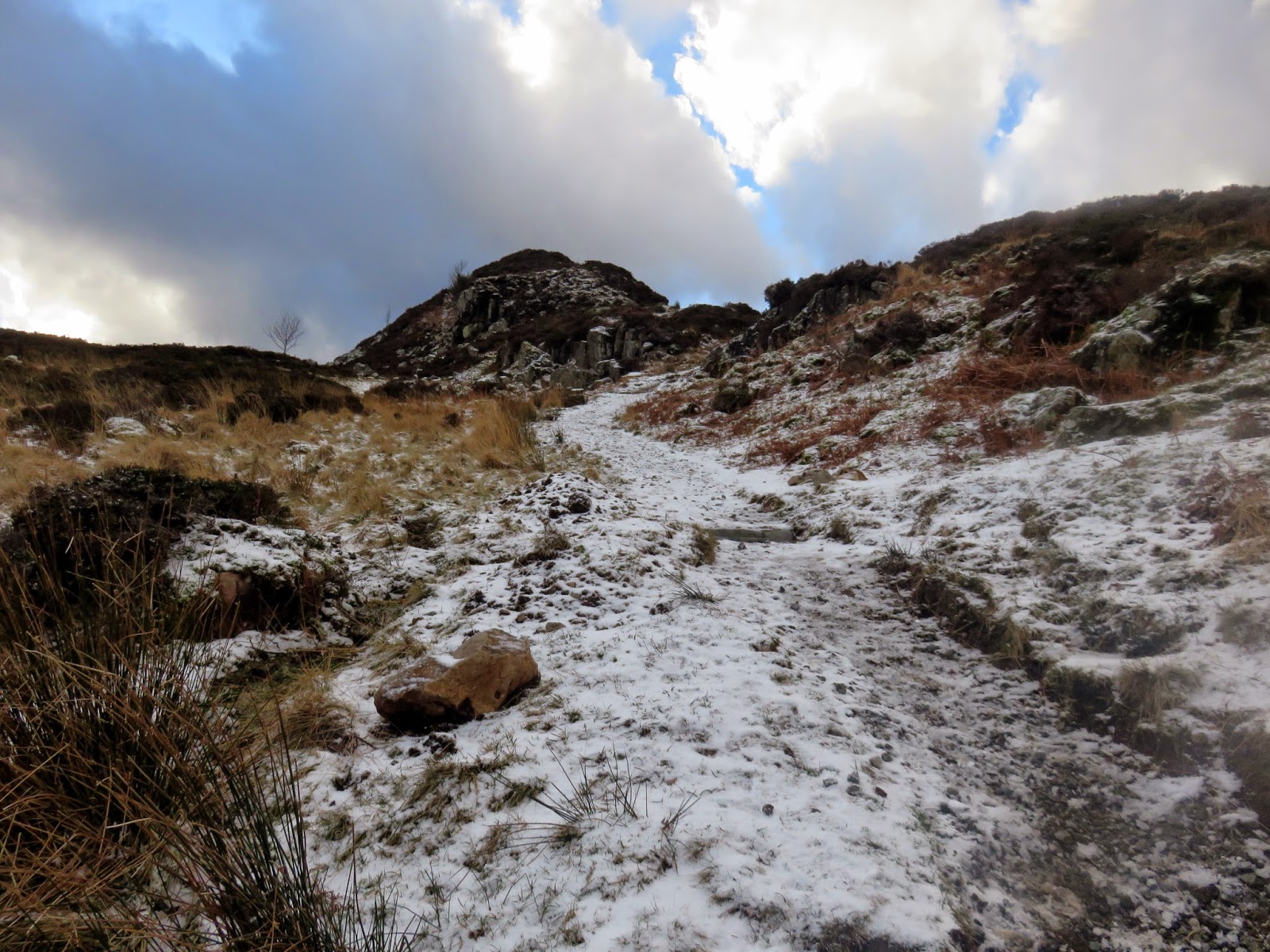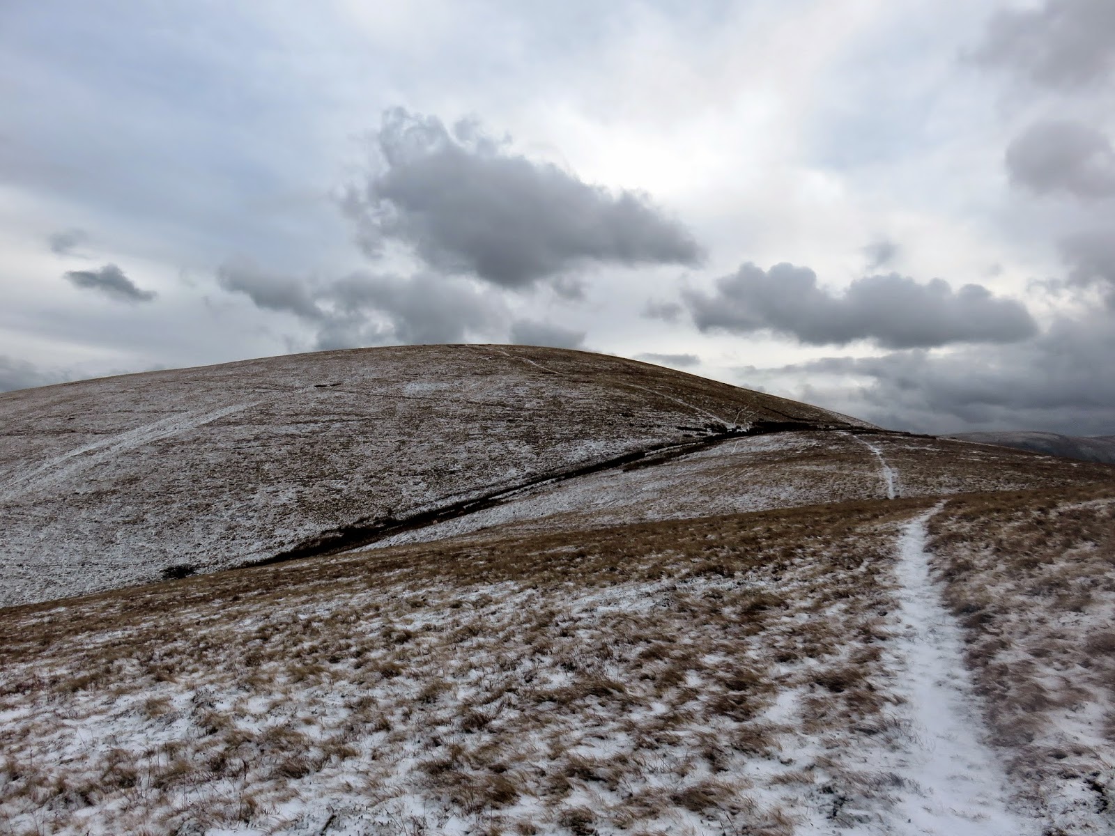 After a short, steep section the gradient abates and the path wends its way up the hillside, into the stiff wind. A series of snow showers lashed me with some horizontal graupel on my way up but, luckily, the weather was starting to clear a bit when I reached the top.