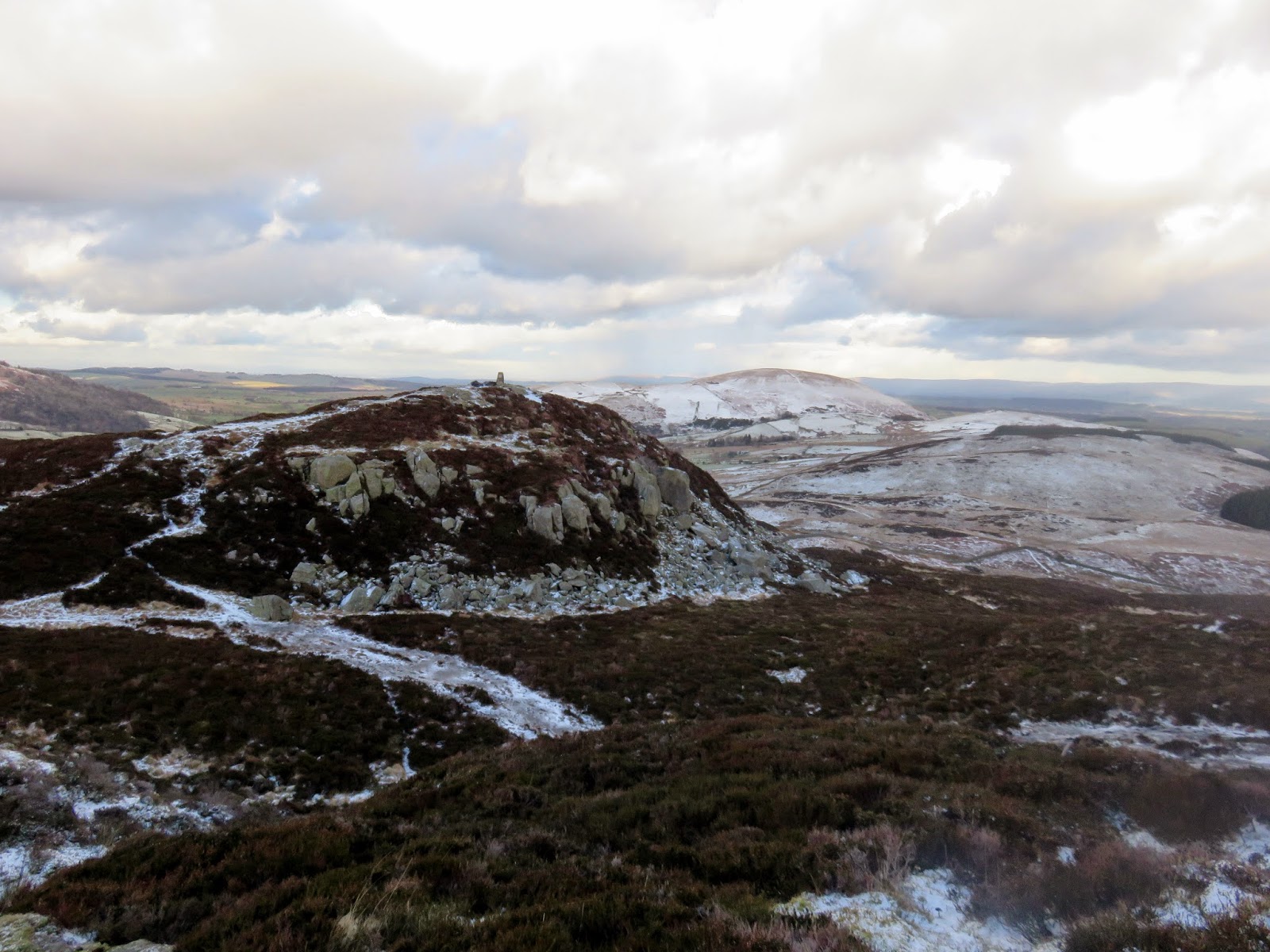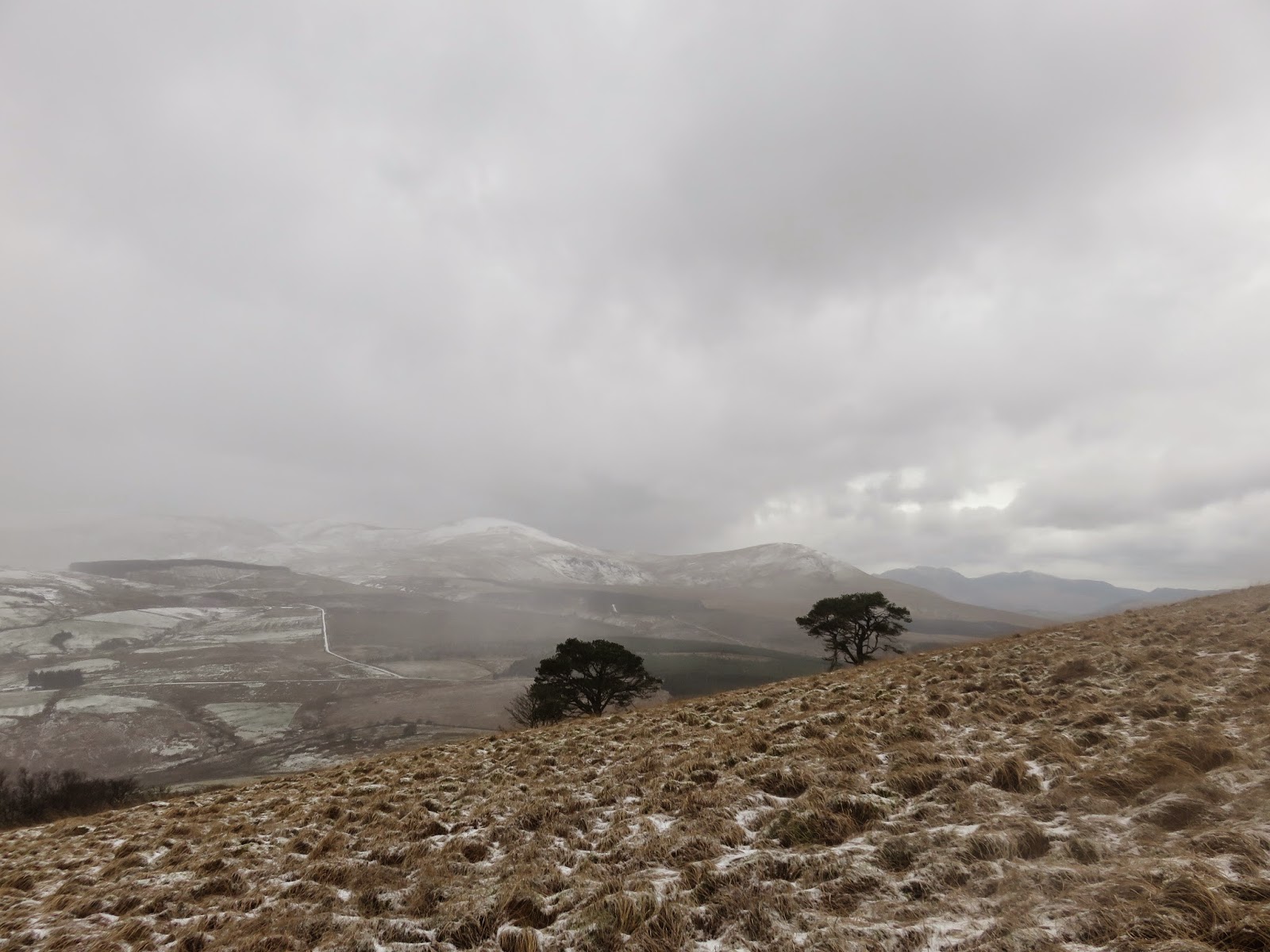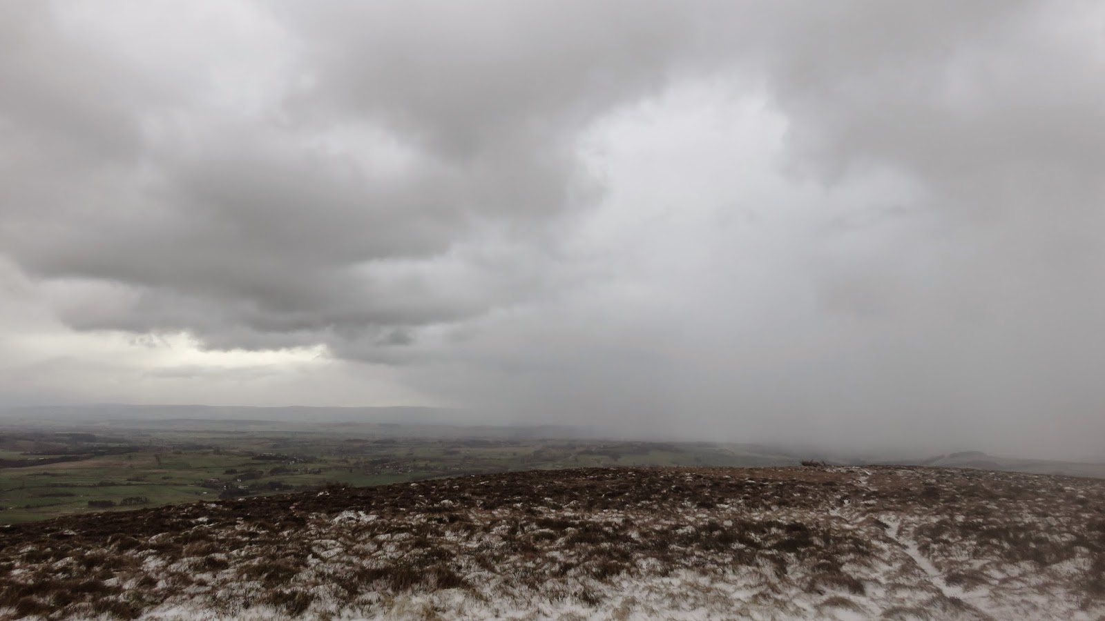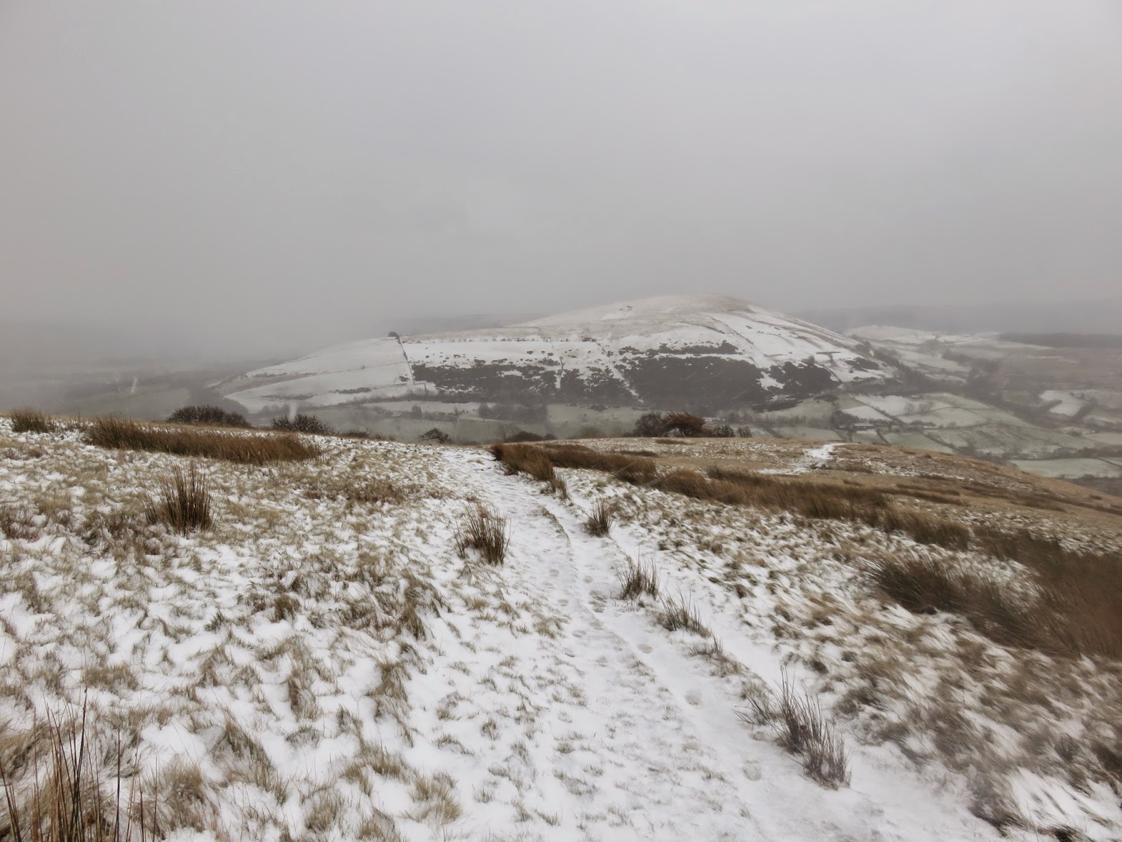 After a short, steep section the gradient abates and the path wends its way up the hillside, into the stiff wind. A series of snow showers lashed me with some horizontal graupel on my way up but, luckily, the weather was starting to clear a bit when I reached the top.
