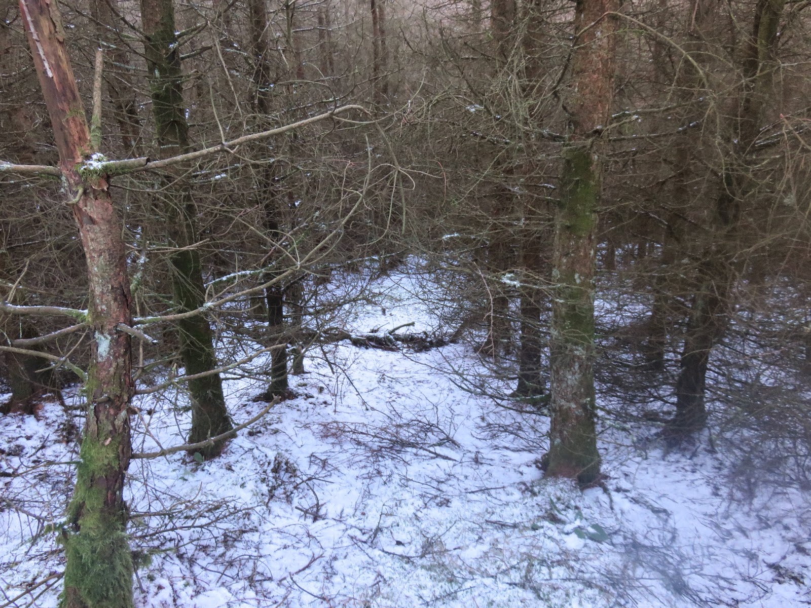 After crossing the top of Watermillock Fell, I pursued a long period of off-path walking to cover the remaining named tops. Second, in the direction I was travelling, is Little Meldrum which hides in the woods of Swinburn’s Park. It was pretty watching me bundling my way through the tightly planted conifers and, through more luck than judgement, I found the clearing where Little Meldrum stands.
