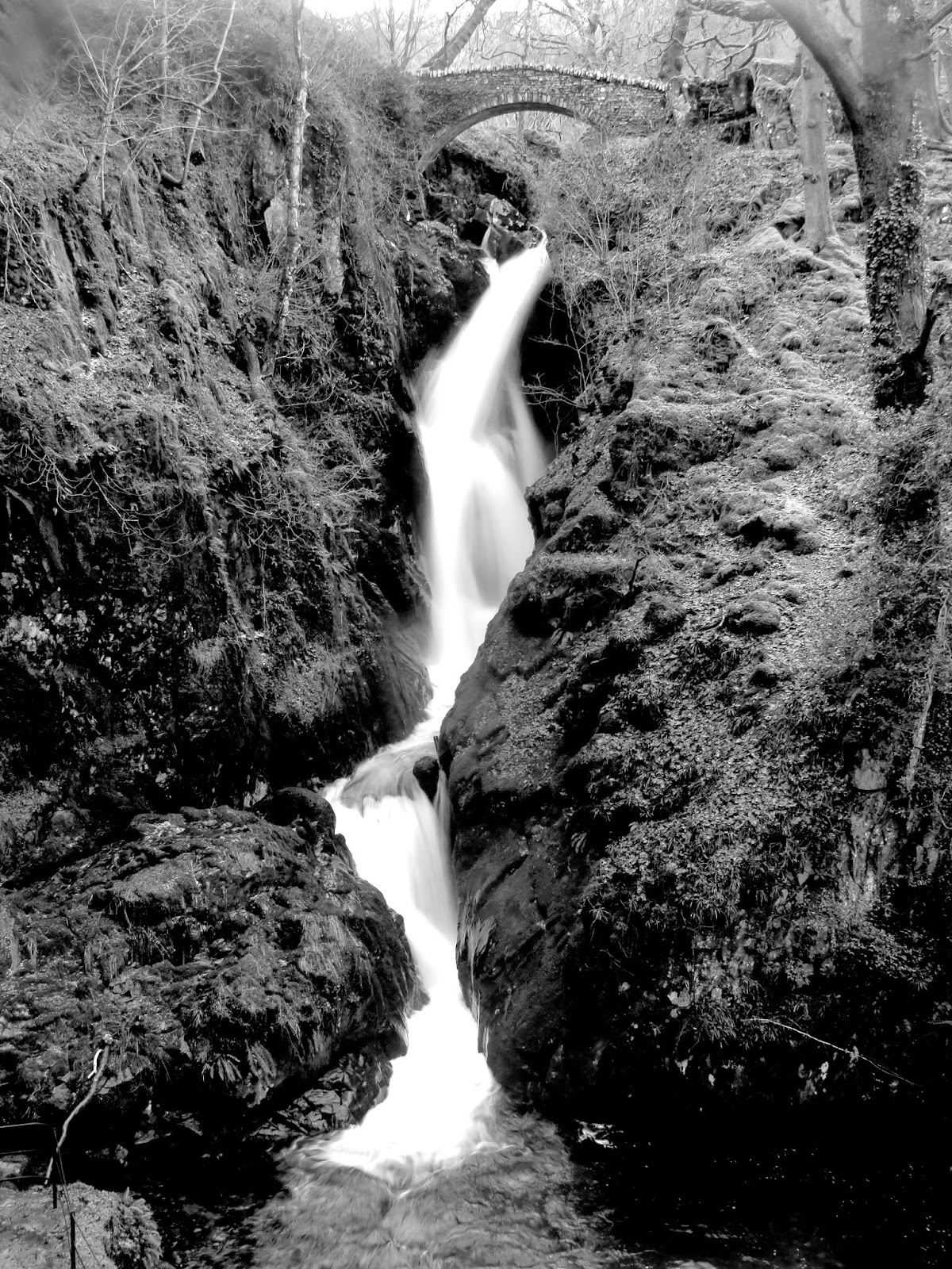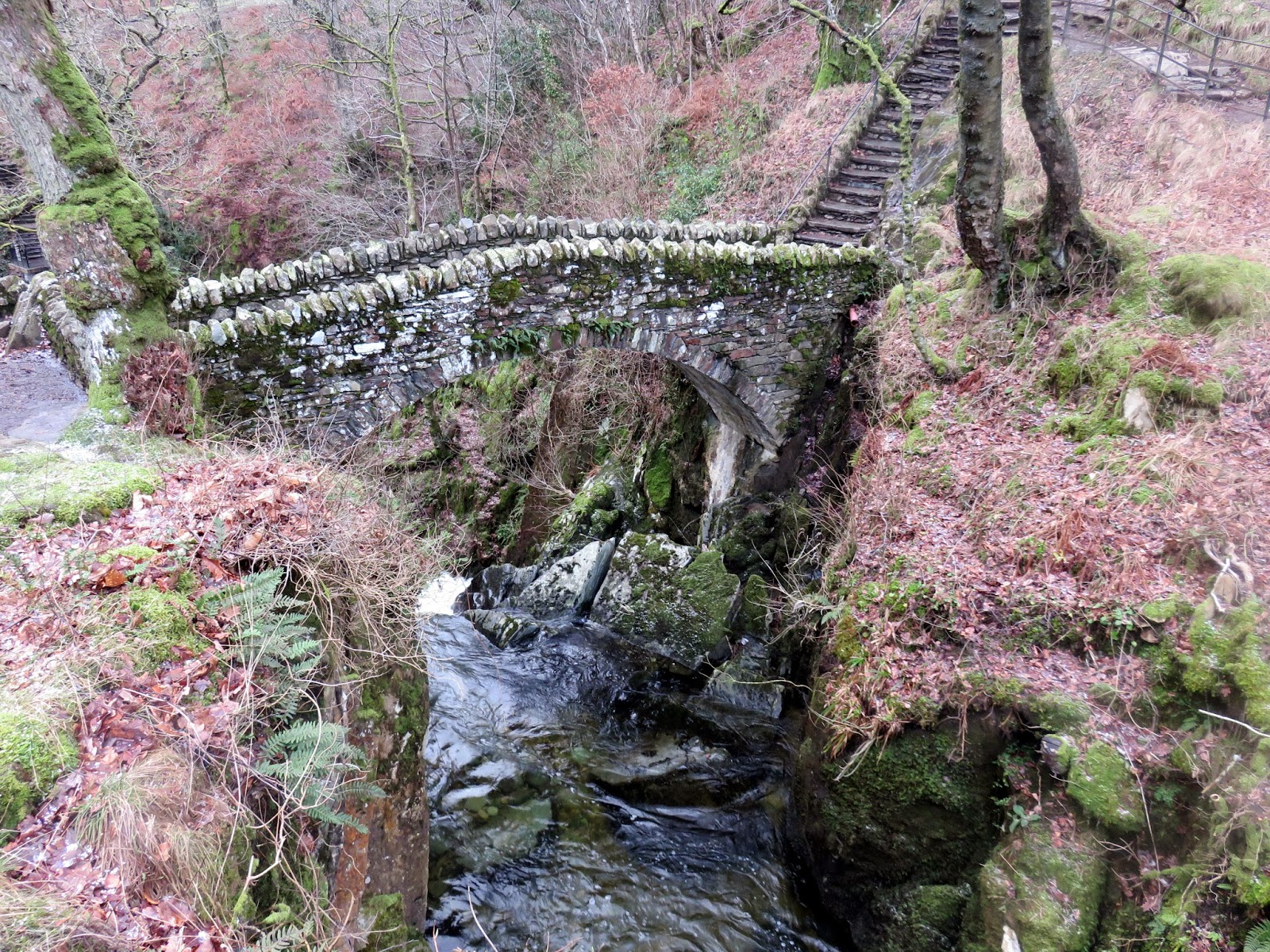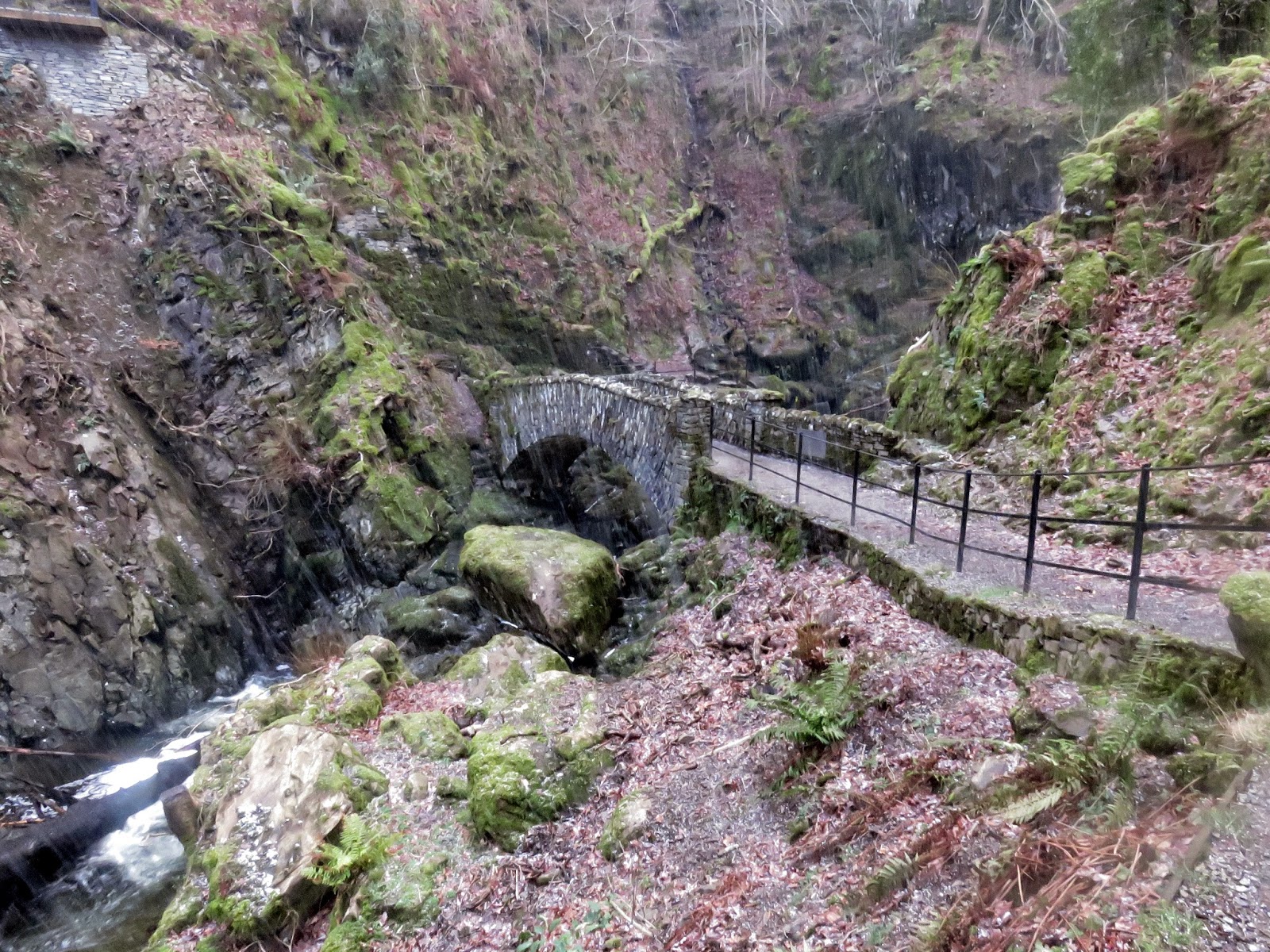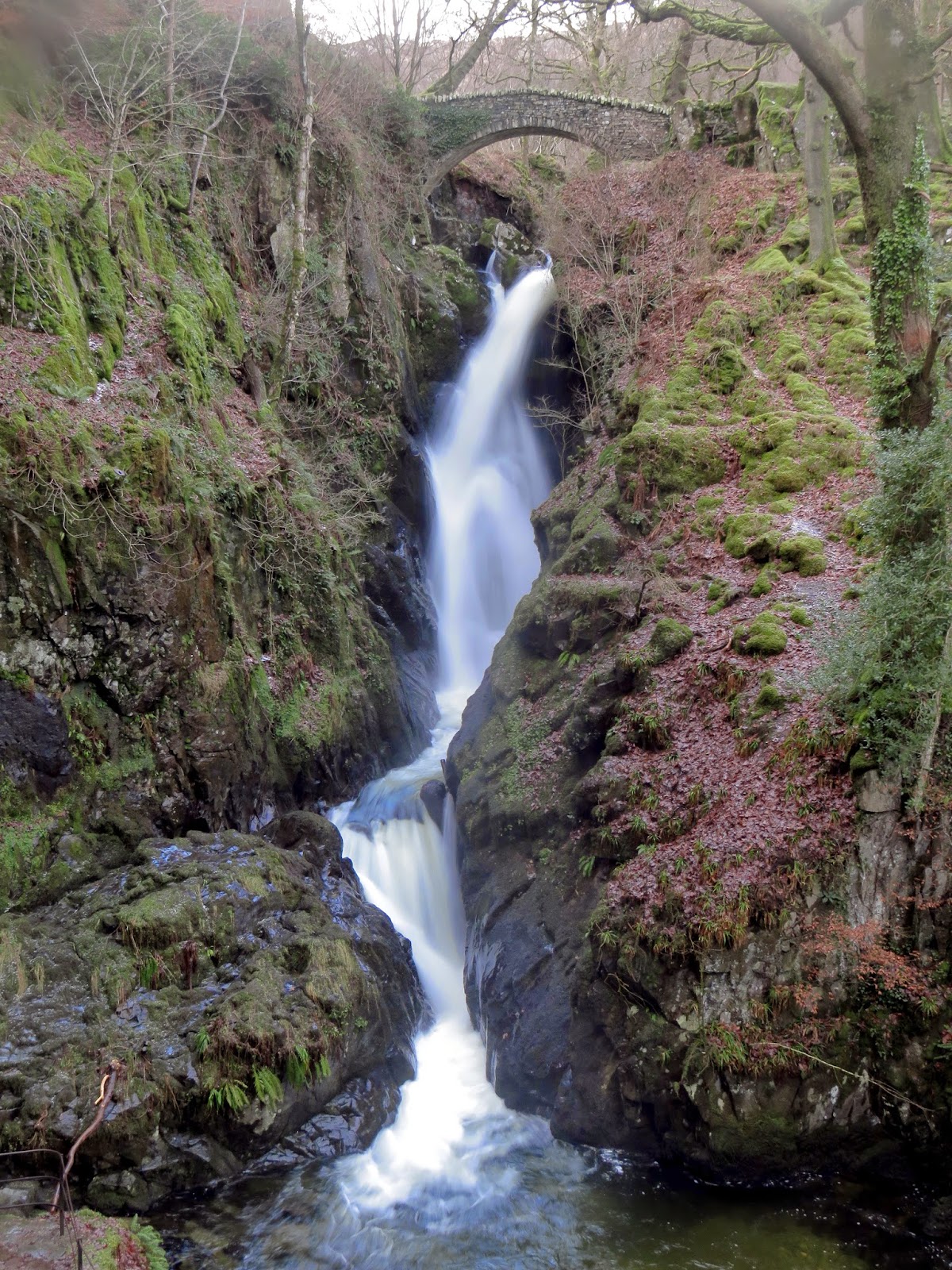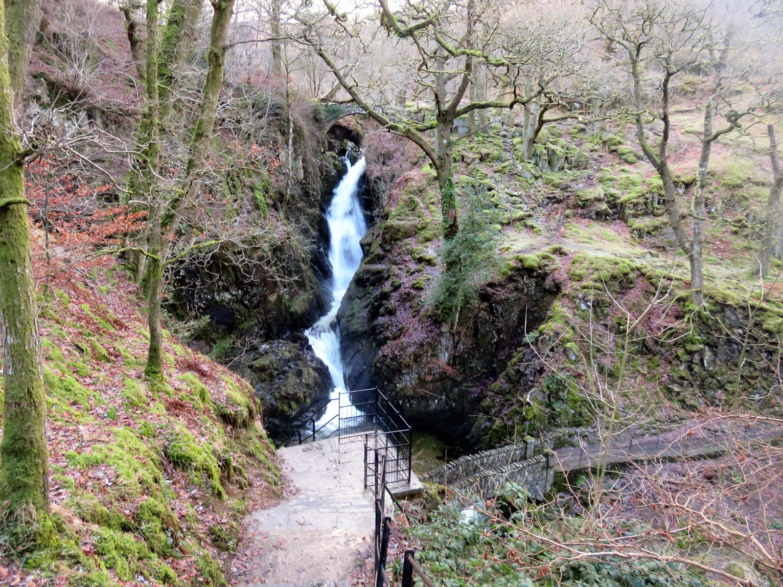 The waterfall tumbles down a 20m ravine, which is impressive enough, however it are the viewing platforms and bridges that make it a real spectacle. Approaching from the direction I did, the first view is from the bridge which crosses the top of the falls, offering a perilous view straight down them. There is a further bridge at the foot of the falls but the highlight is the newly built viewing platform approximately half way up the hillside. It is here you can see the full splendour of the cascade. Being a weekday in winter I was lucky enough to have the whole thing to myself.