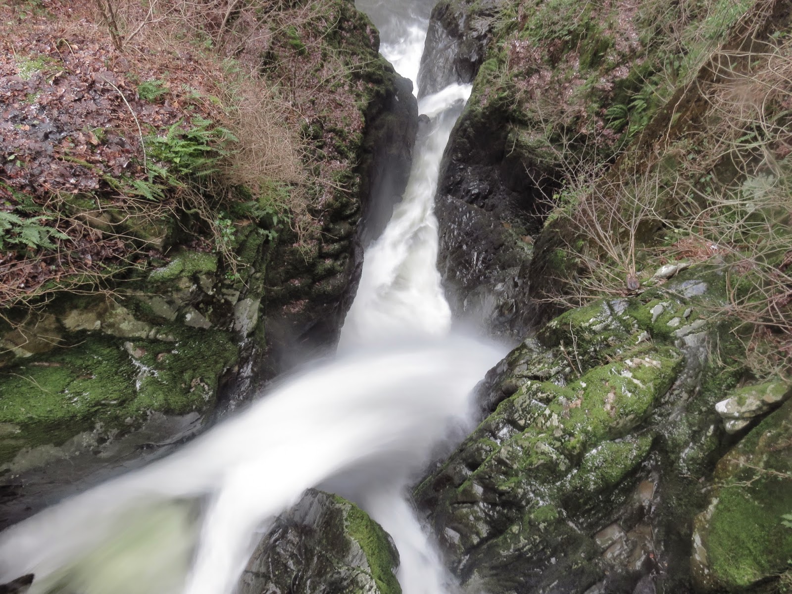 | The view straight down the falls from the bridge |