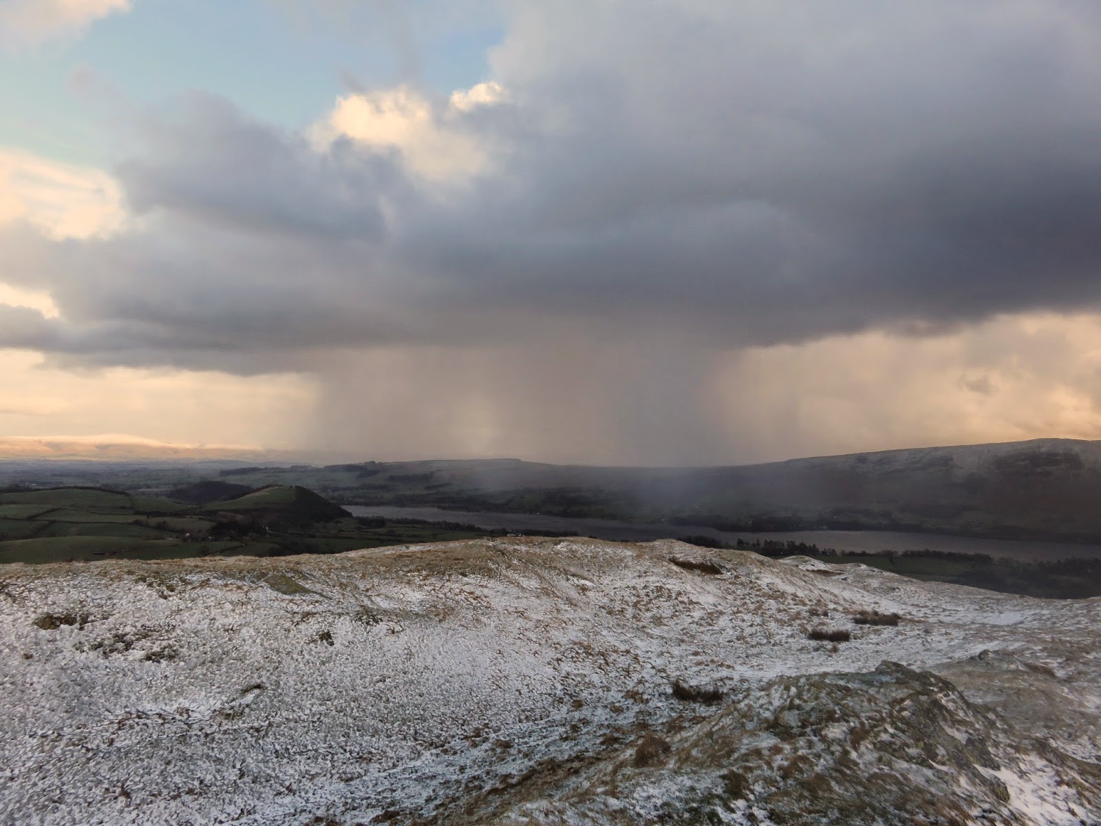 | A snow shower over Watermillock Common |