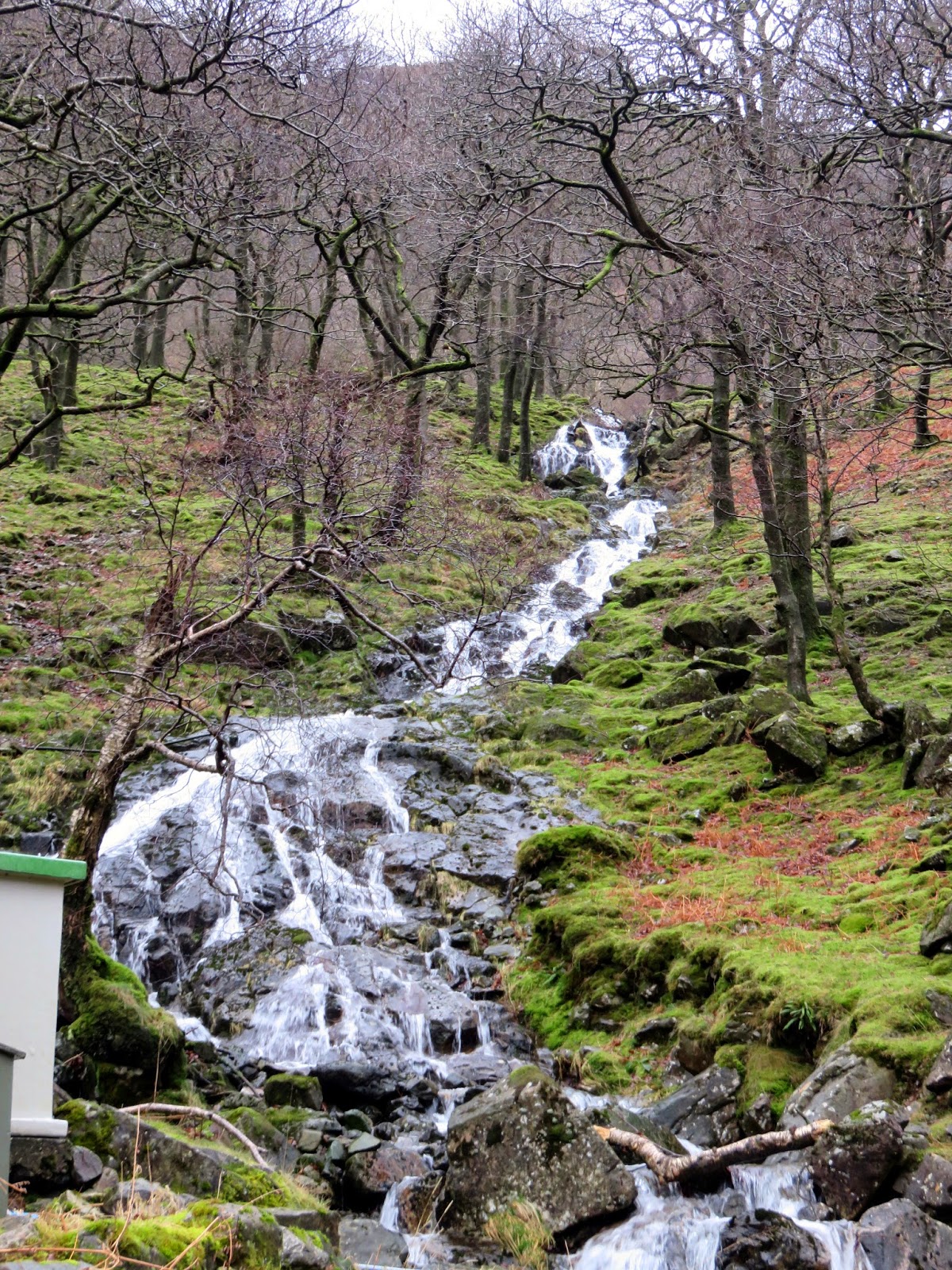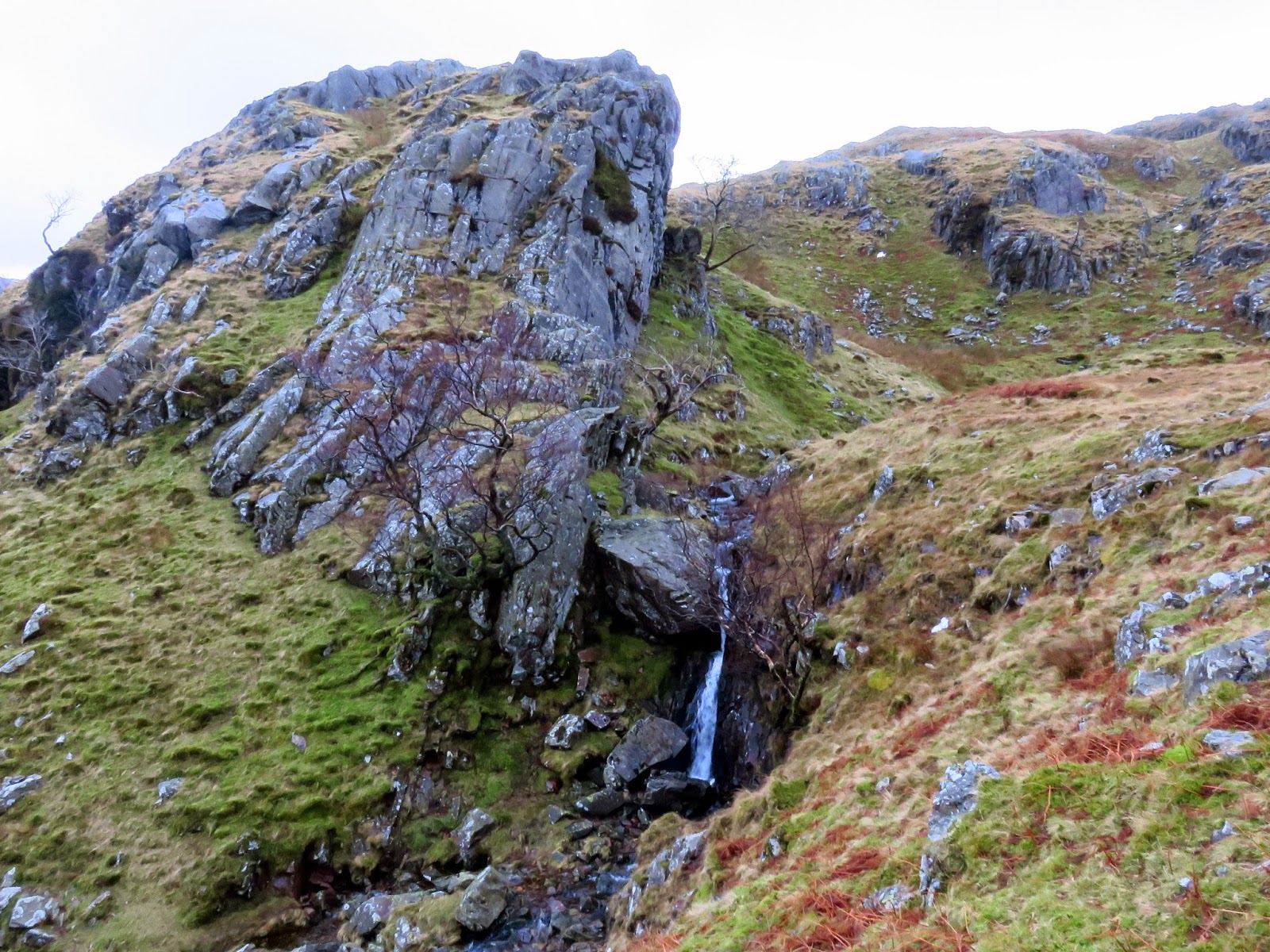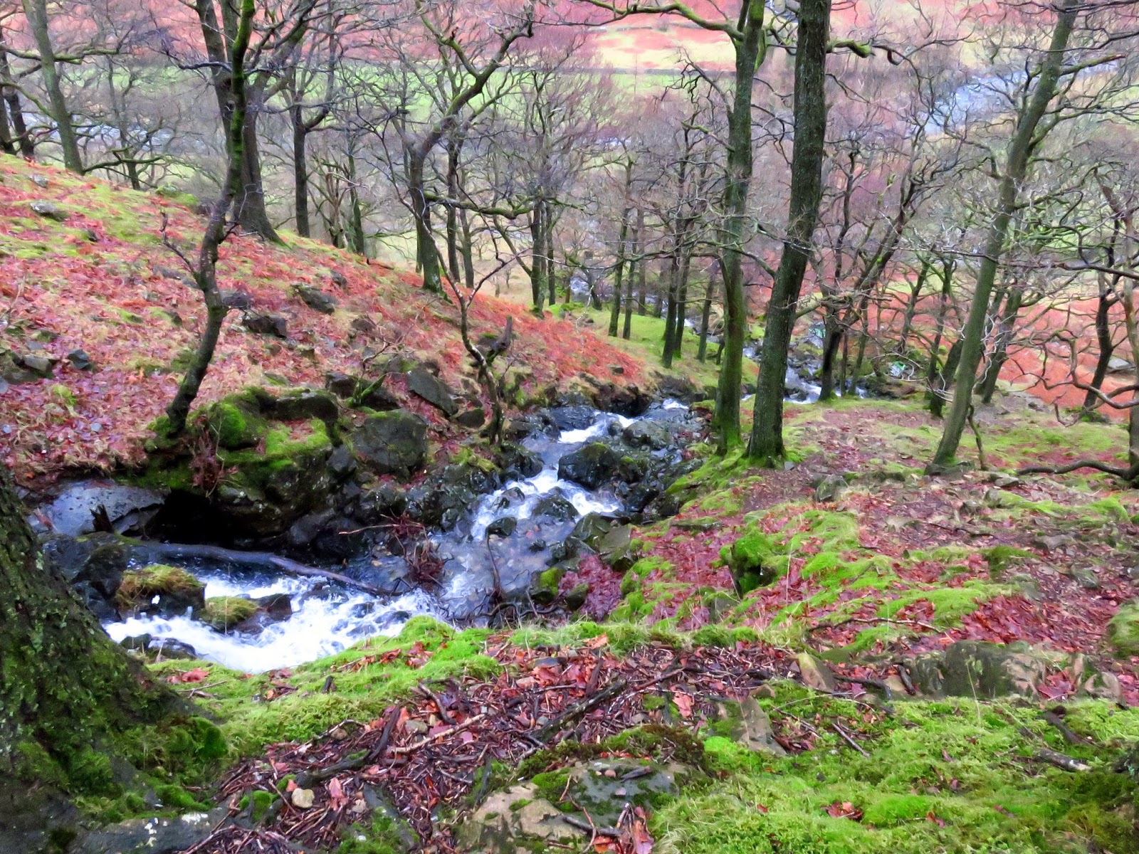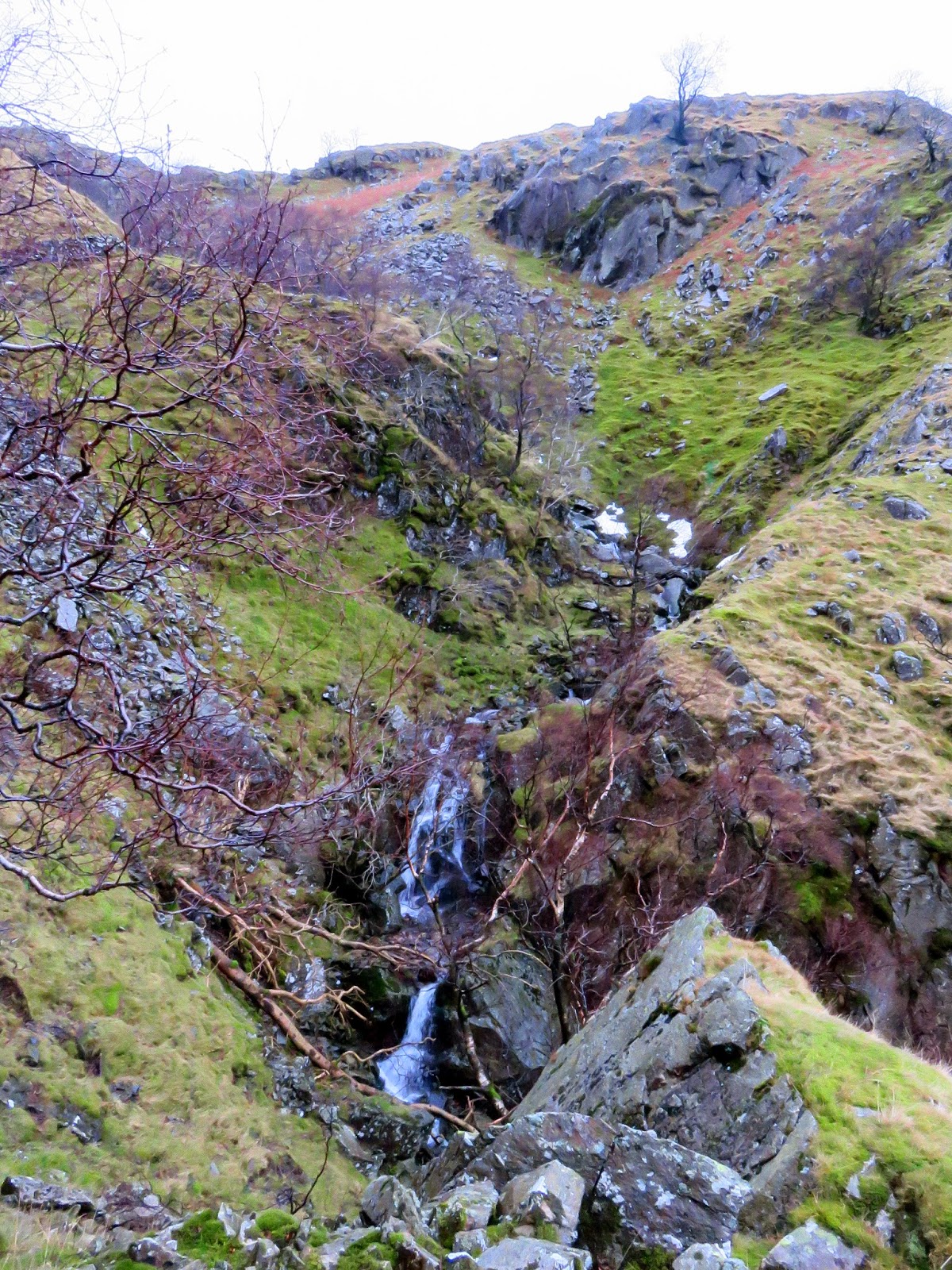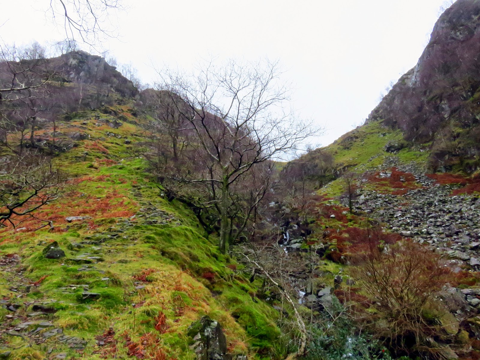 | Wool Gill falls steeply into Langstrath |