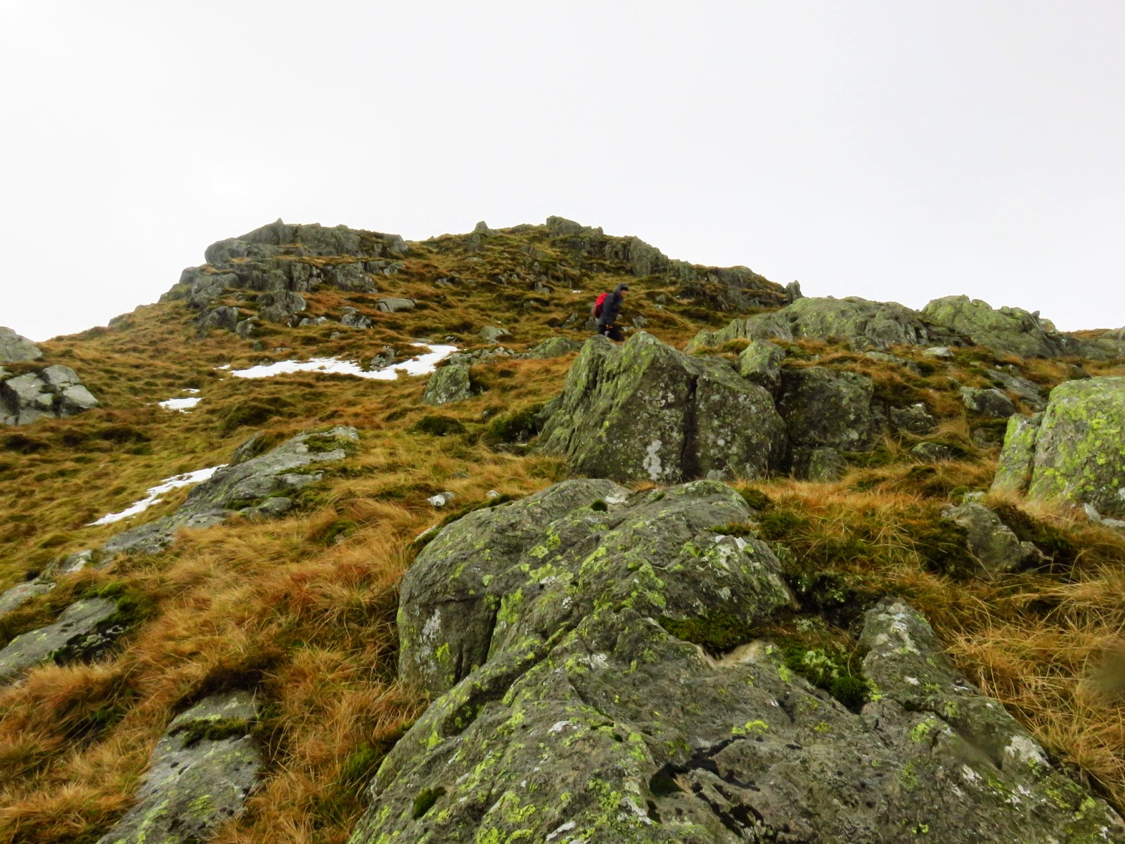| Climbing through the obstacles towards Rosthwaite Cam |