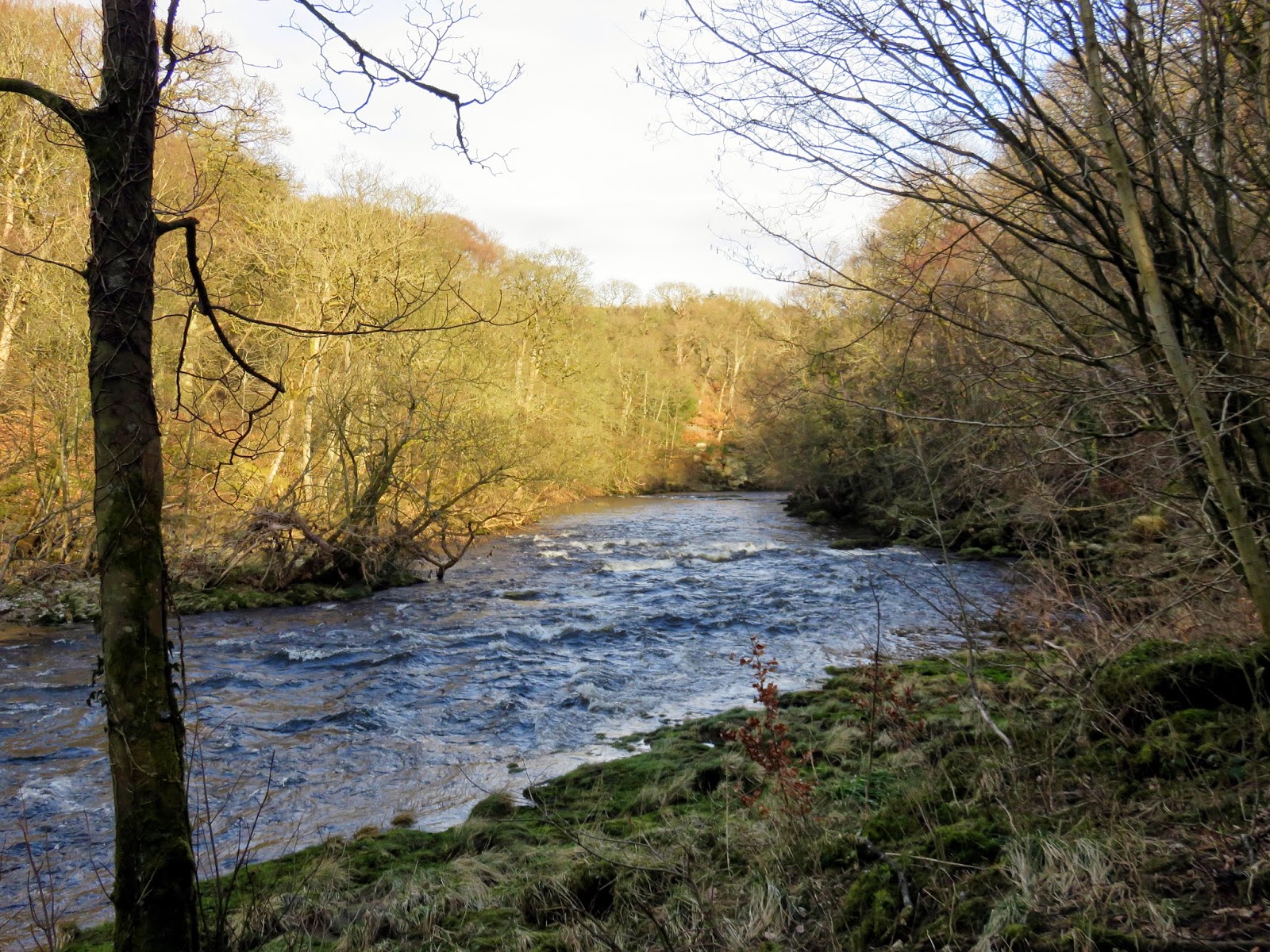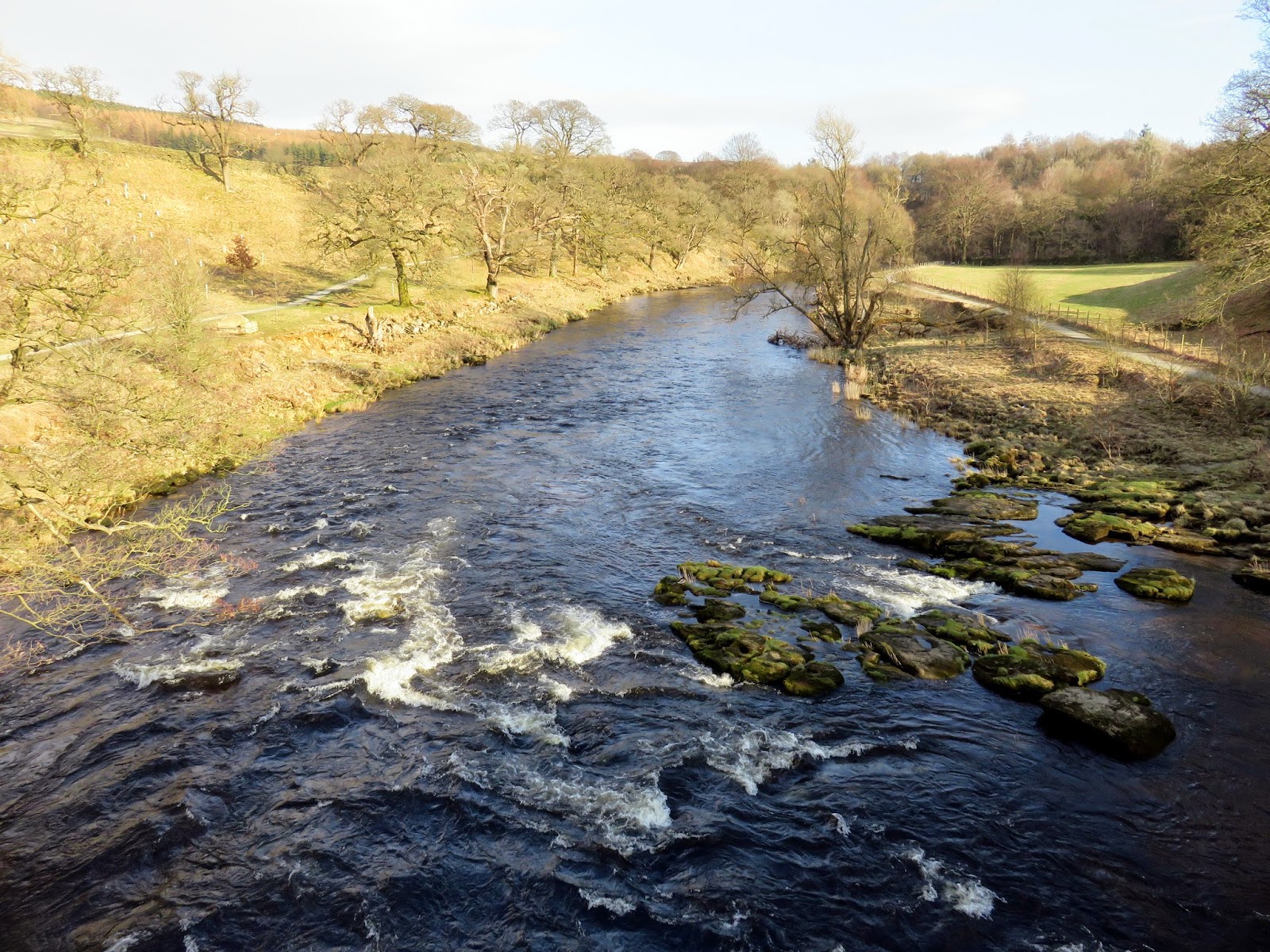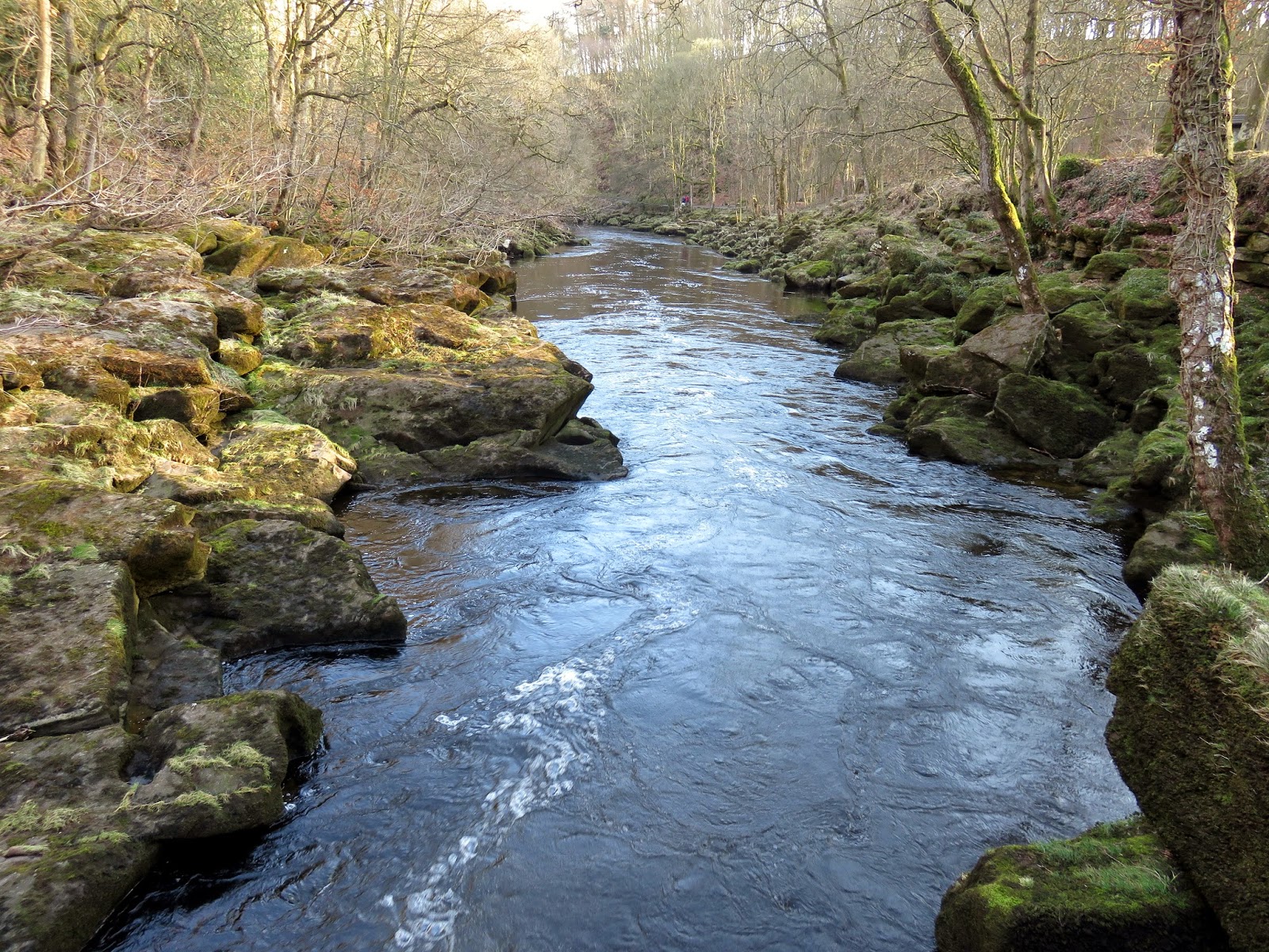 | The Wharfe from the bridge prior to entering The Strid – note its width |
