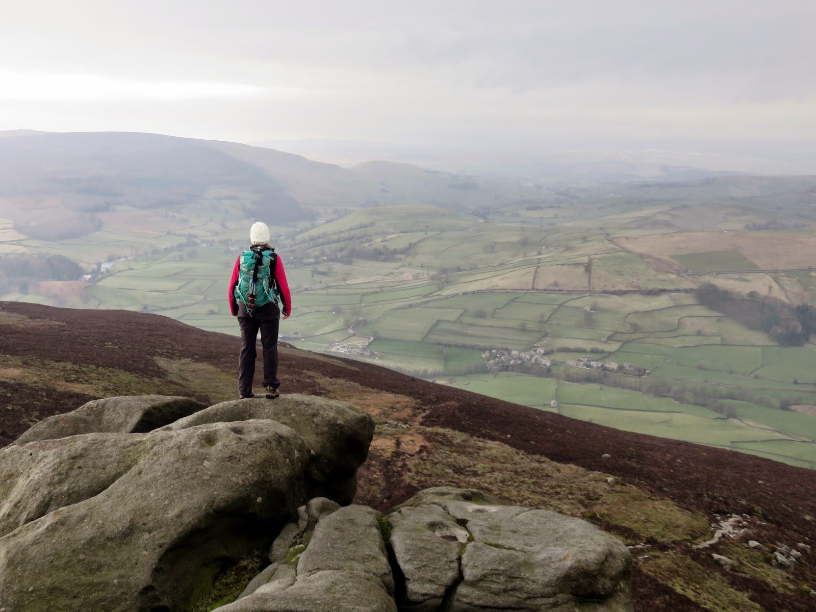 | Sara surveys Wharfedale below |