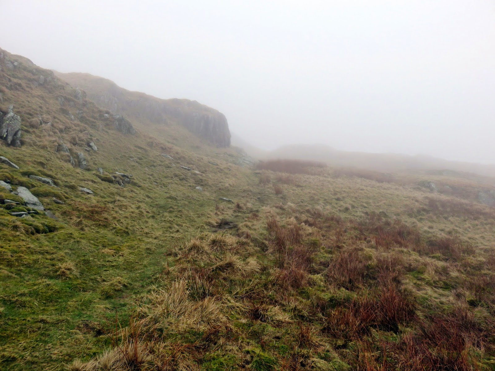 | Looking down into the mist from Easy Gully |