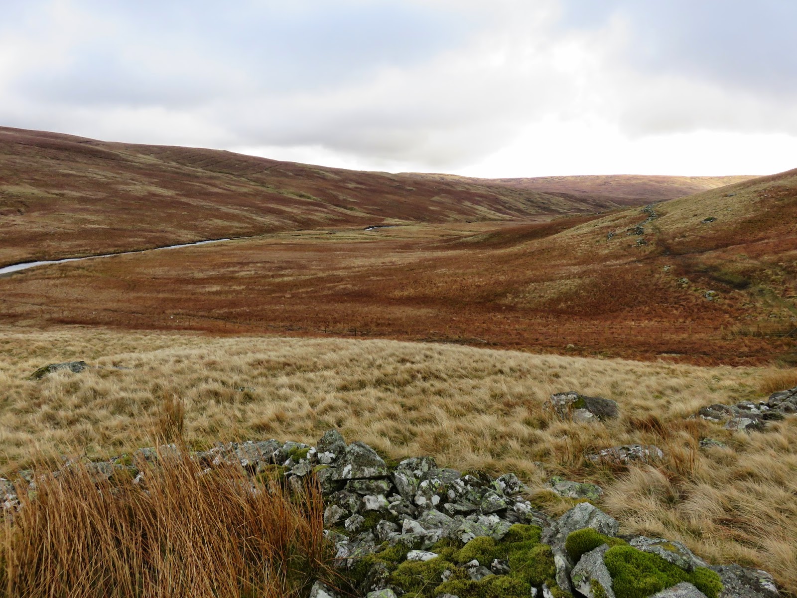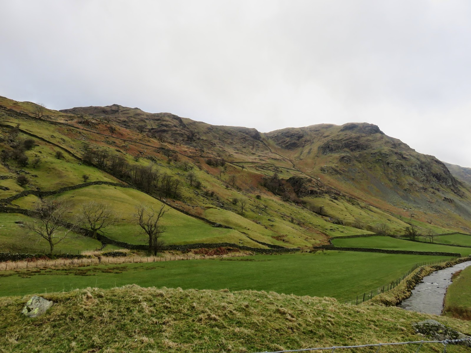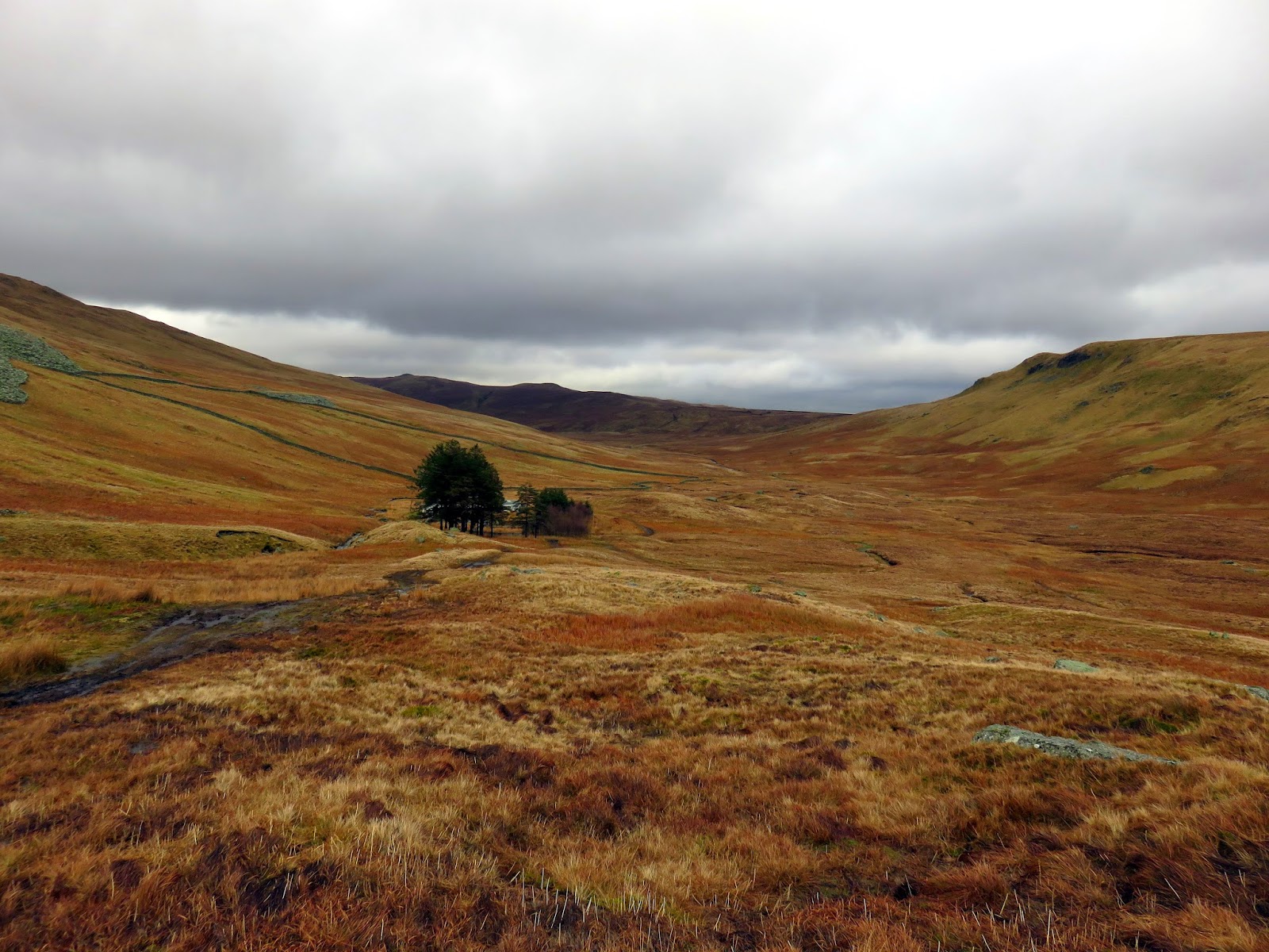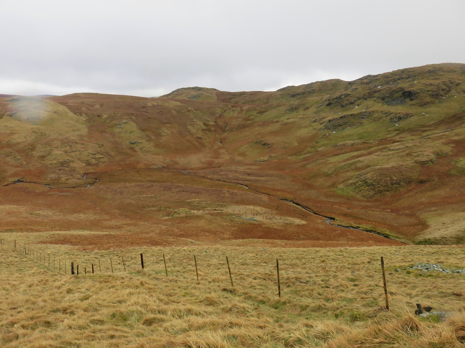 There are a couple of options for our return leg back to Longsleddale; a descent to Haweswater and a climb over the Gatesgarth Pass or a long walk up the lonely valley of Mosedale. We chose the latter, put off by a steep climb at the end of the day and proceeded off Selside by following the line of fence posts that would lead us to Mosedale.