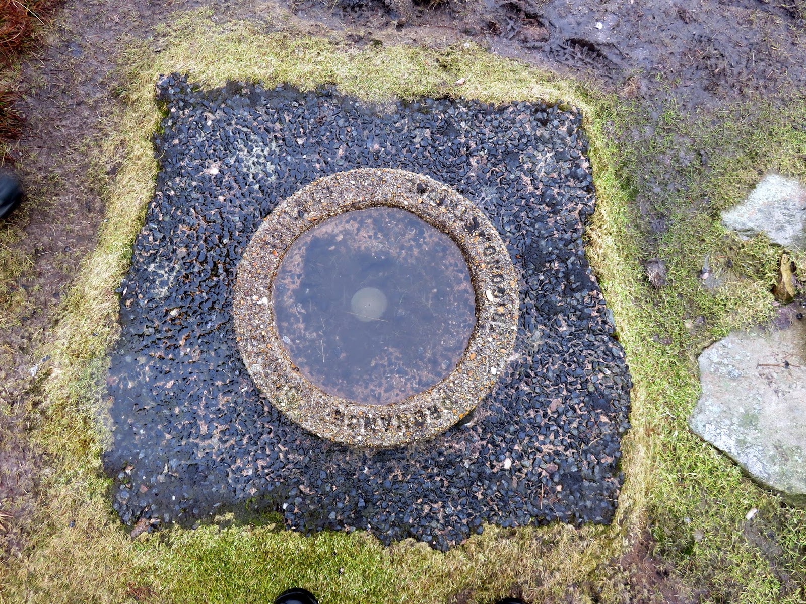 | A close up of the survey column – a wooden frame surrounded the cleft which has now since rotted away |