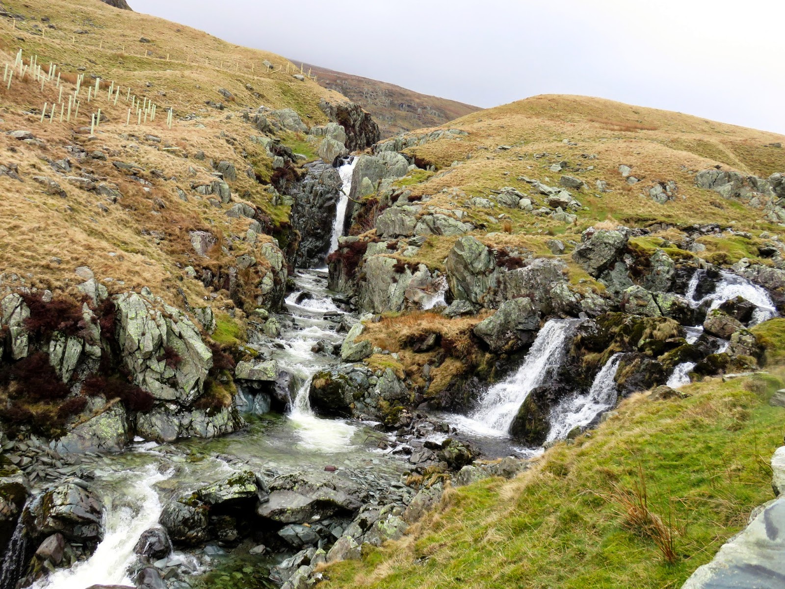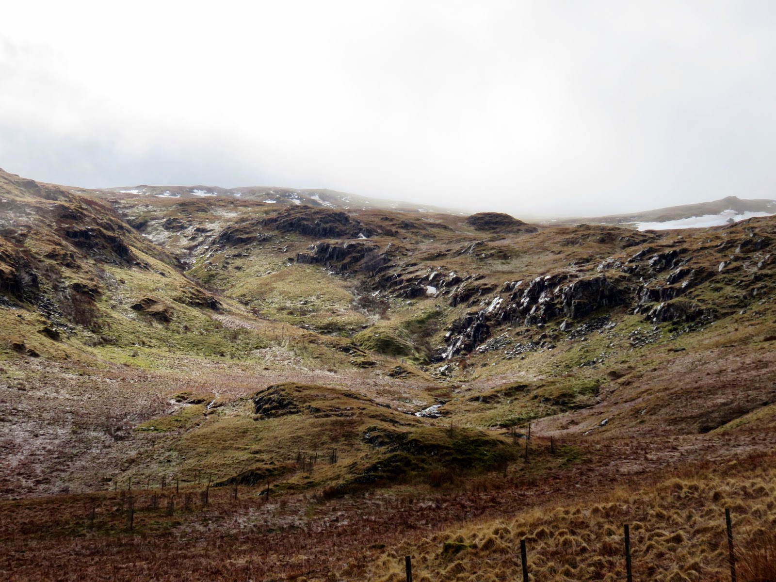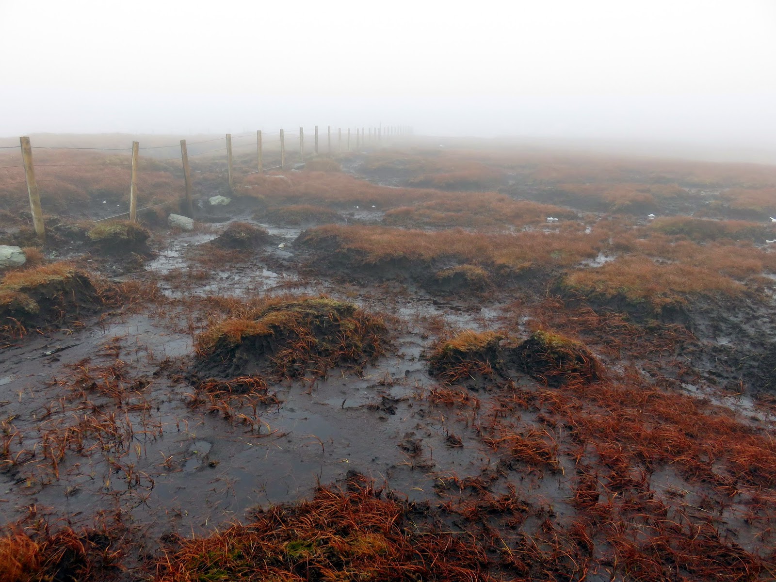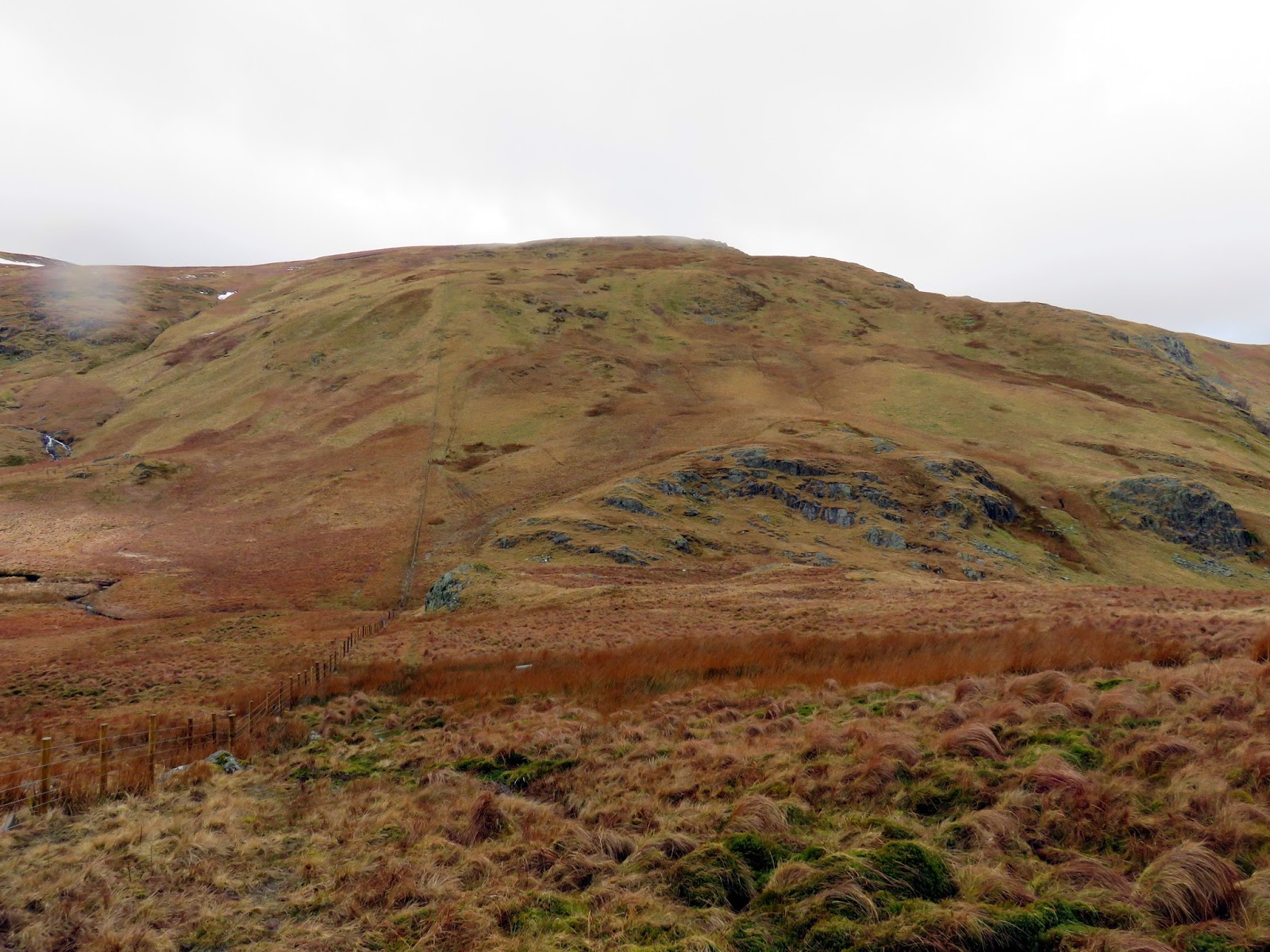 We paused for a moment before continuing on toward the oddly named Greycrag Tarn. Why odd? There’s no tarn actually marked on the map, though there may as well have been. Following the safety of the fence down into the depression, we encountered the most horrendous bog. One of the worst I’ve come across in the Lakes. It was seriously wet and we were lucky to get past it without a significant detour. In fact, we sought salvation by climbing over the fence to the other side which was noticeably drier (relatively speaking!). It transpires that Greycrag Tarn was indeed a tarn which has since dried up. I the weather keeps this it, it may well make a return.