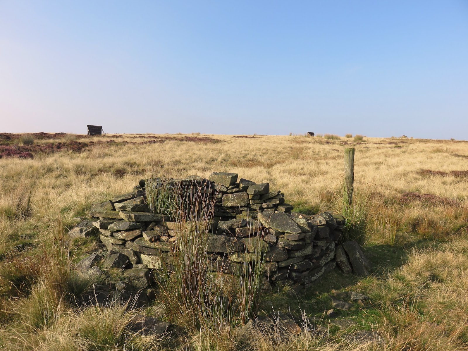 Satisfied we had indeed found the top, we returned to Bleaklow Head via the massive cairn to continue along the Pennine Way which descends into the depths of Wildboar Grain, a stream that drains Bleaklow’s north western slopes and feeds Torside Reservoir. After crossing said stream, we left the Pennine Way, heading cross-country towards Torside Castle while utilising a path obviously used by the local huntsmen. Glossop Low (the hill we were aiming for) must be a popular location for grouse shooting given the number of butts that are lined up on the hillside, including one called ‘The Pulpit’ a veritable fortress of stone overlooking Wildboar Grain. The odds are most definitely stacked up against Mr. grouse.