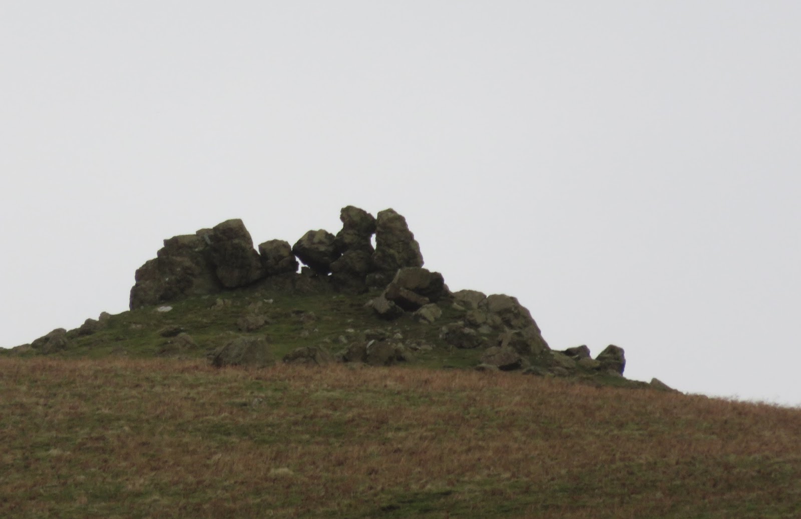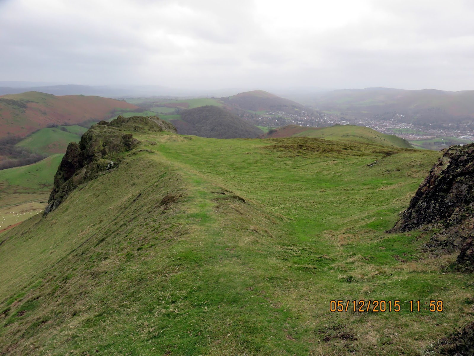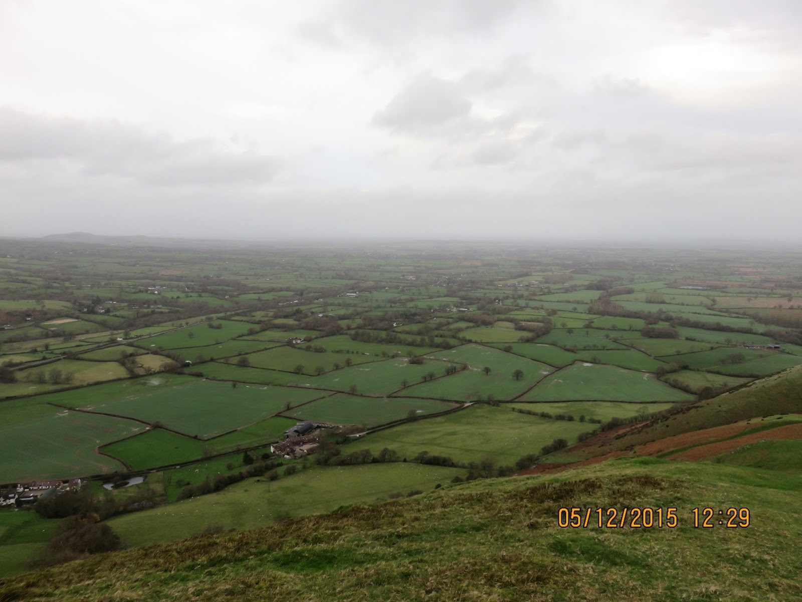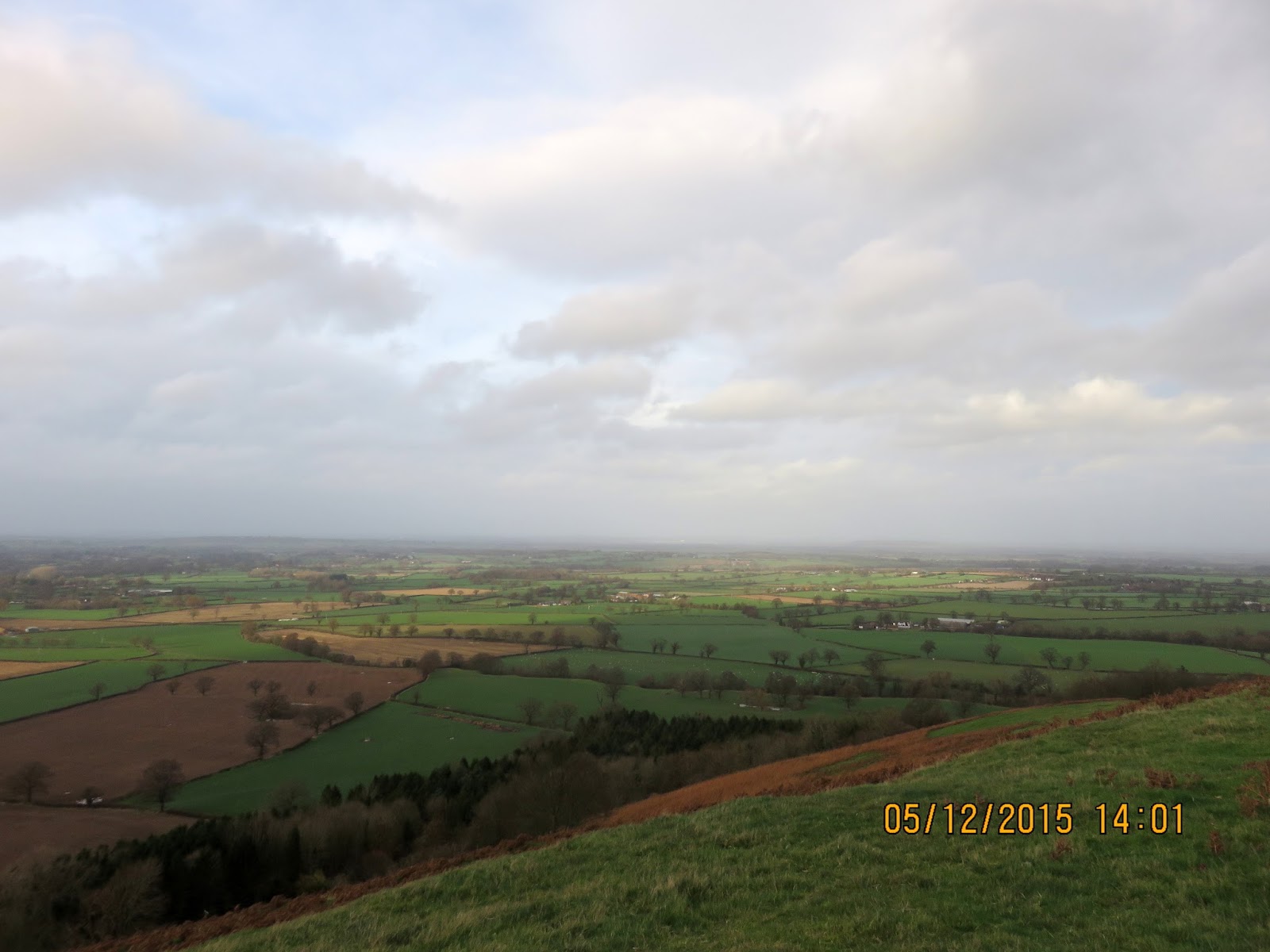The top of Caer Caradoc undulates along, past the mounds of ancient hill fort before rising once again to the flat top. The wind here was strong to say the least though and didn;t give us much of a chance to stop and have a look around. I can say, however, that the views from all of Caer Caradoc are superb in all directions; not one aspect looks the same and all are interesting. The Wrekin was even visible some 20 miles distant, despite the gloomy day.
