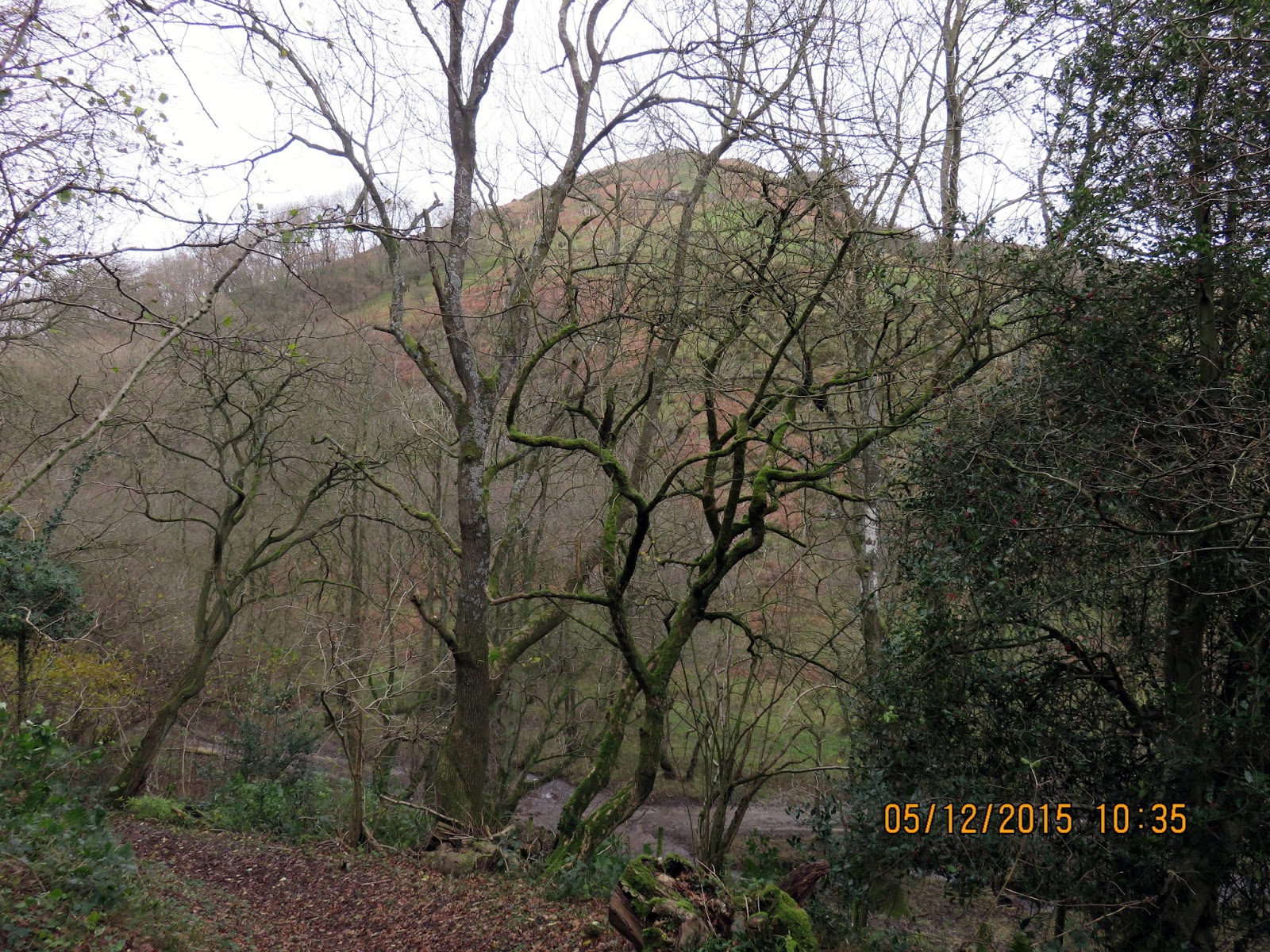 A path wends its way up through the ancient woodland in a rather circuitous fashion until it reaches the top of the hill which bears no distinguishing features other than a clump of trees that are higher than the rest. Still, at over 200m it’s not an insignificant height and worth a trip up. We retraced our steps back to the stream that separates the two hills and began a slow ascent of Caer Caradoc.