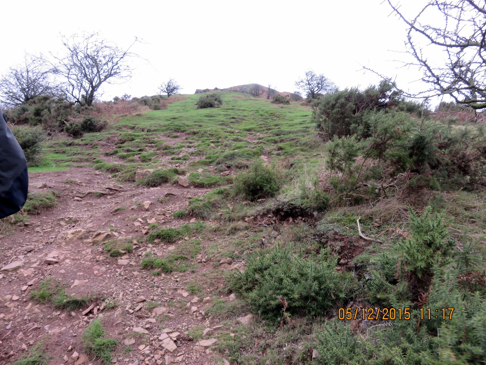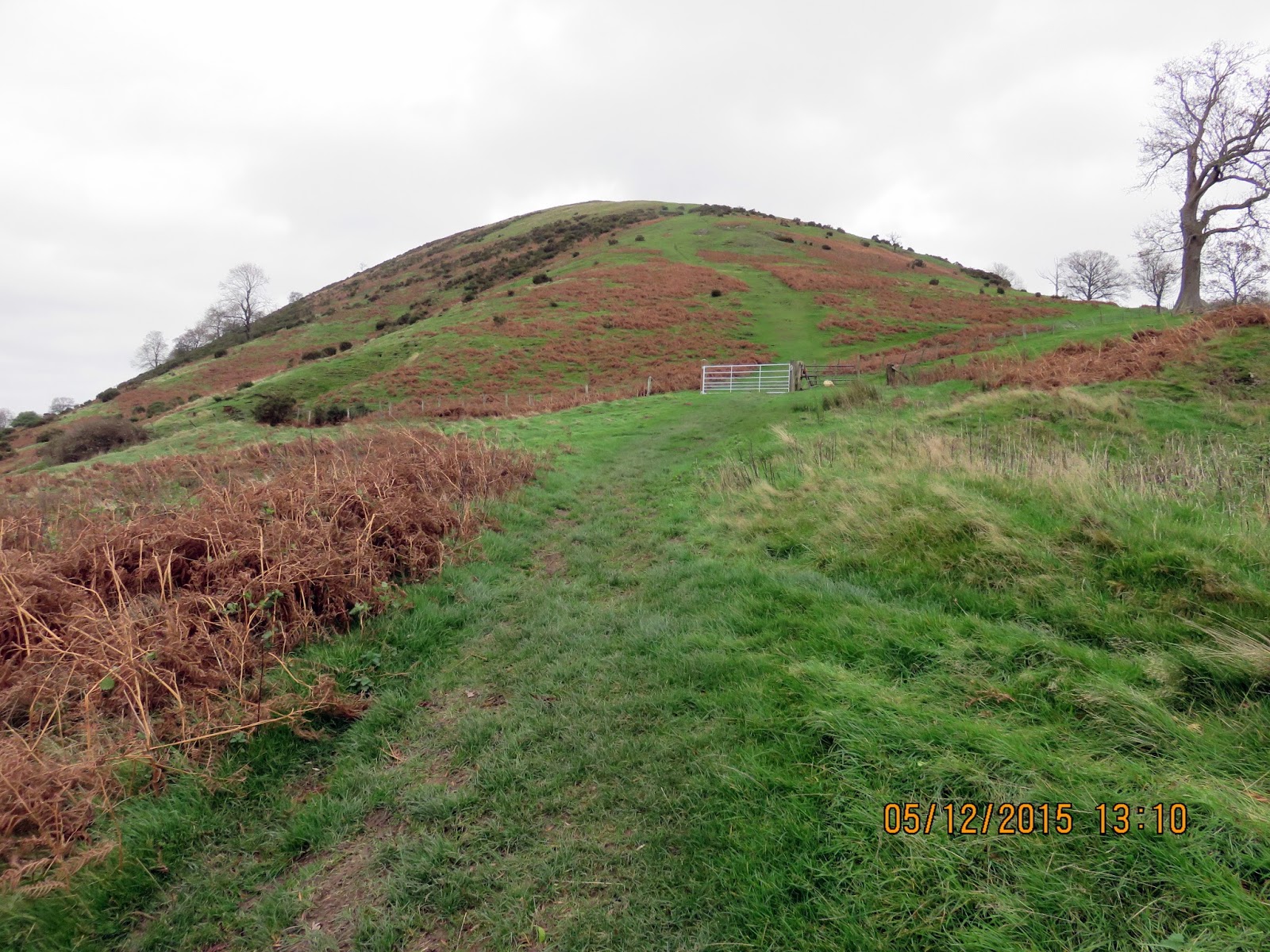 Caer Caradoc and The Lawley form an obvious one way route from Church Stretton, finishing at the foot of The Lawley in the hamlet of Lawley and after shuffling some cars around we were ready to set off. A path leaves Church Stretton through the fields behind the housing estate called Battle Field and climbs up along the lowers slopes of Helmeth Hill. Our intention, as a warm up to the looming Caer Caradoc, was to make the climb up Helmeth Hill first.