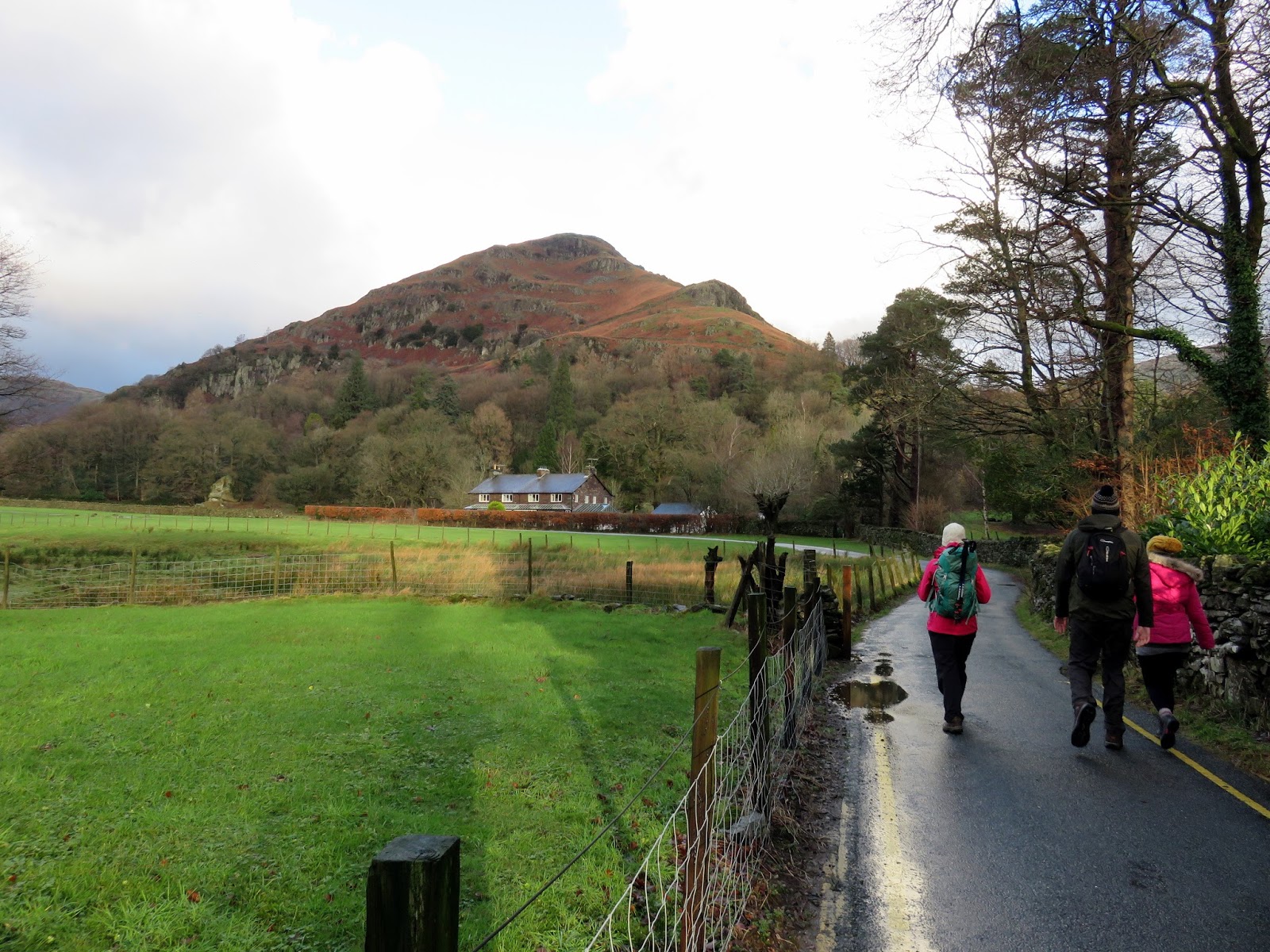 We crossed Far Easedale Gill using the footbridge at Stythwaite Steps, luckily it hadn’t been affected by the damaging floods earlier in the month. Though the path became wider, it didn’t become any drier and a number of large puddles, more akin to ponds, had to be negotiated before we eventually reached the road back towards Grasmere.