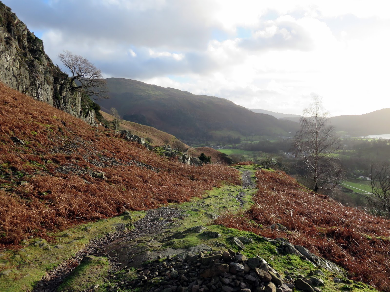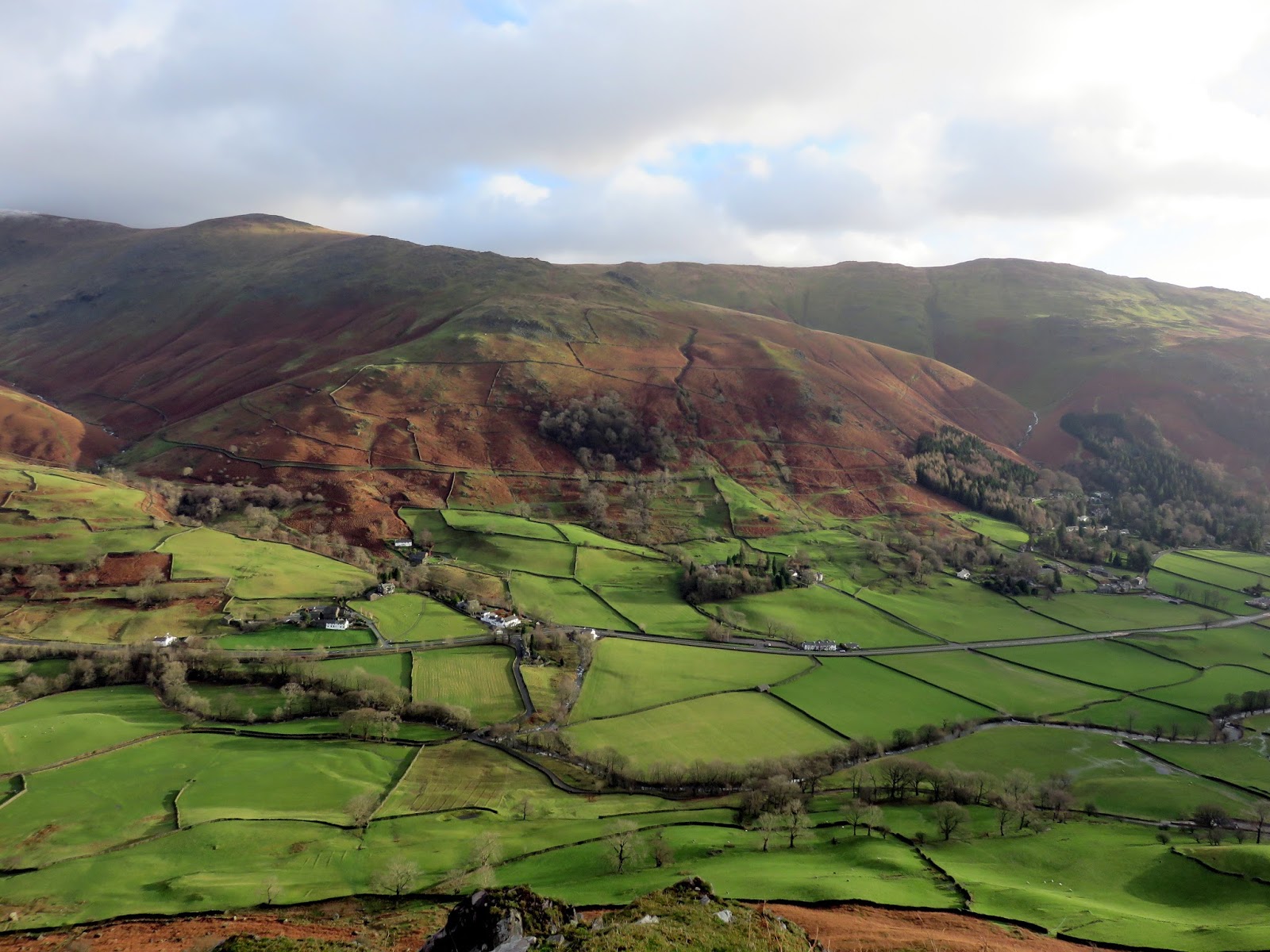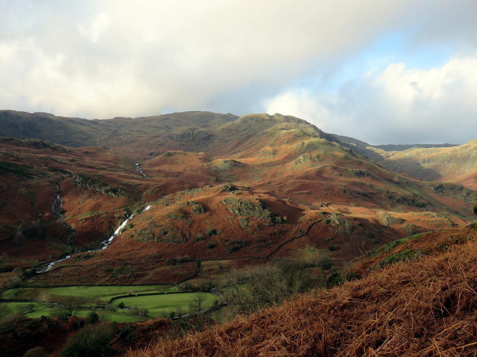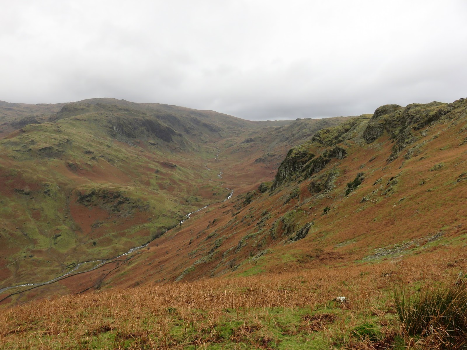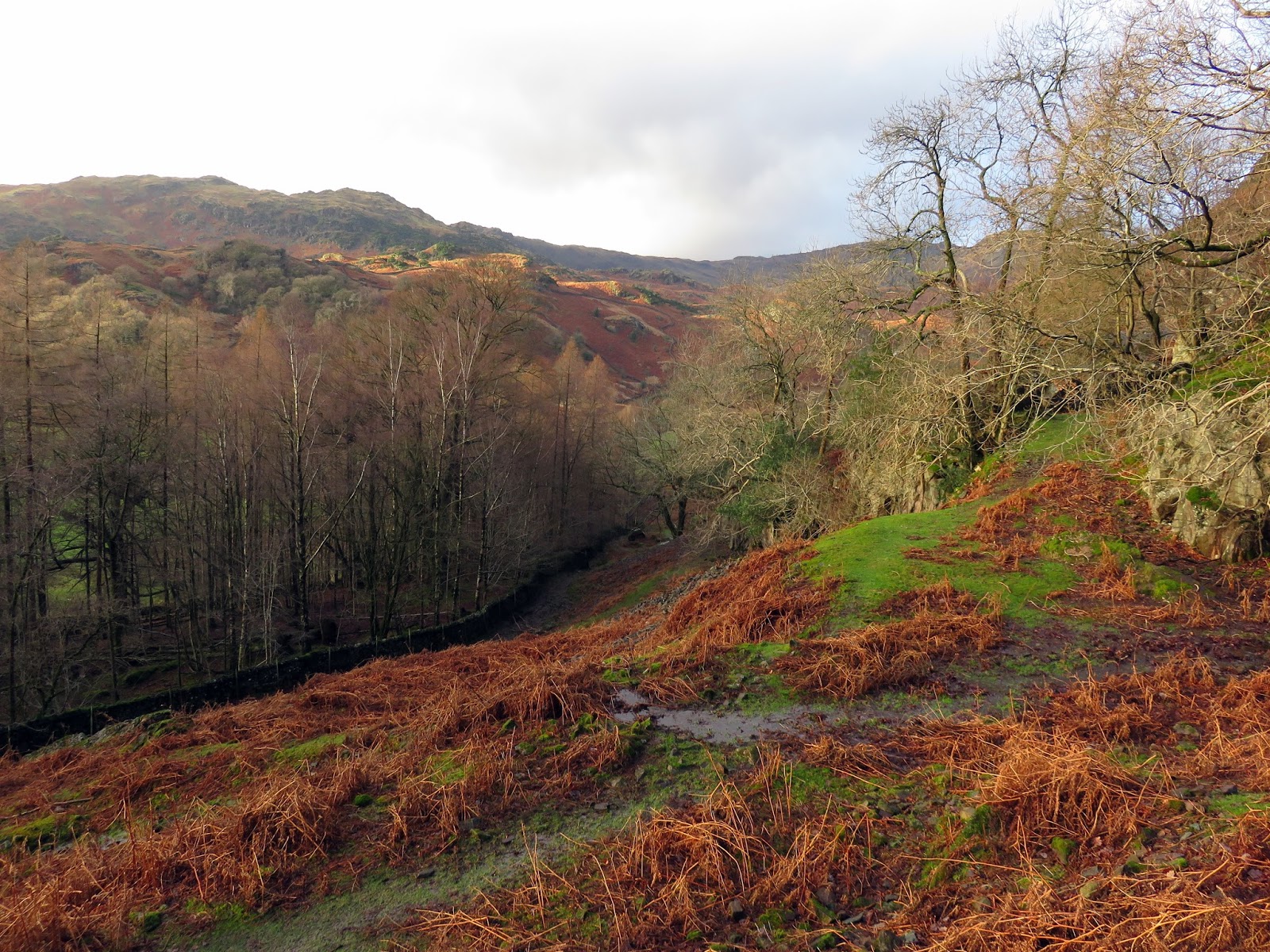 After parking in the deserted layby we made our way through the village and along the Far Easedale road, spying the raging Sour Milk Gill in the distance. There was a tremendous amount of water flowing down it, the result of the warmest and wettest December month on record. Since my last post the north of the country has been battered by storms bringing damaging floods to great swathes of Yorkshire, Lancashire and Cumbria; even as close to home as my office which, at the time of writing, is closed for business.