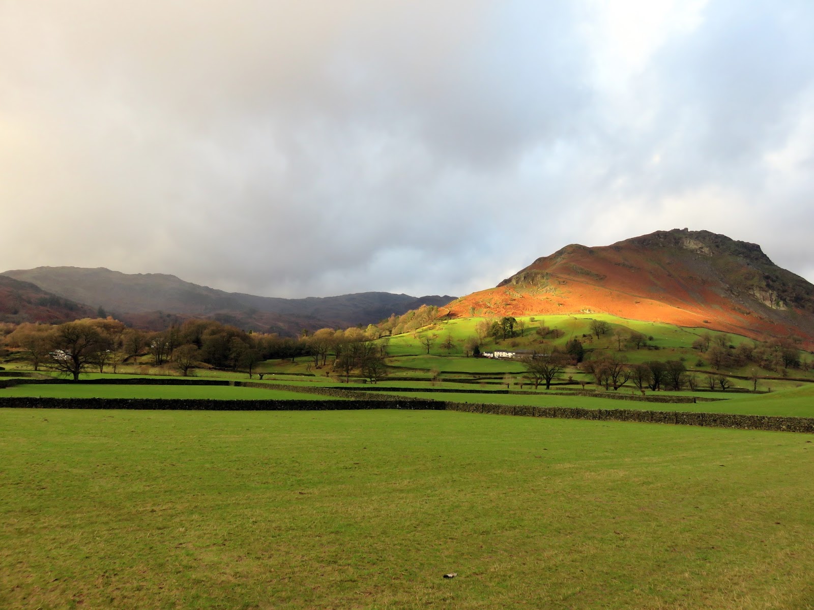 We plumped for the Lake District this time to tackle a walk that has beaten us in the past – the Greenburn Round. While not one of the more challenging walks, it is perhaps one of the most popular and the modest height of the fells makes it an attractive proposition for when the weather is none-too pleasant; hence why we’ve not managed to complete it previously. The forecast was positive, especially compared to last few weeks, with sunshine and showers forecast for the day. The sun was even shining as we arrived in Grasmere.