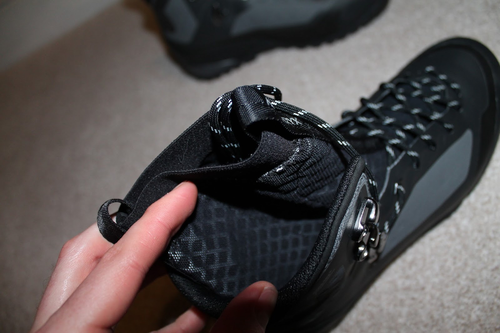 They include a number of additional features that you’d expect to find on a pair of hiking boots including locking lace hooks with added reinforcements for longevity. Something you don’t find on many boots are added pull loops on the top of the liner. These help getting the boot on – a task that would be near impossible without them. They have to be pulled on like a pair of socks rather than the time old tradition of pushing your foot in. The liner also make it a bit of a challenge to insert after market insoles, but it can be done!