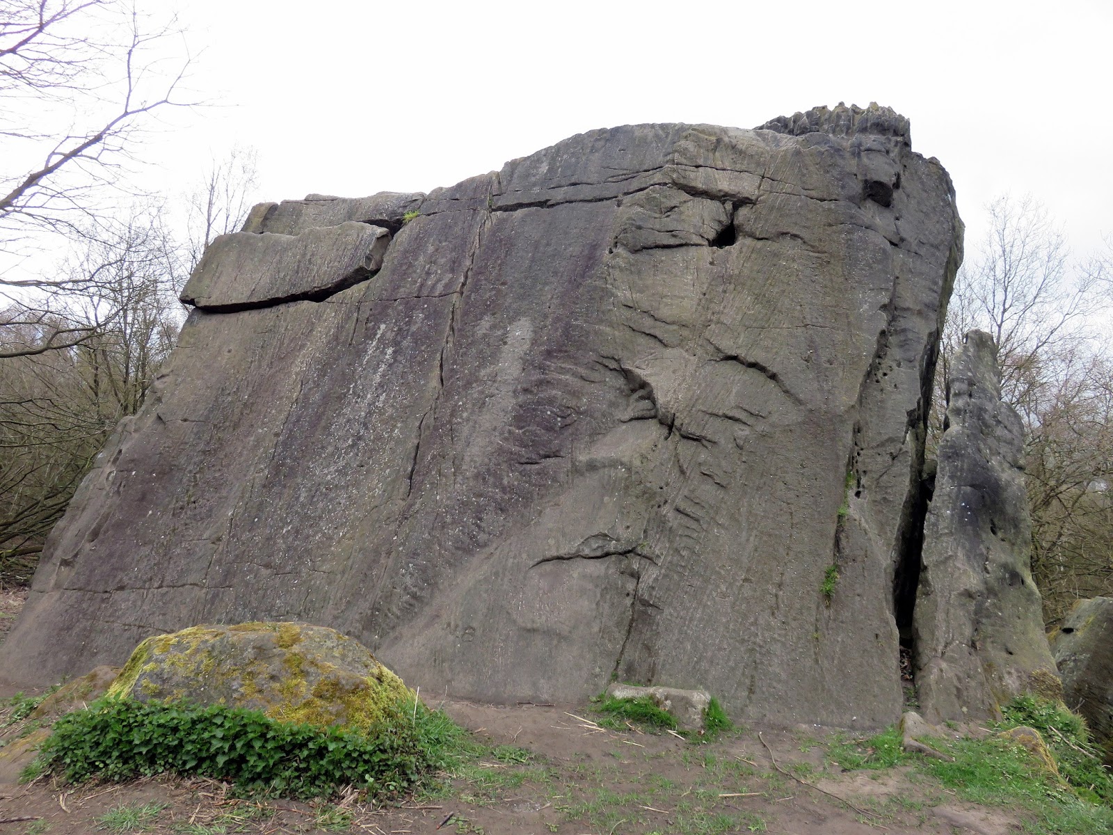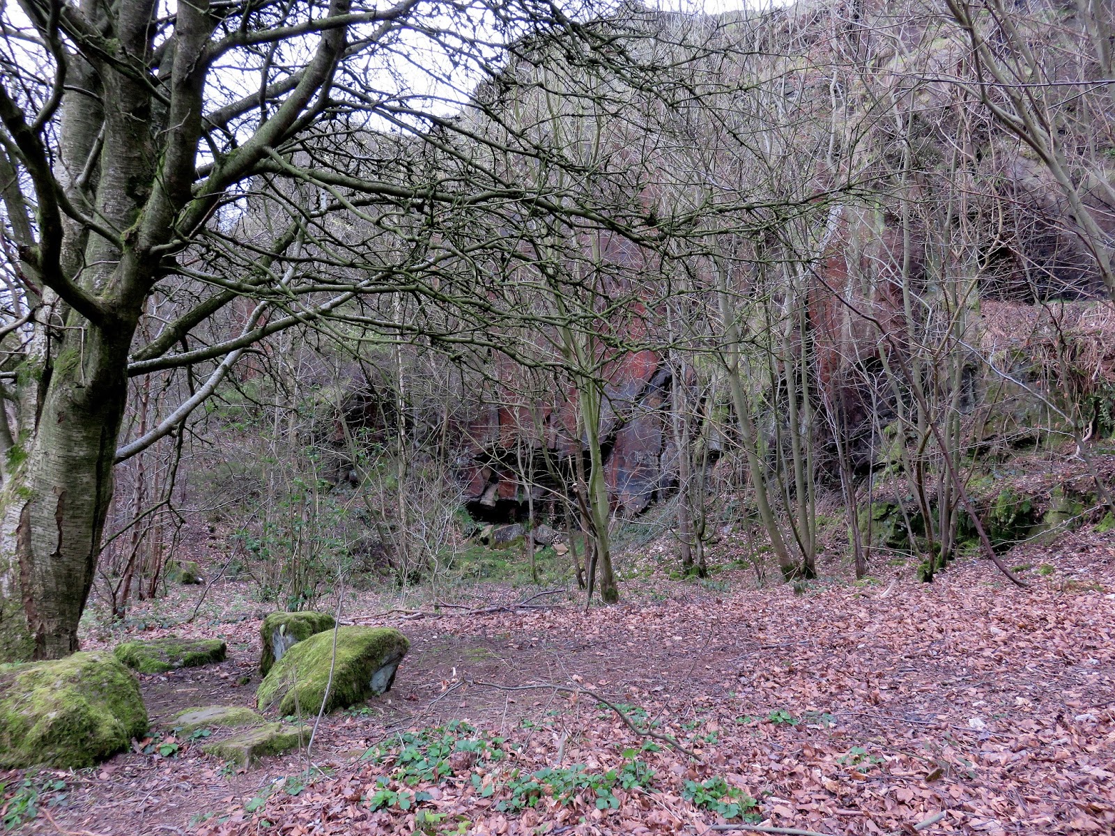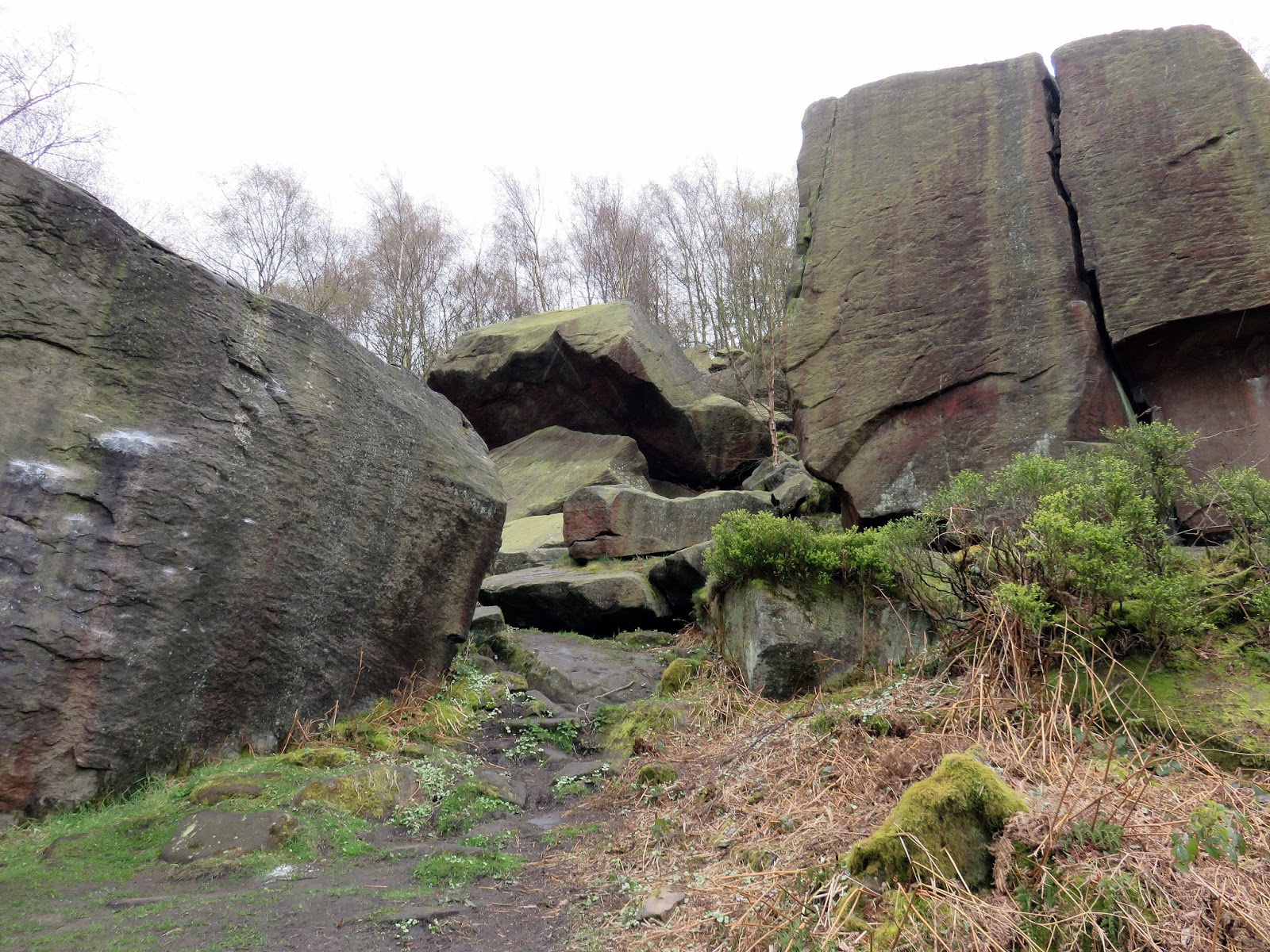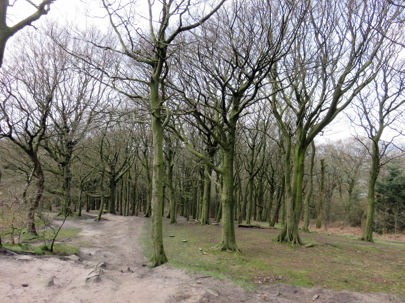 The path climbs directly towards the top of The Chevin but we were intent on saving that for later. Instead we turned south east to cut across the hillside through Ritchies Wood to the crags of the disused East Chevin Quarry. The millstone rocks could have been lifted straight from Stanage Edge and its certainly a surprise to find something so dramatic so close to Leeds. The track follows the line of crags to reach one of many free car parks that are dotted around the Forest Park.