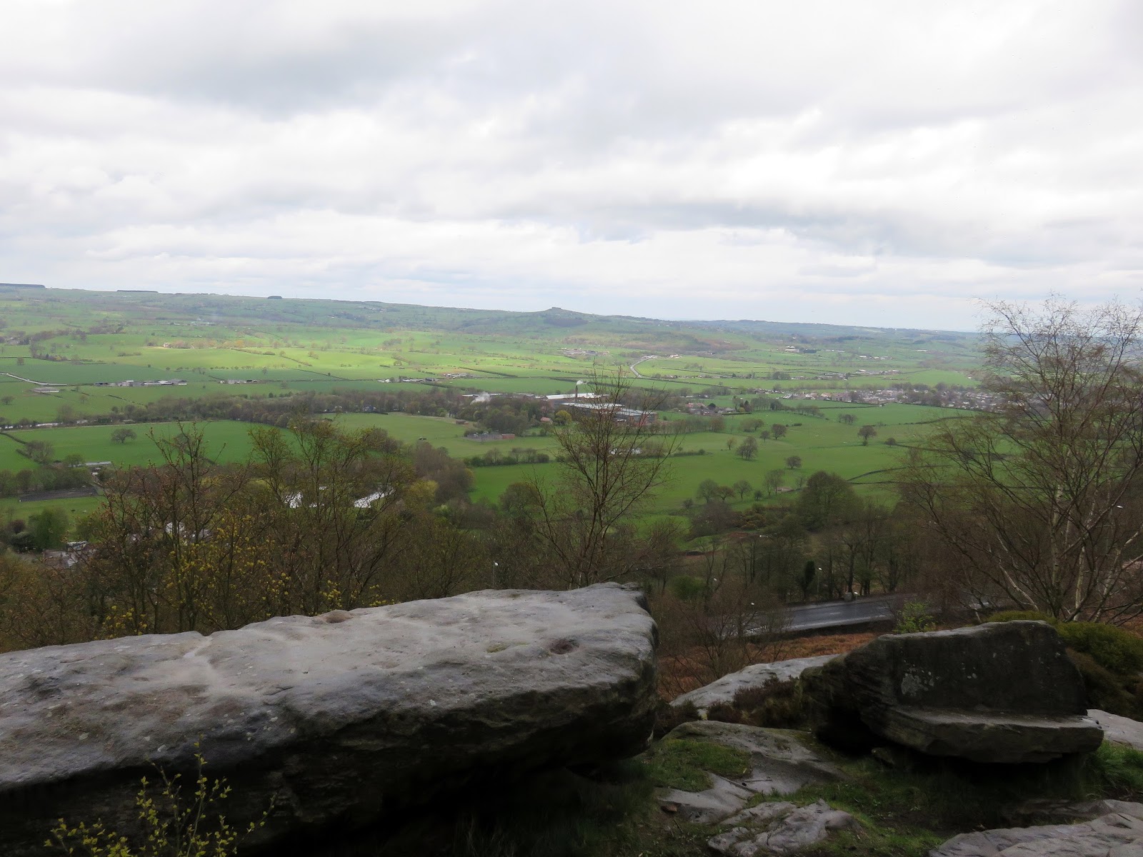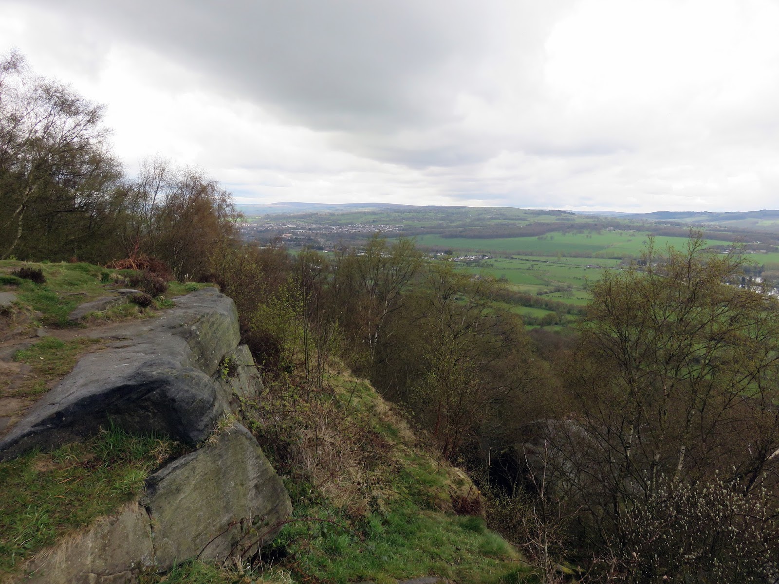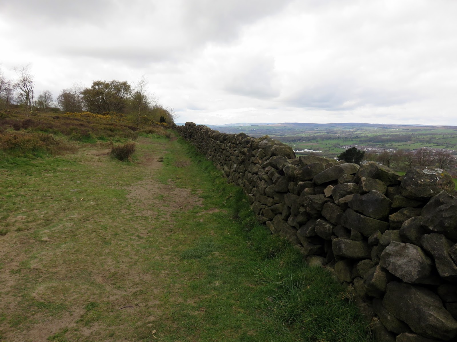 We turned, heading west now along the Dales Way that passes through the woods. After a short walk along the main road, we took Miller Lane which climbs up to Suprise View; the top of The Chevin. This point has a superlative view of Otley and Wharfedale as well as Leeds in Airedale. It is the site of a beacon, and a cross has been erected every Easter since 1969. The name comes from the Brythonic cefyn, cefn or cefu meaning a “ridge”, or “ridge of high land”.