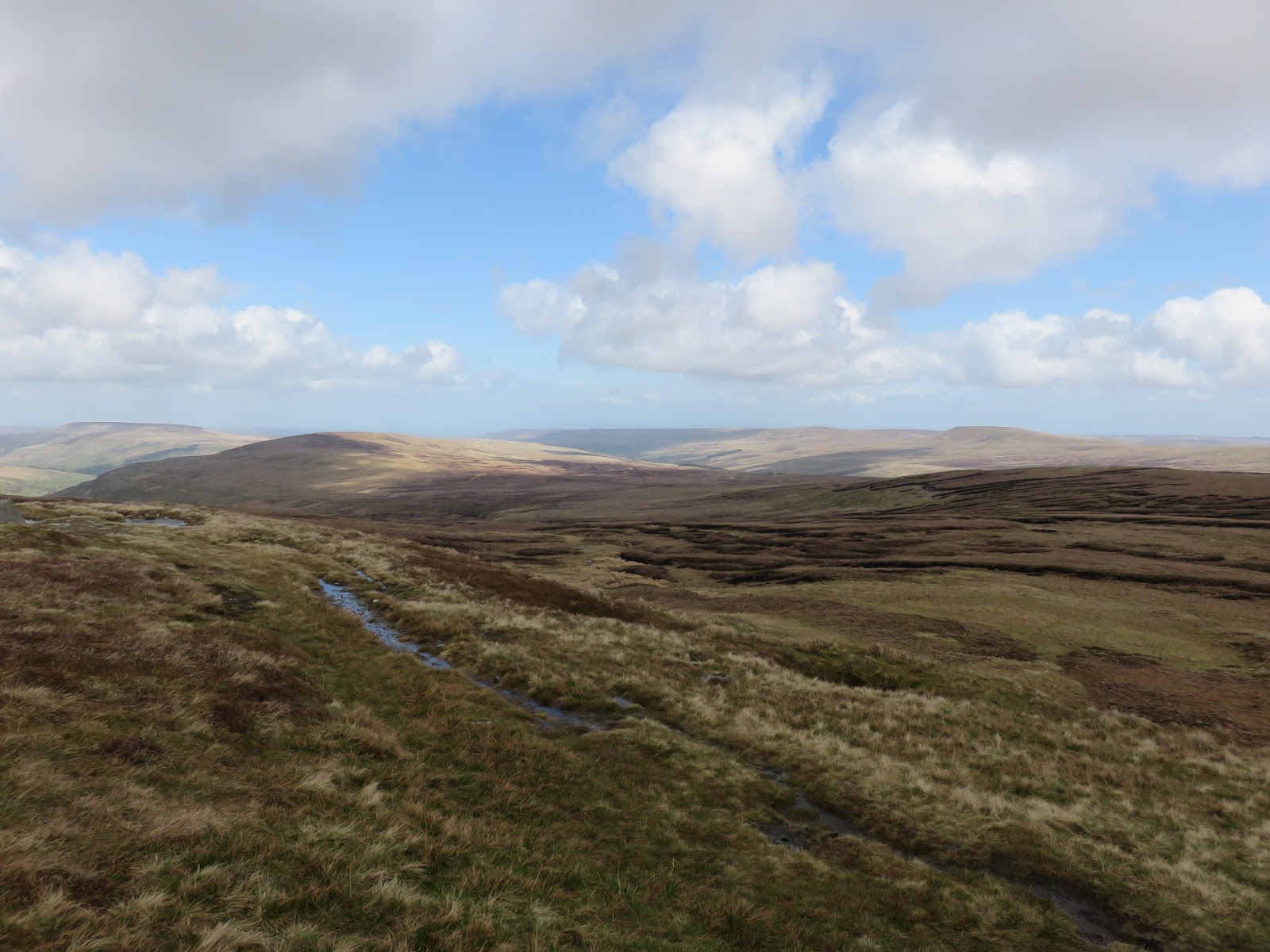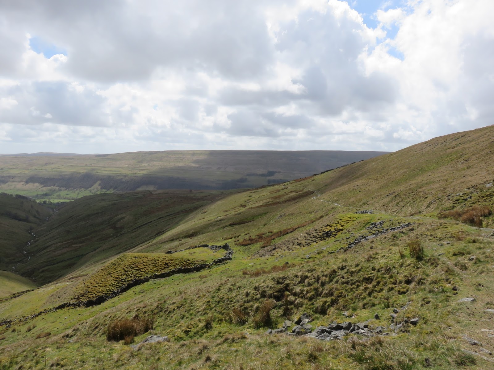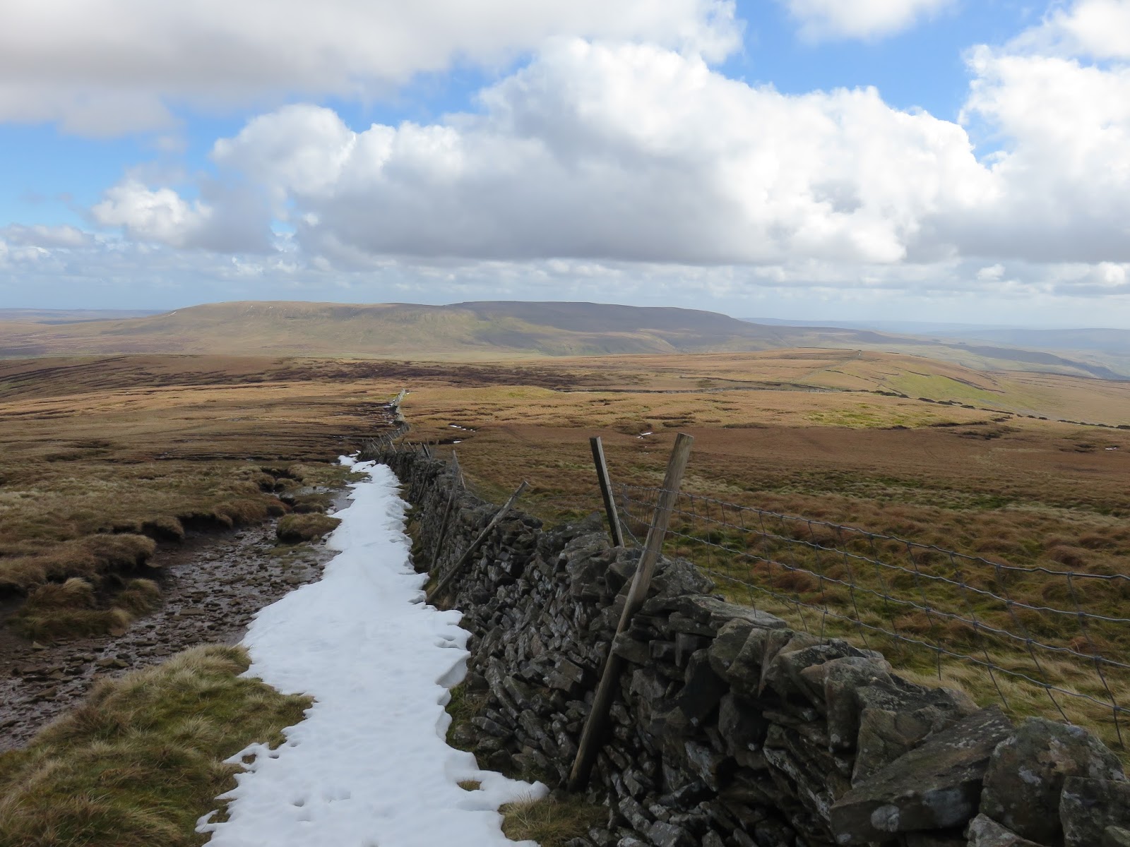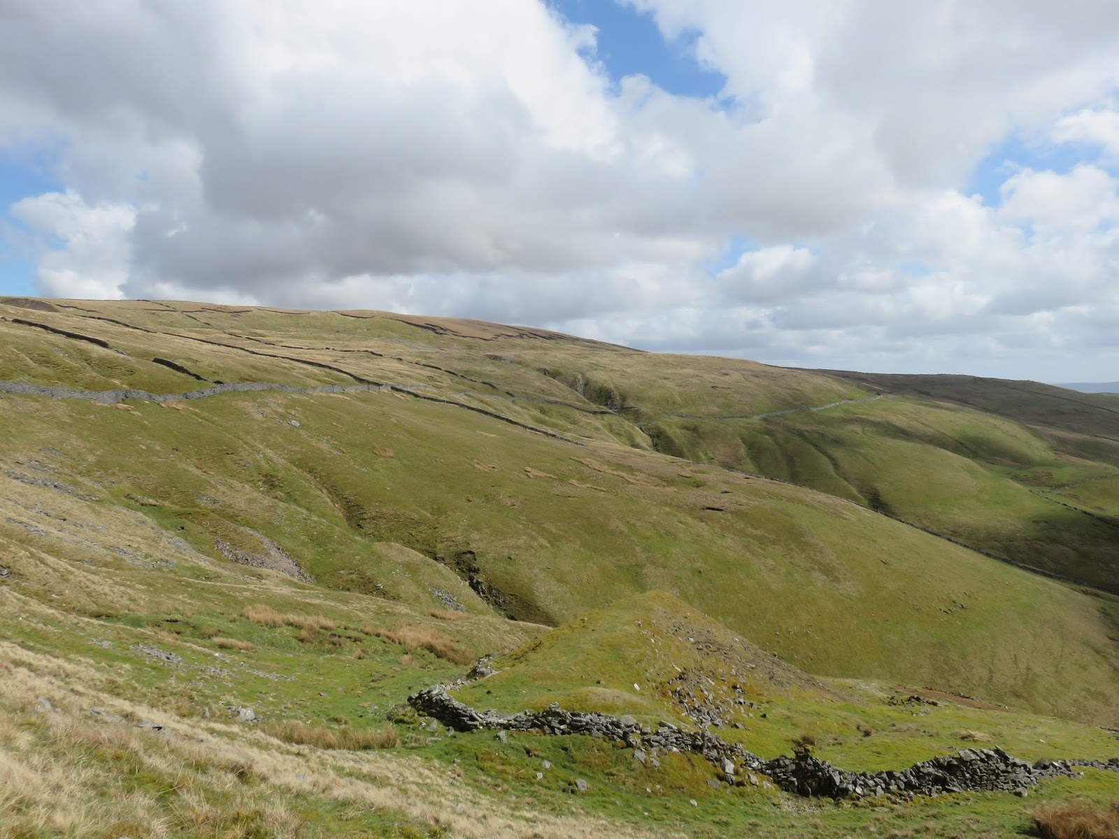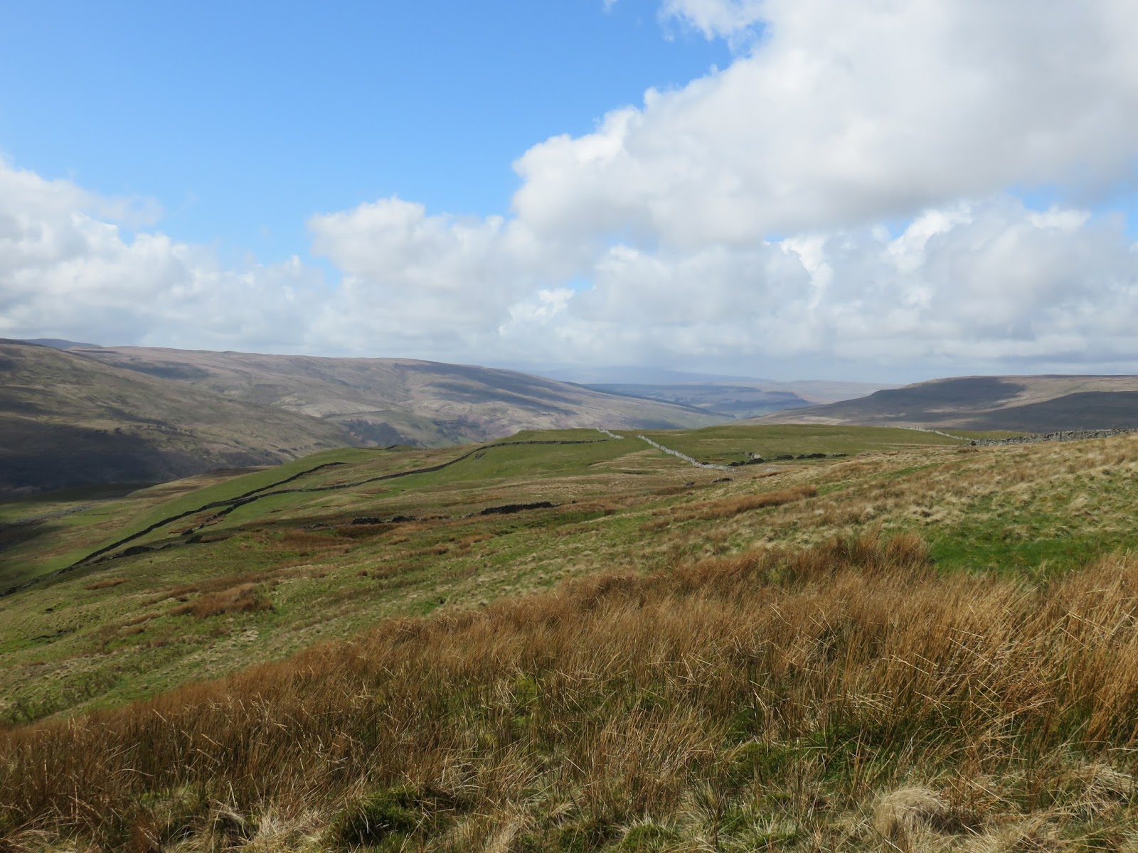 It is still possible to enter the mine, through the small brick-built hole at the head of the valley. Subterranean activities are not really my strong point so it was back to the path and the final 100m climb across Buckden Out Moor towards the summit. This is the steeper part of the overall route and the wind had started to get up, bringing with it a bit of a chill.