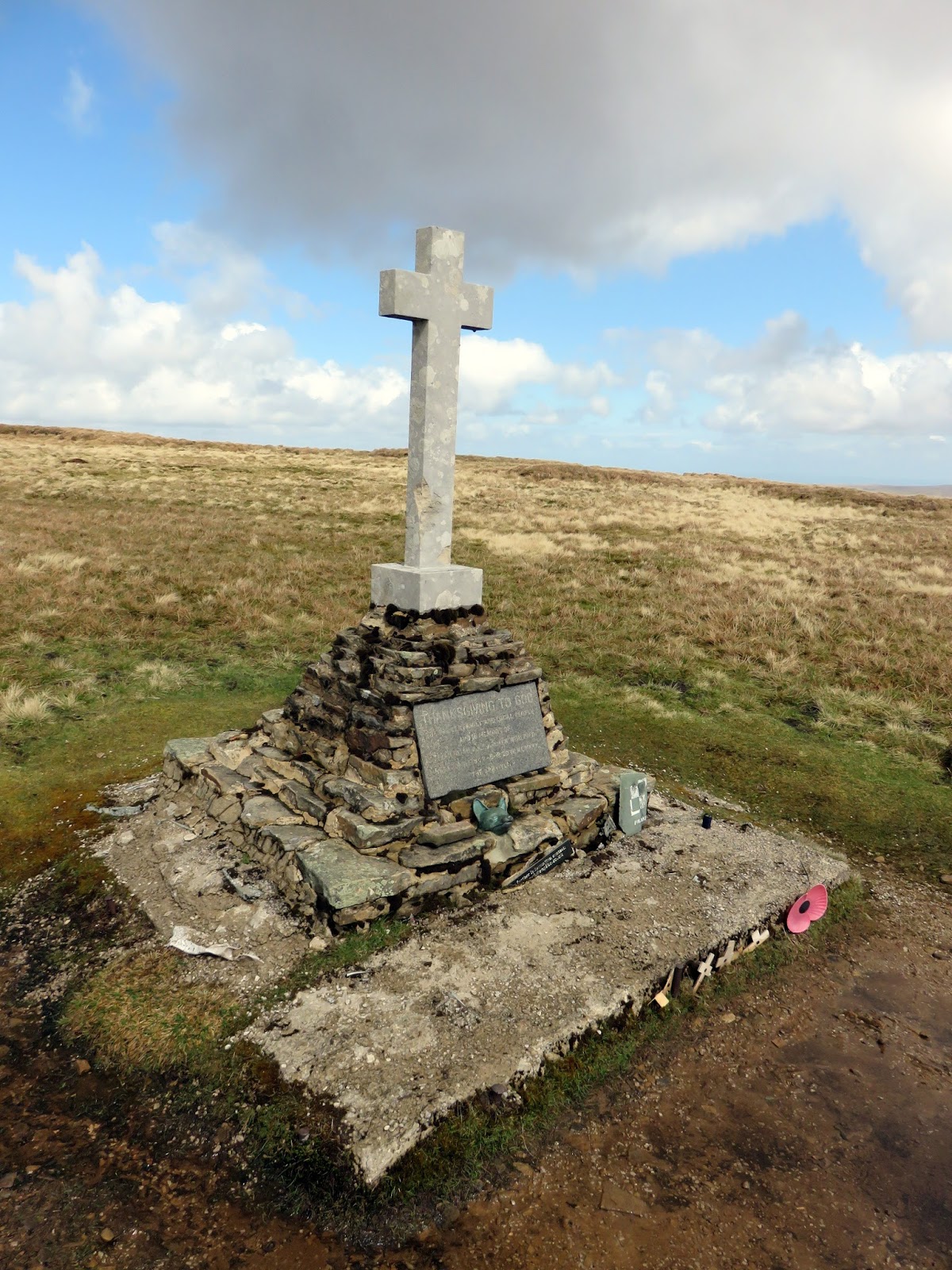 Leaving the summit, travelling south this time, the stone capped path follows the wind-swept ridge for just under a mile before reaching another junction of drystone walls. On the other side stands a modest memorial, the final remnants of a remarkable story.