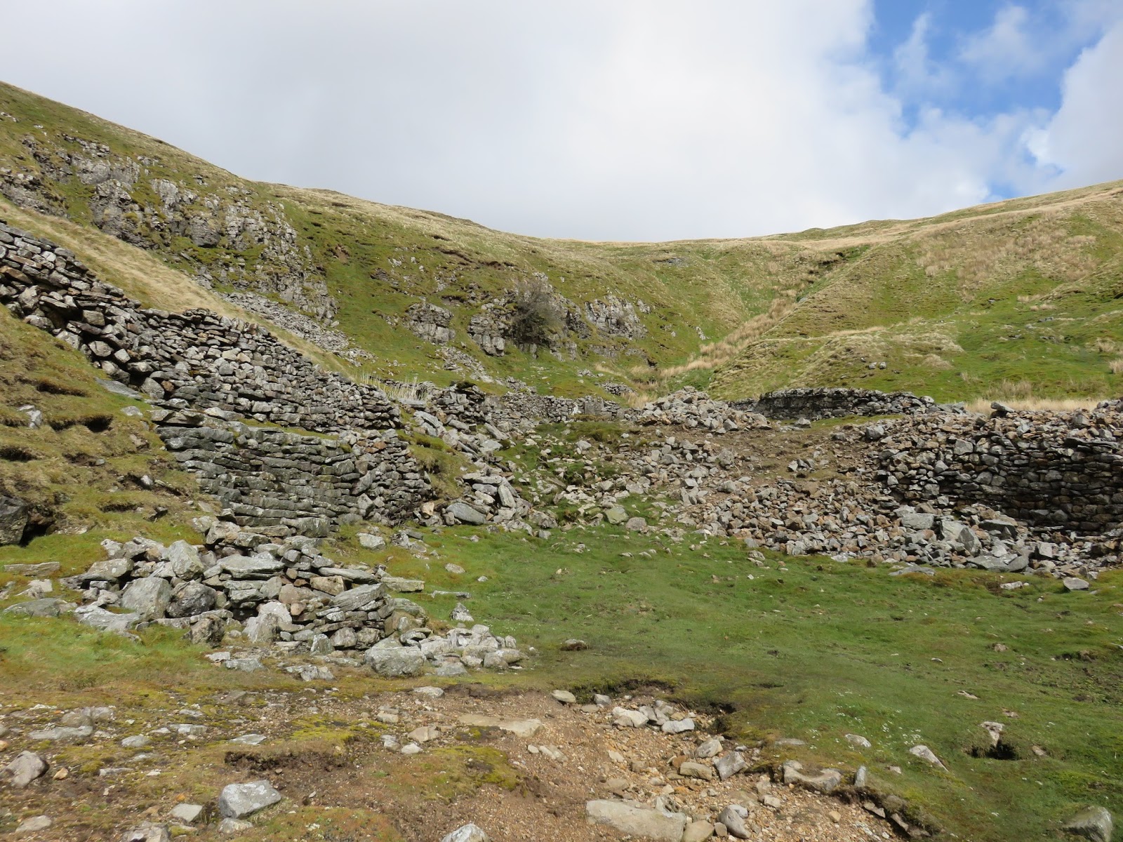 The third fall marks the last of the difficulties, from here the route is easy to follow, the remaining few falls being easily bypassed up their grassy banks. After a few moments of steady climbing, the path reaches the sad remains of Buckden Gavel Lead Mine, perched high up on the hill side.