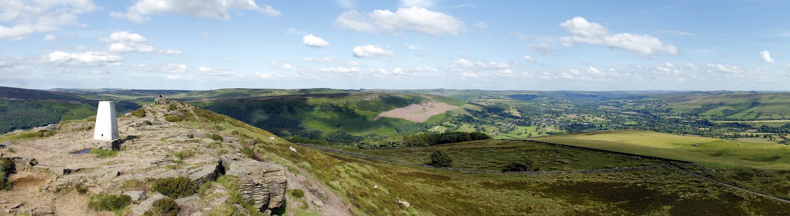 A rutted track continues the Great Ridge to its final summit, that of Lose Hill. The top was given to local access activist G. H. B. Ward by the Sheffield and District Federation of the Ramblers Association in 1945, which was named Ward’s Piece; he subsequently presented this to the National Trust.