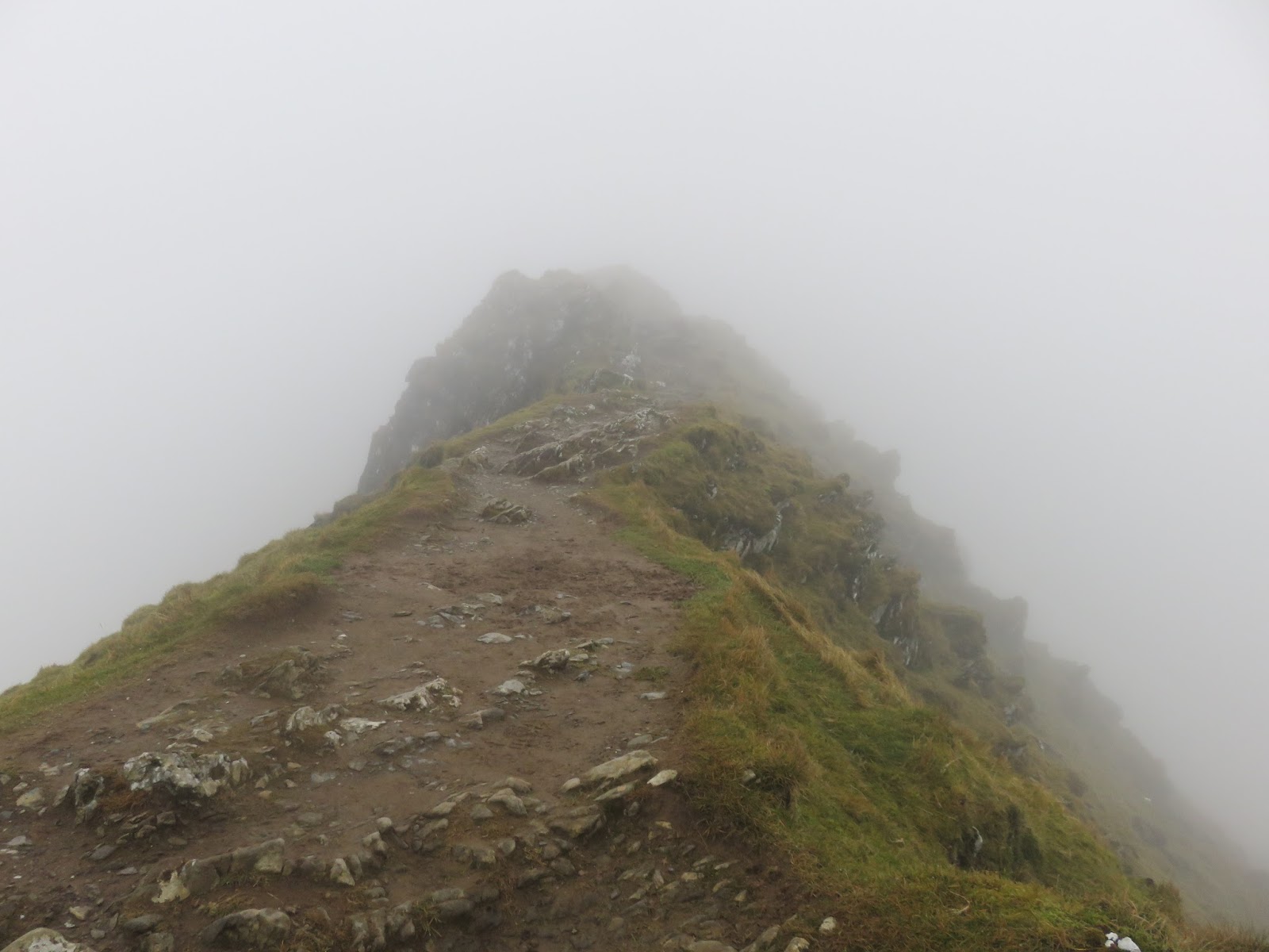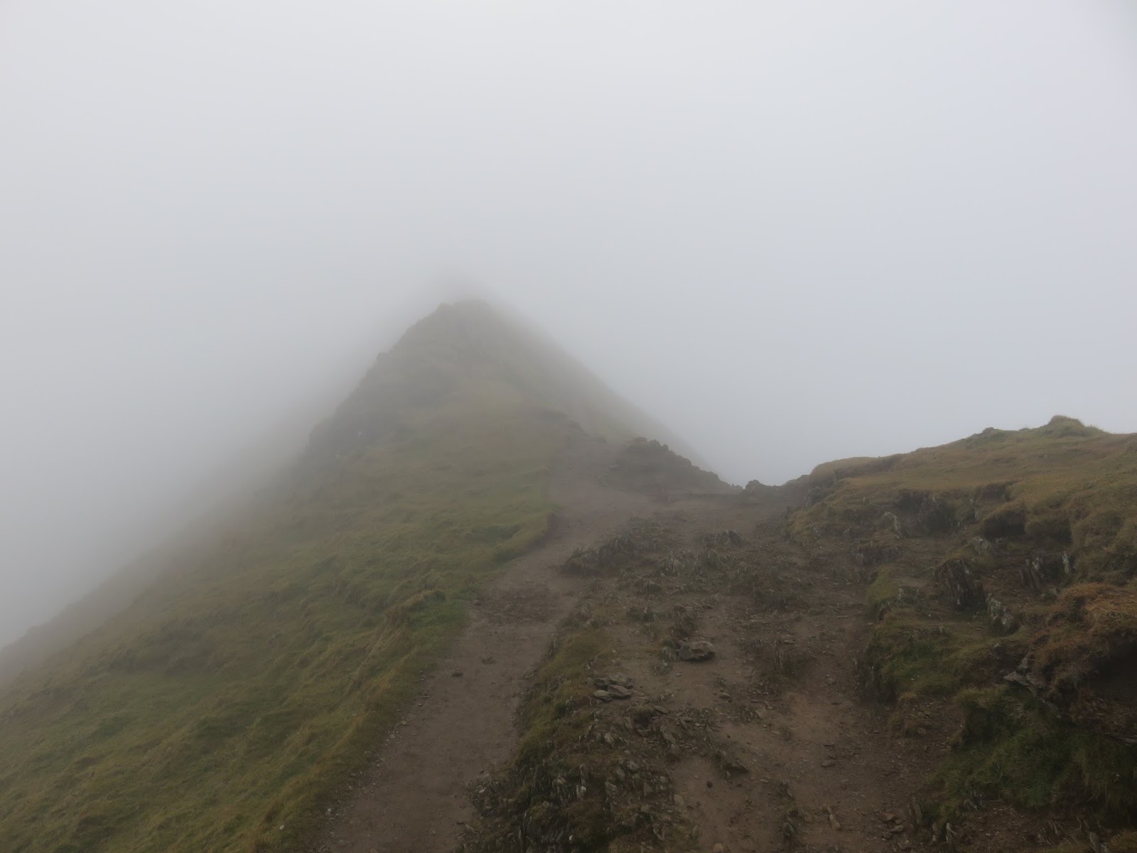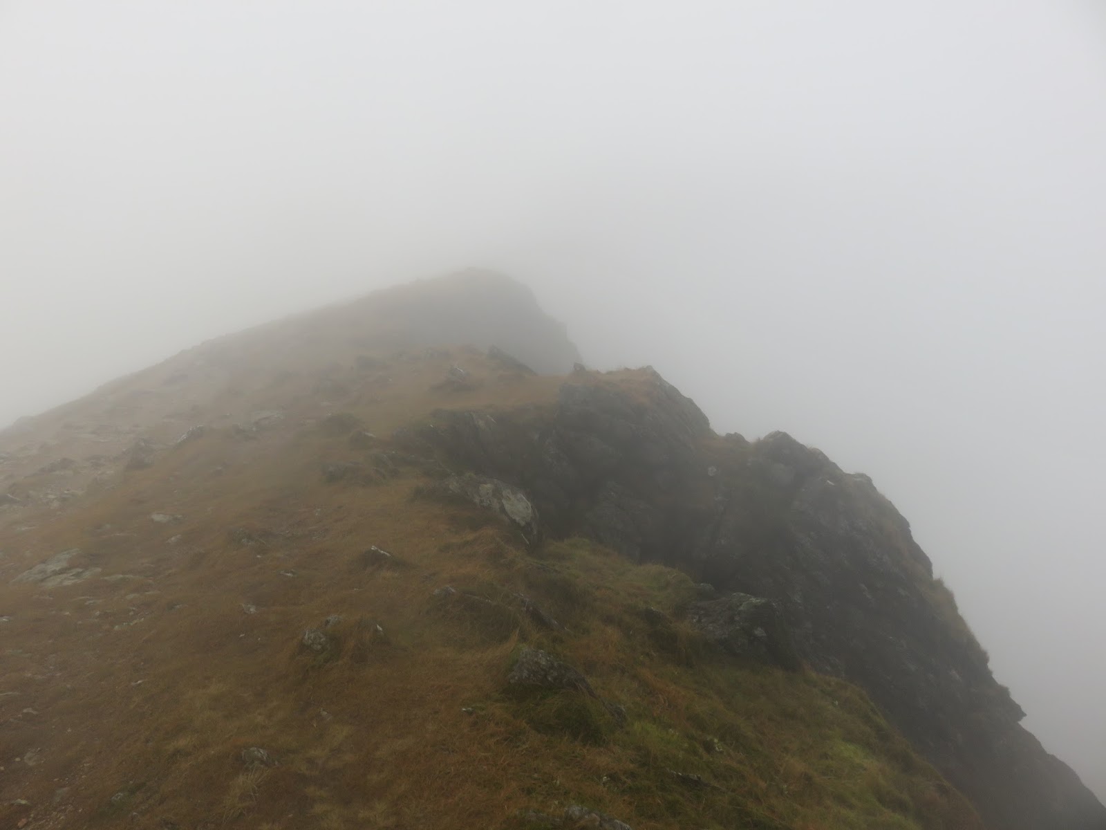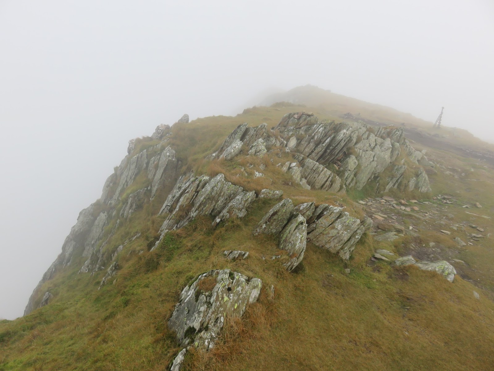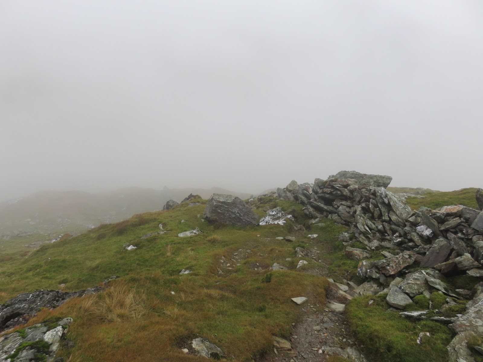 Sadly, this did not pay off and, shortly after setting off, I entered the greyness while making the steep climb. The south ridge gains around 200m in height in half a kilometre, reaching another small top at Bwlch Main where things get really interesting.