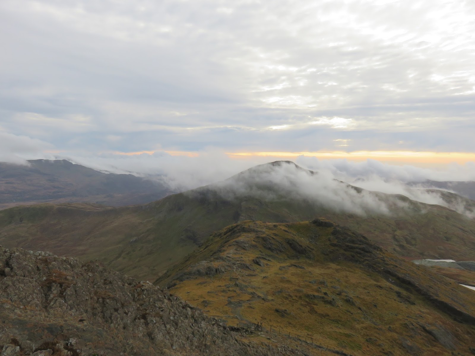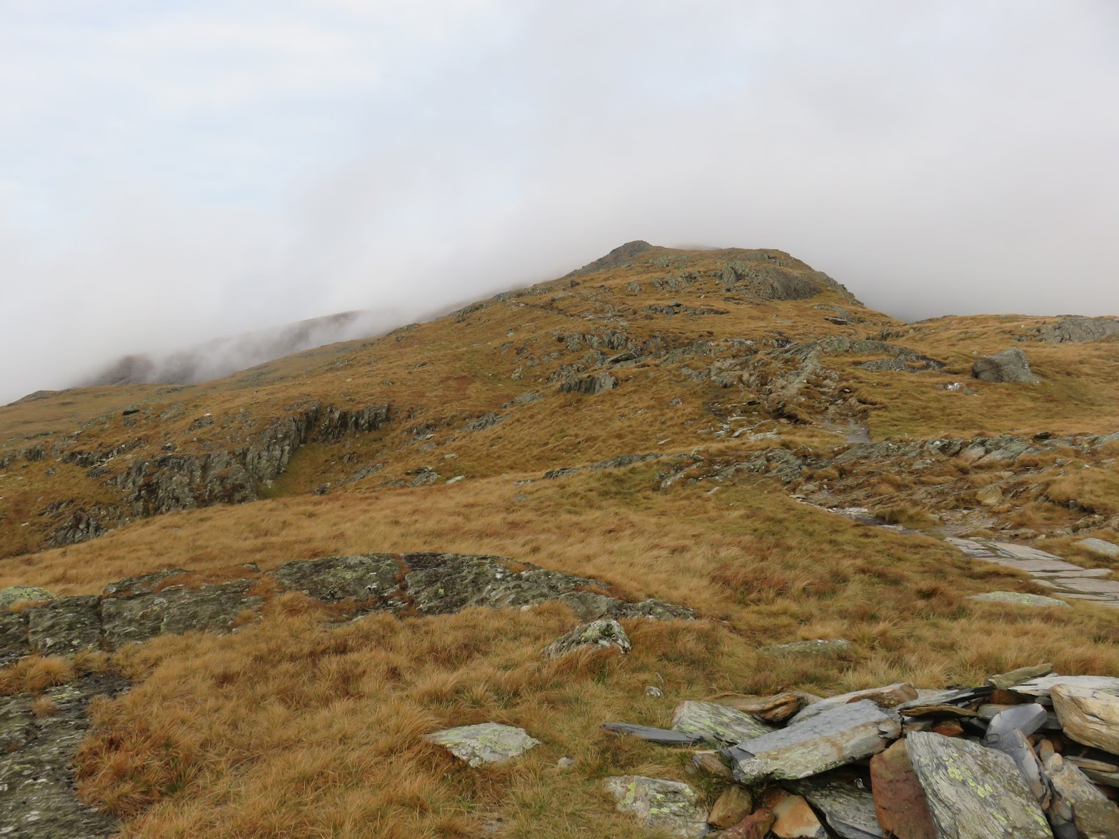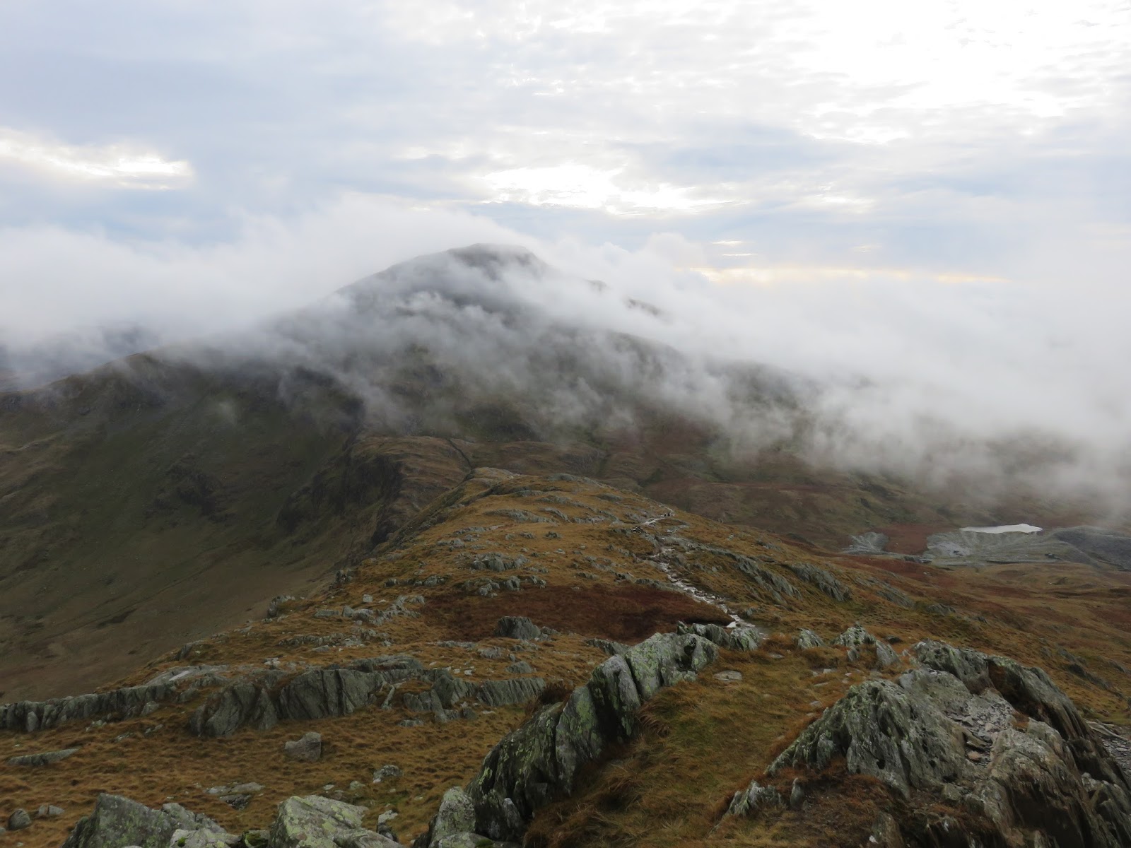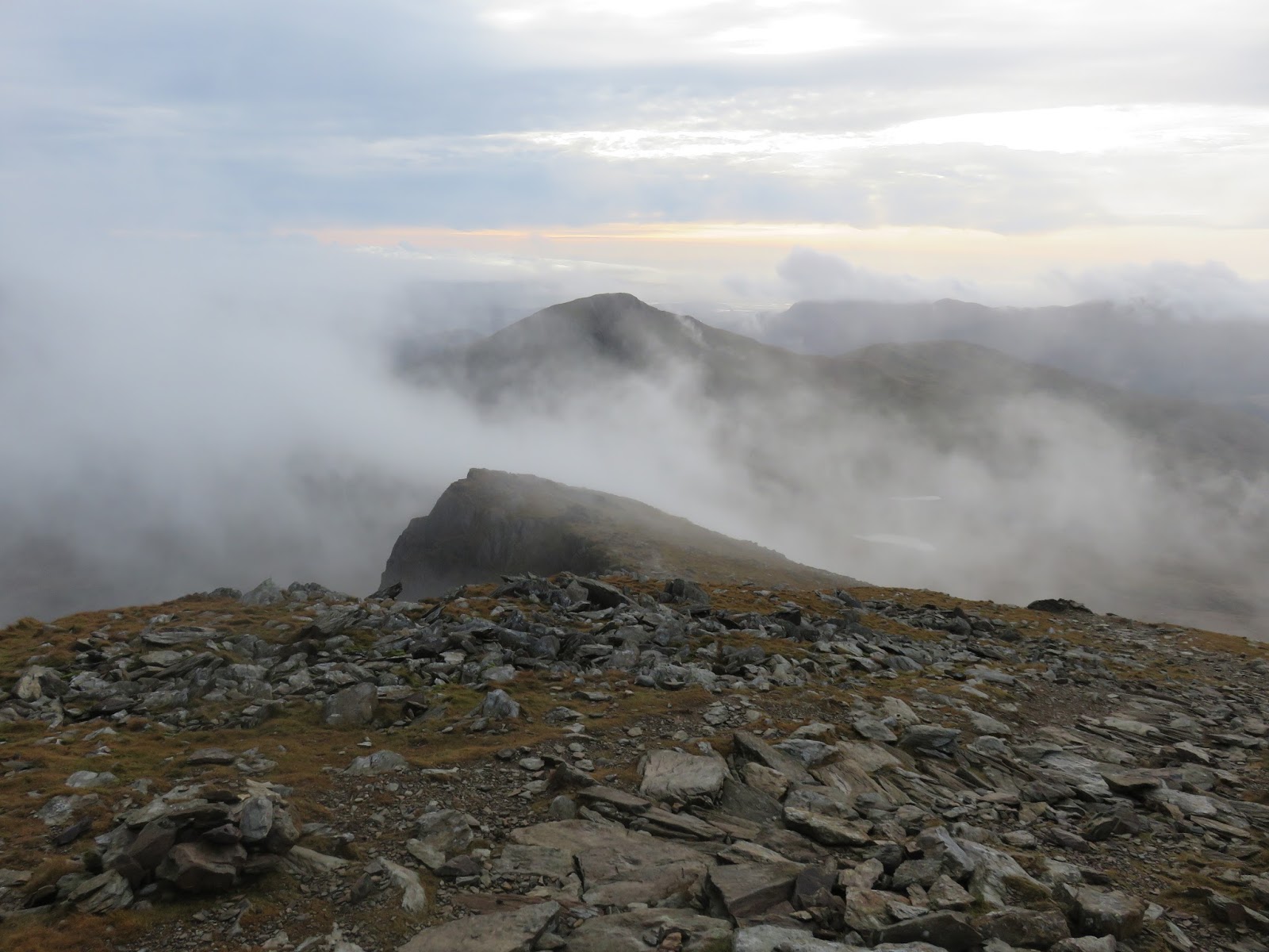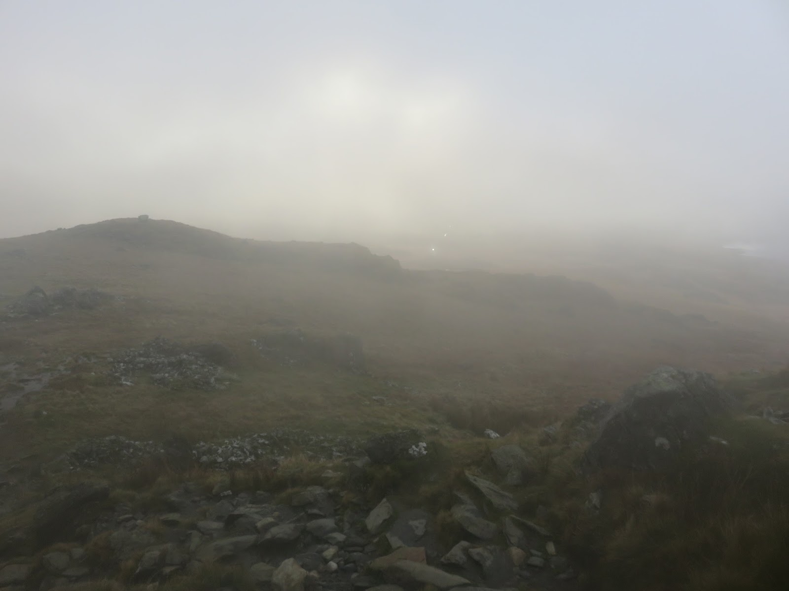 Sadly, this did not pay off and, shortly after setting off, I entered the greyness while making the steep climb. The south ridge gains around 200m in height in half a kilometre, reaching another small top at Bwlch Main where things get really interesting.