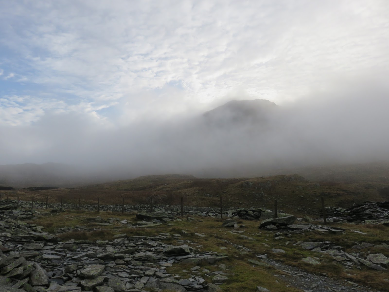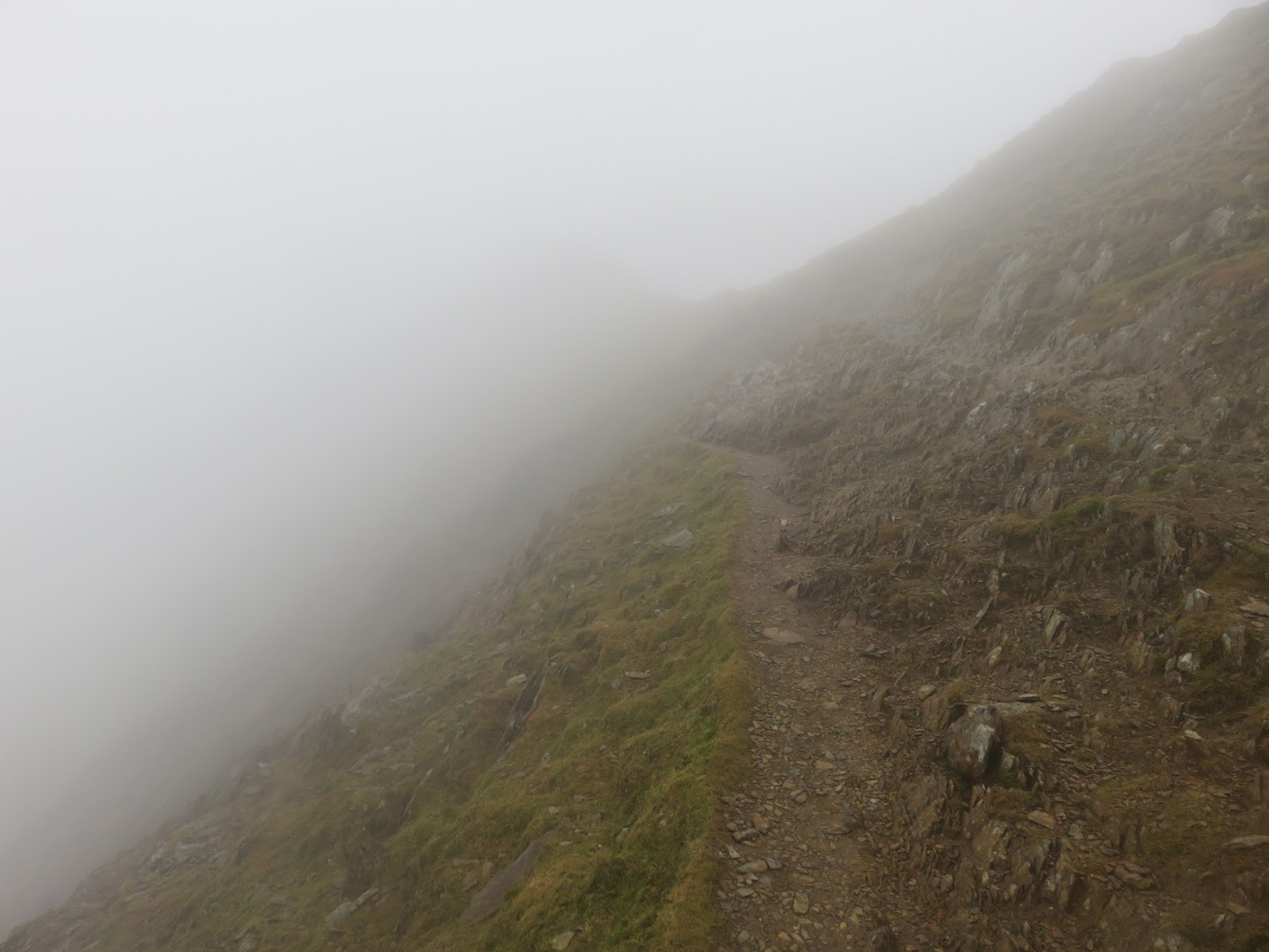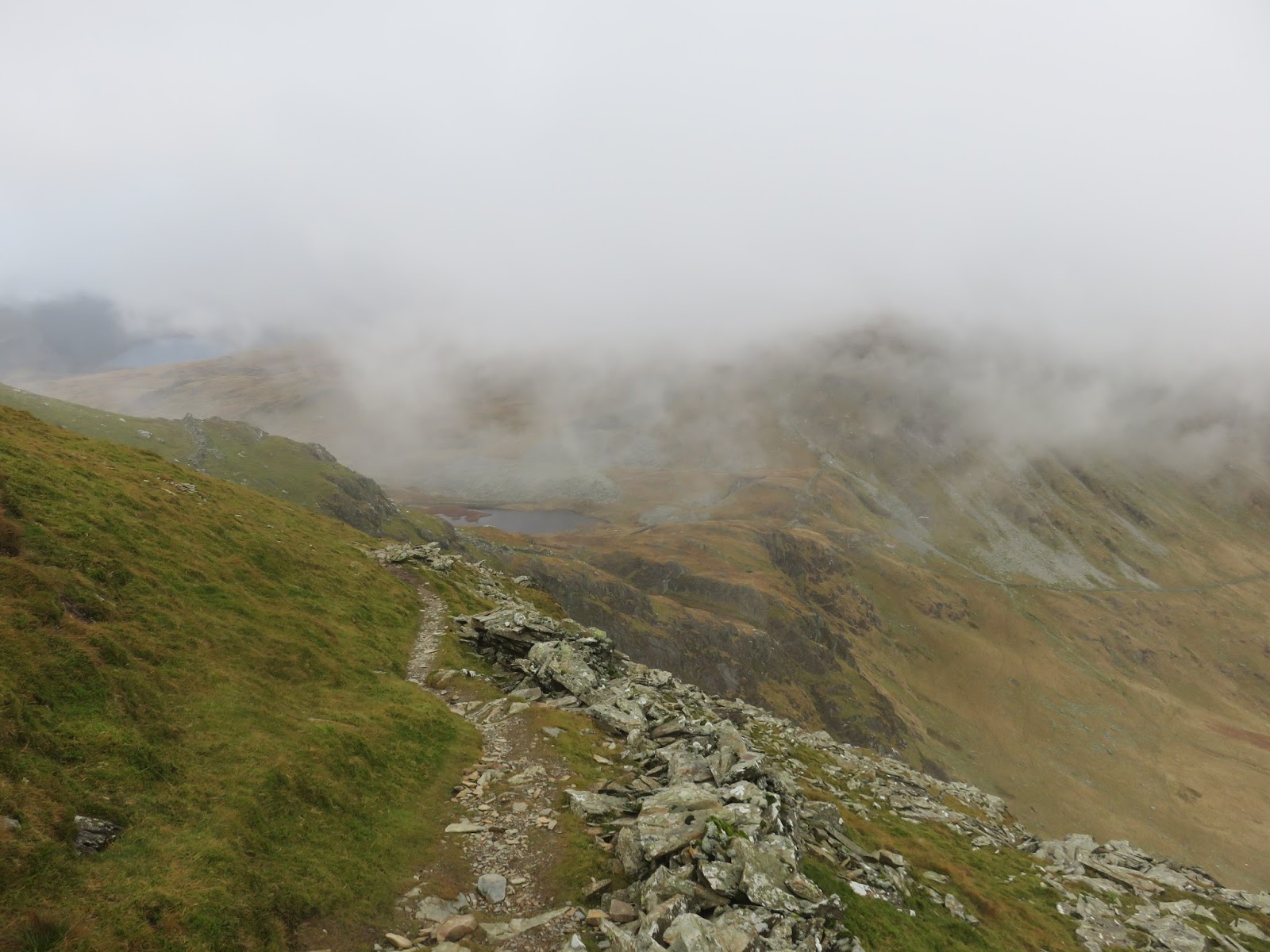 I toyed with the idea of returning along the Snowdon Ranger Path bit decided to return via the Rhyd-Ddu path thanks to a niggling ankle injury picked up the day before. I also secretly hoped that the clouds may still lift a little to reveal Bwlch Main. Sadly, this did not happen.