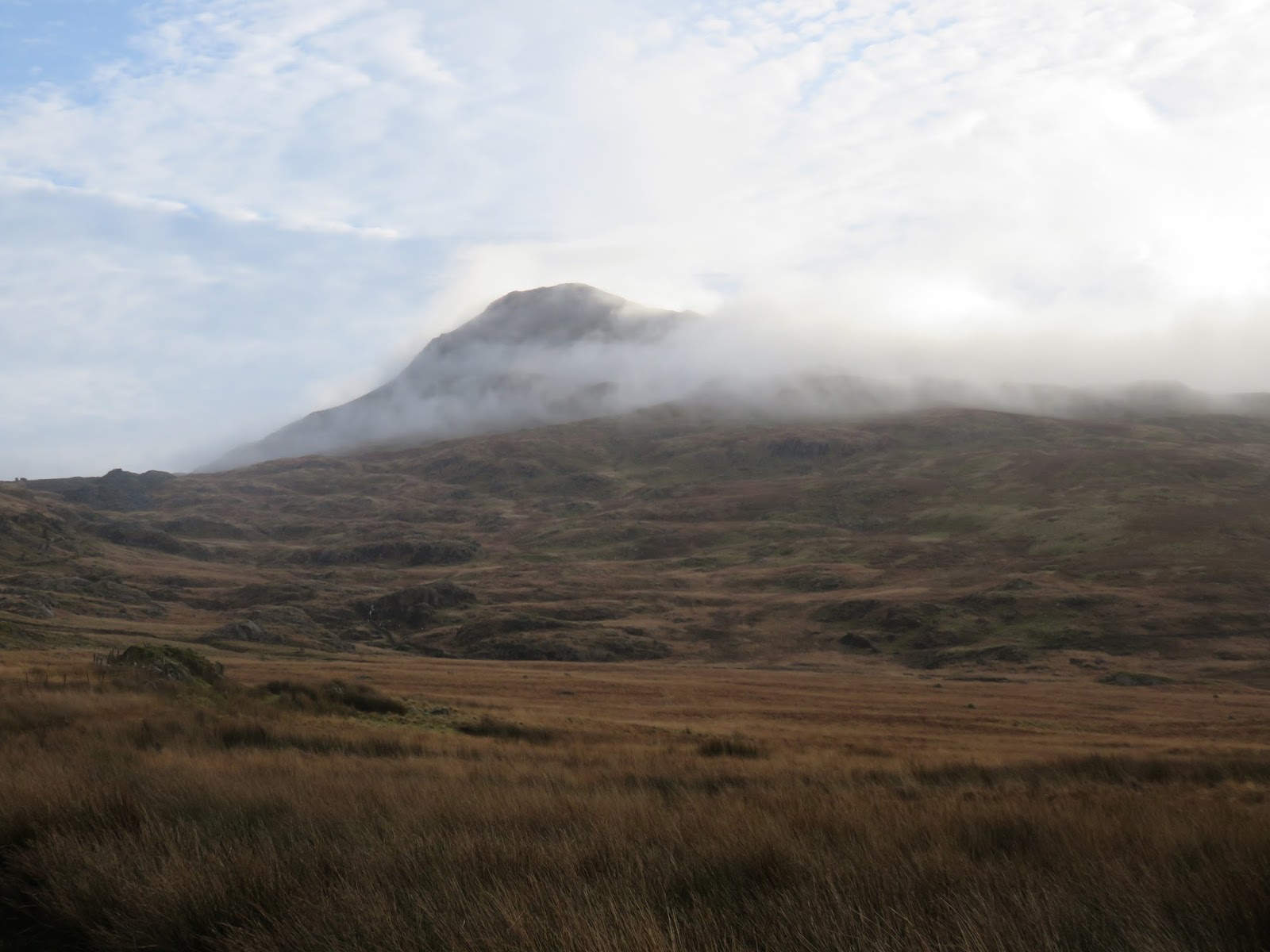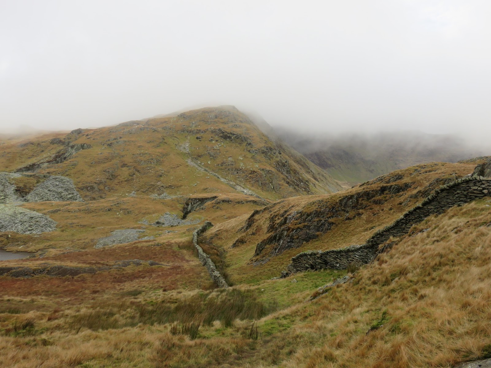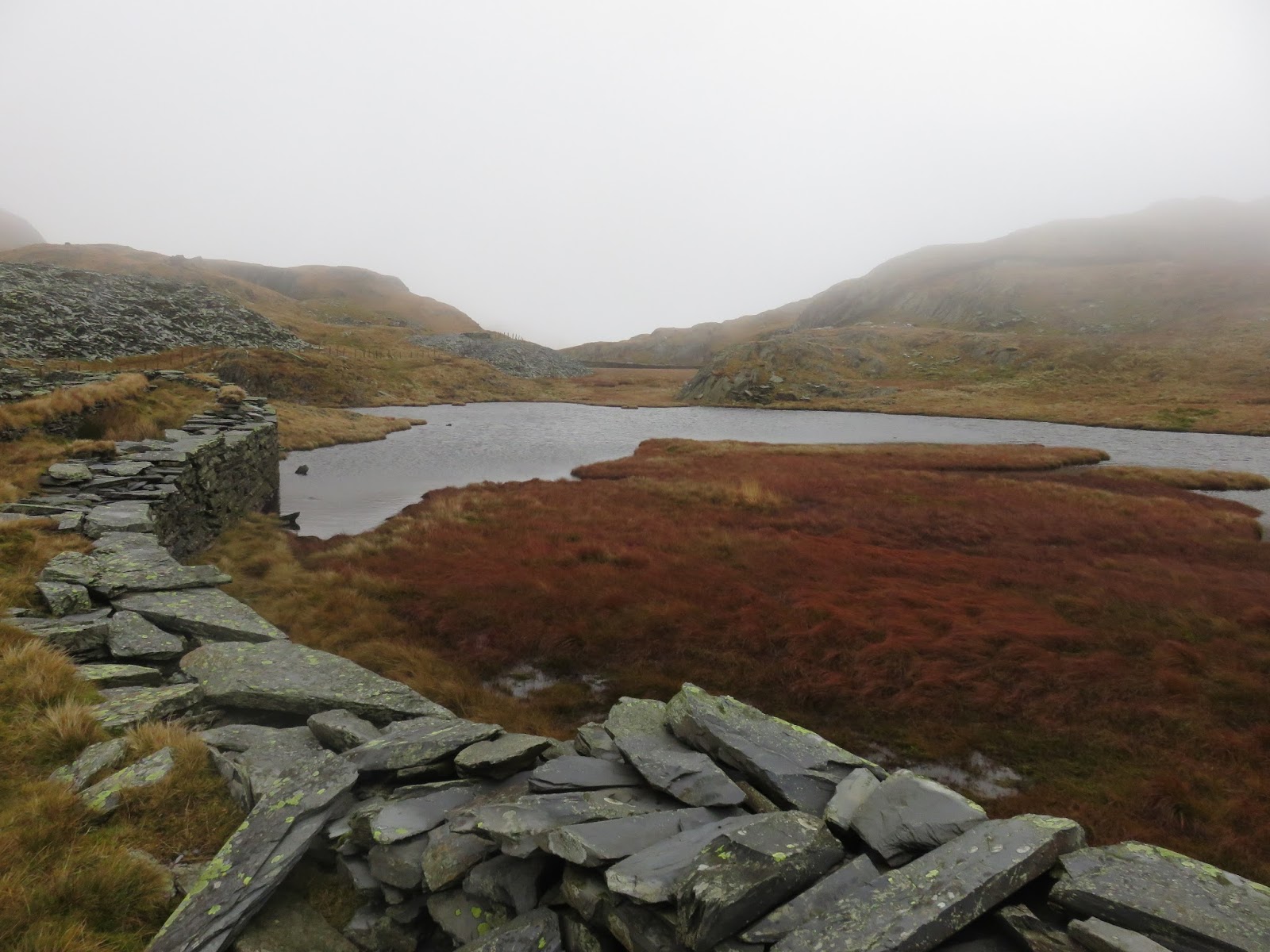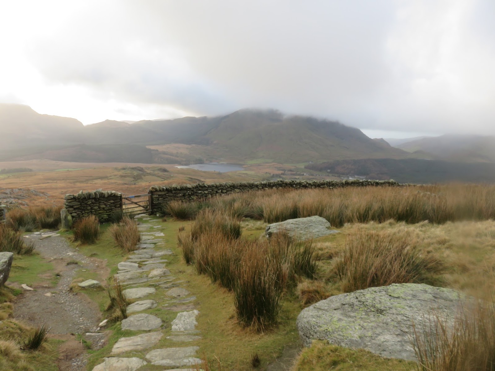 As it was early, I decided to make the climb up Yr Aran, which stands alone to the south of Snowdon. Clouds were swirling around the summit and it’s a pretty steep climb in places. The path follows a drystone wall to Yr Aran’s east ridge before turning at a right angle to gain the summit. No views today, so, it was quickly back down to the path and Bwlch Cwm Llan. All in all, the diversion to Yr Aran and back took me around an hour.