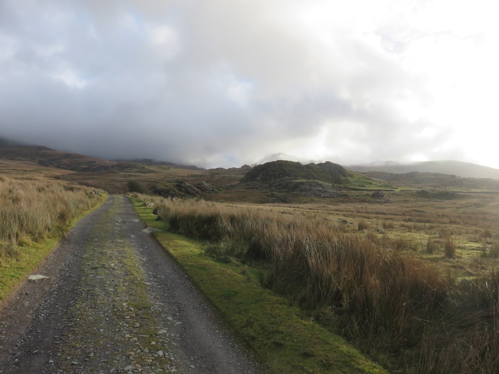 It was a fine morning with a few low clouds hanging around but a dry day was on the cards so there was little risk of getting a soaking. I left the car in Rhyd-Ddu, crossed the railway line and strode out along the Rhyd-Ddu path in the sunshine. The path rises slowly and easily to a point called Pen ar Lôn where a crossroads of paths can be found. The Rhyd-Ddu path turns left. I, however, was bound for a slightly different route.