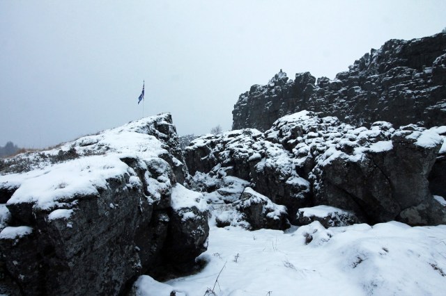 We arrived at the site mid-morning, still early enough for it to be dark as we left the car to make a brief tour of the main sights. This included Almannagjá, one of the mighty cracks formed by the shifting plates, Öxarárfoss, a lovely waterfall that cascades over Almannagjá, the Alþingi (assembly), Iceland’s first parliamentary location (formed in the year 930) and the Lögberg, or Law Rock, a rocky outcrop that was used for lawmakers to make speeches.