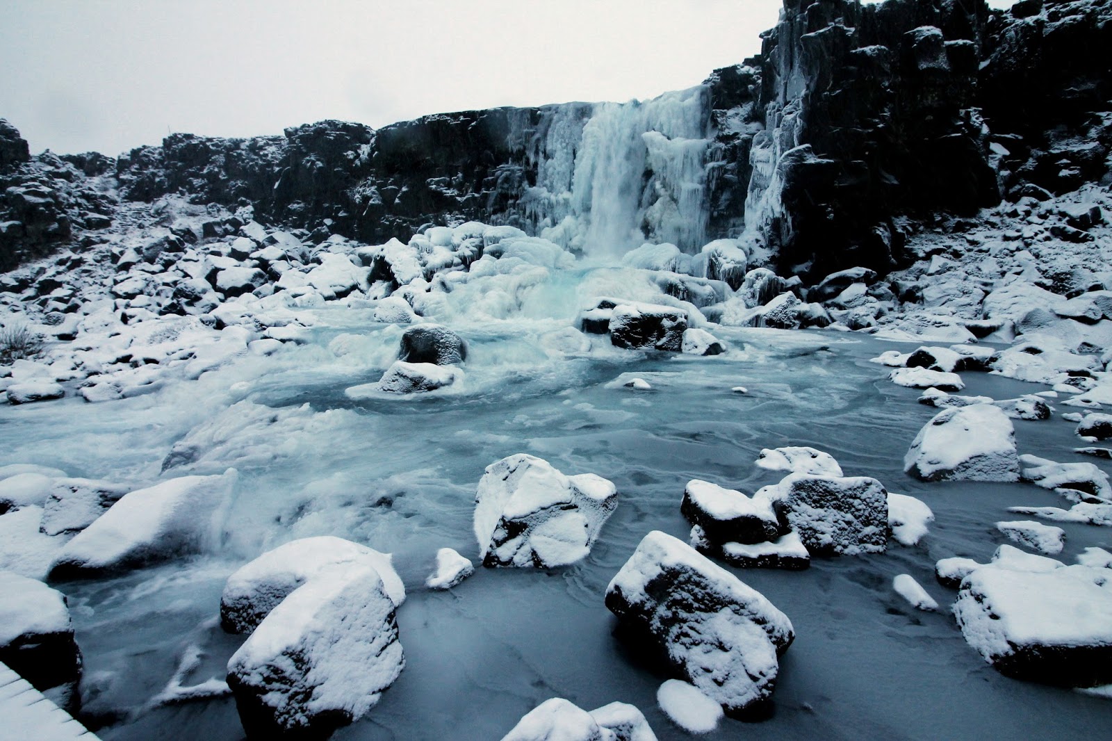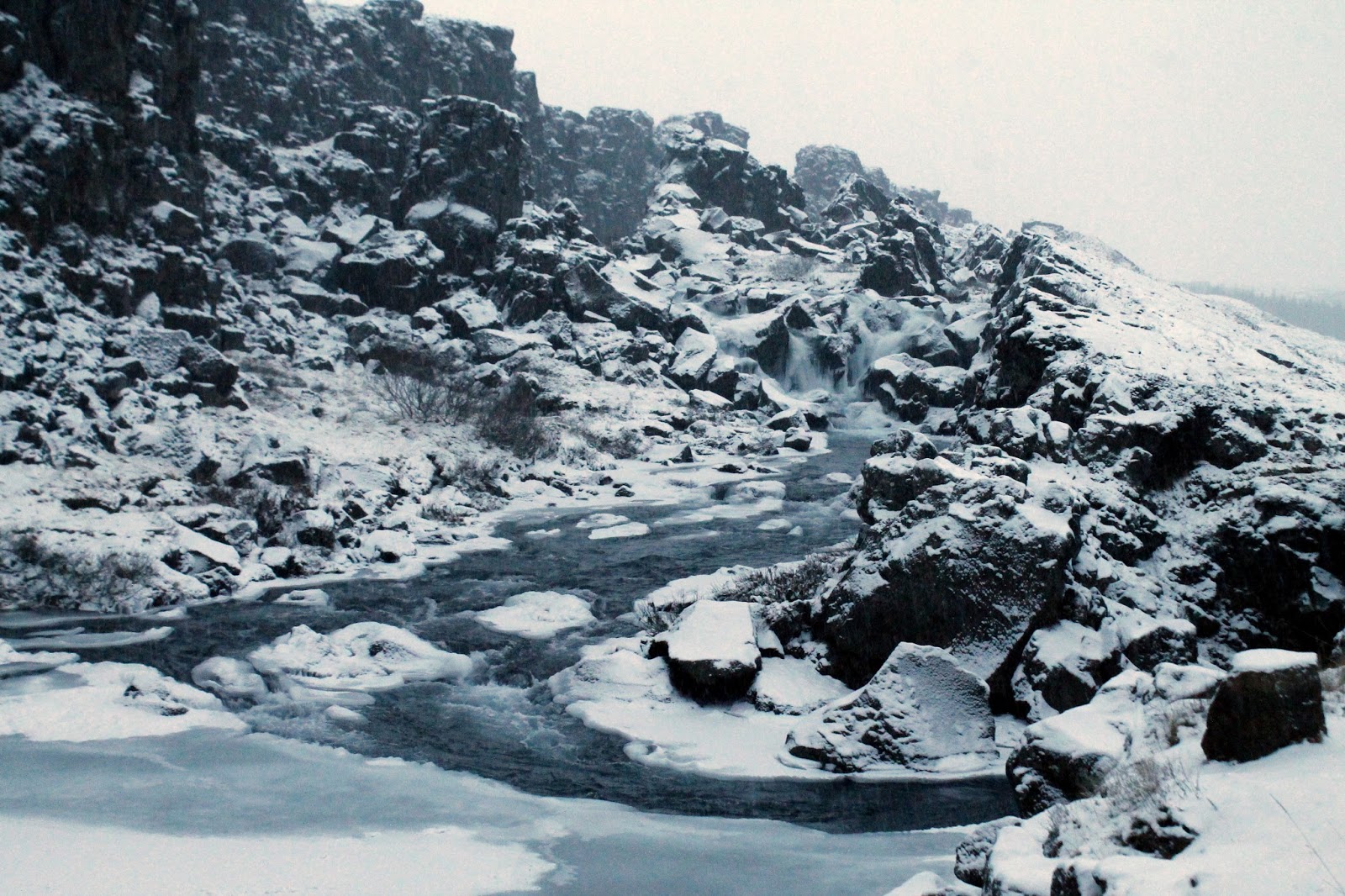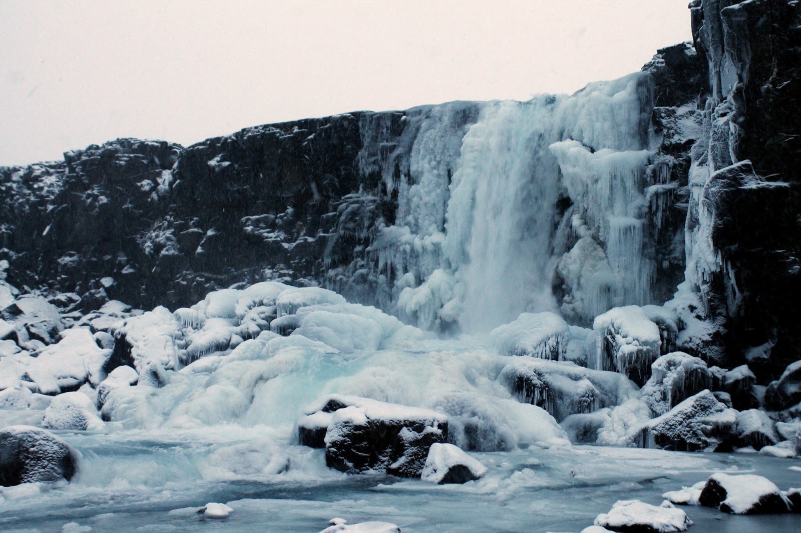 We arrived at the site mid-morning, still early enough for it to be dark as we left the car to make a brief tour of the main sights. This included Almannagjá, one of the mighty cracks formed by the shifting plates, Öxarárfoss, a lovely waterfall that cascades over Almannagjá, the Alþingi (assembly), Iceland’s first parliamentary location (formed in the year 930) and the Lögberg, or Law Rock, a rocky outcrop that was used for lawmakers to make speeches.