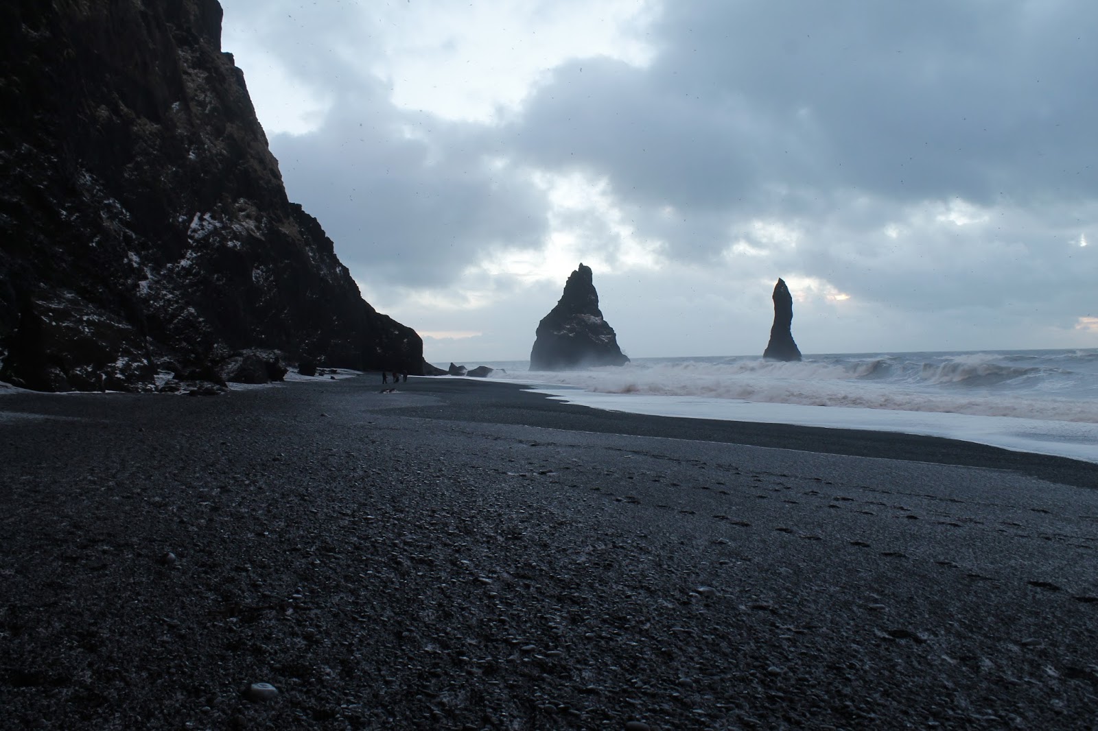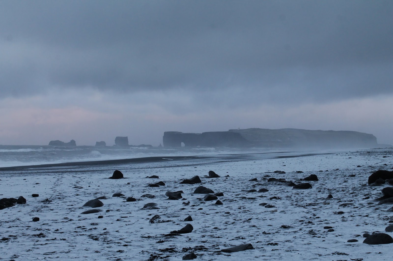 The following day we were heading back west towards Reykjavík, first stopping at Reynisfjara – the legendary black sand beach. We hadn’t anticipated a stop here but decided we’d give it a go anyway, despite the snowy weather. I’m glad we did. It’s another beautiful location.