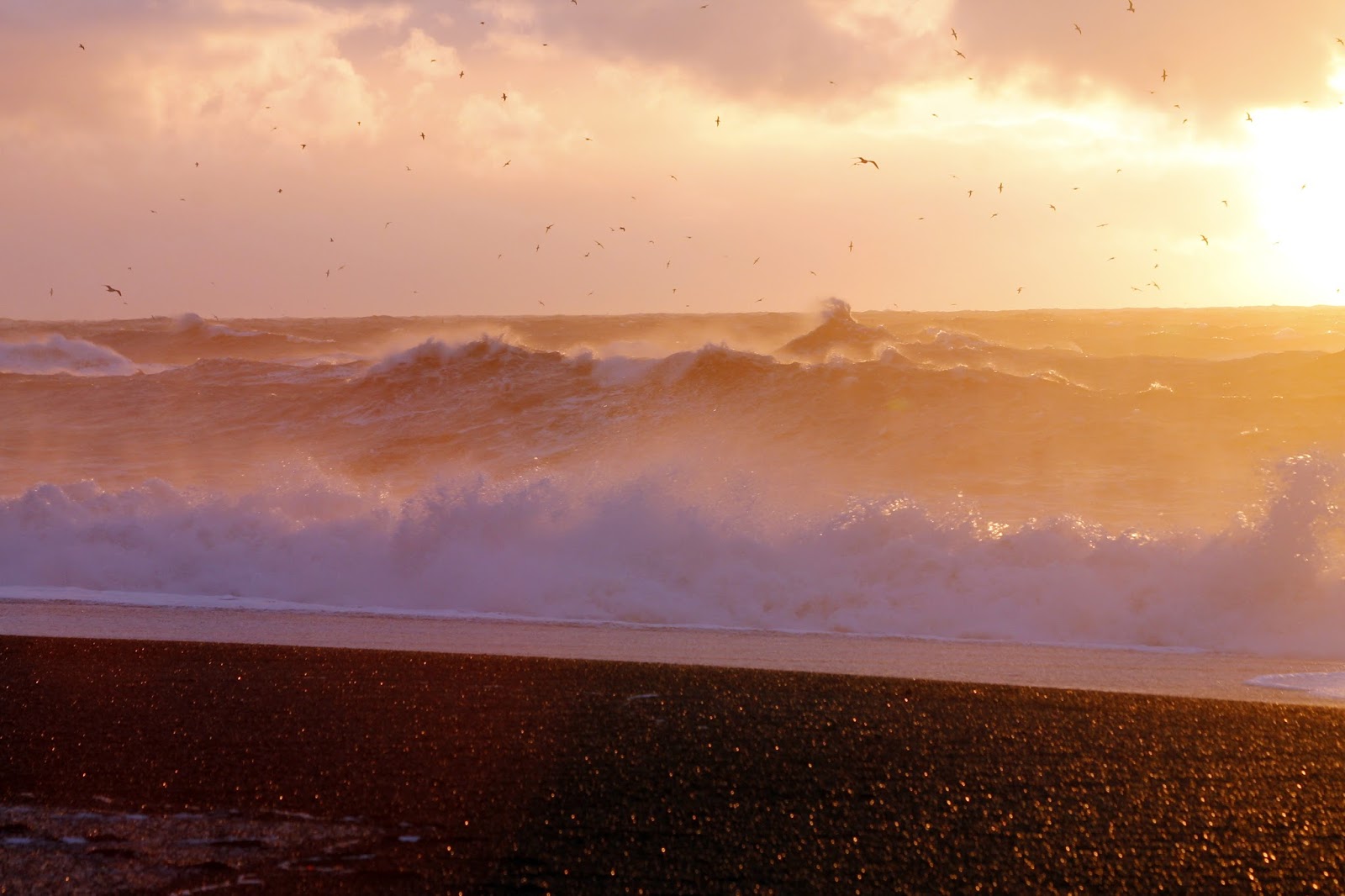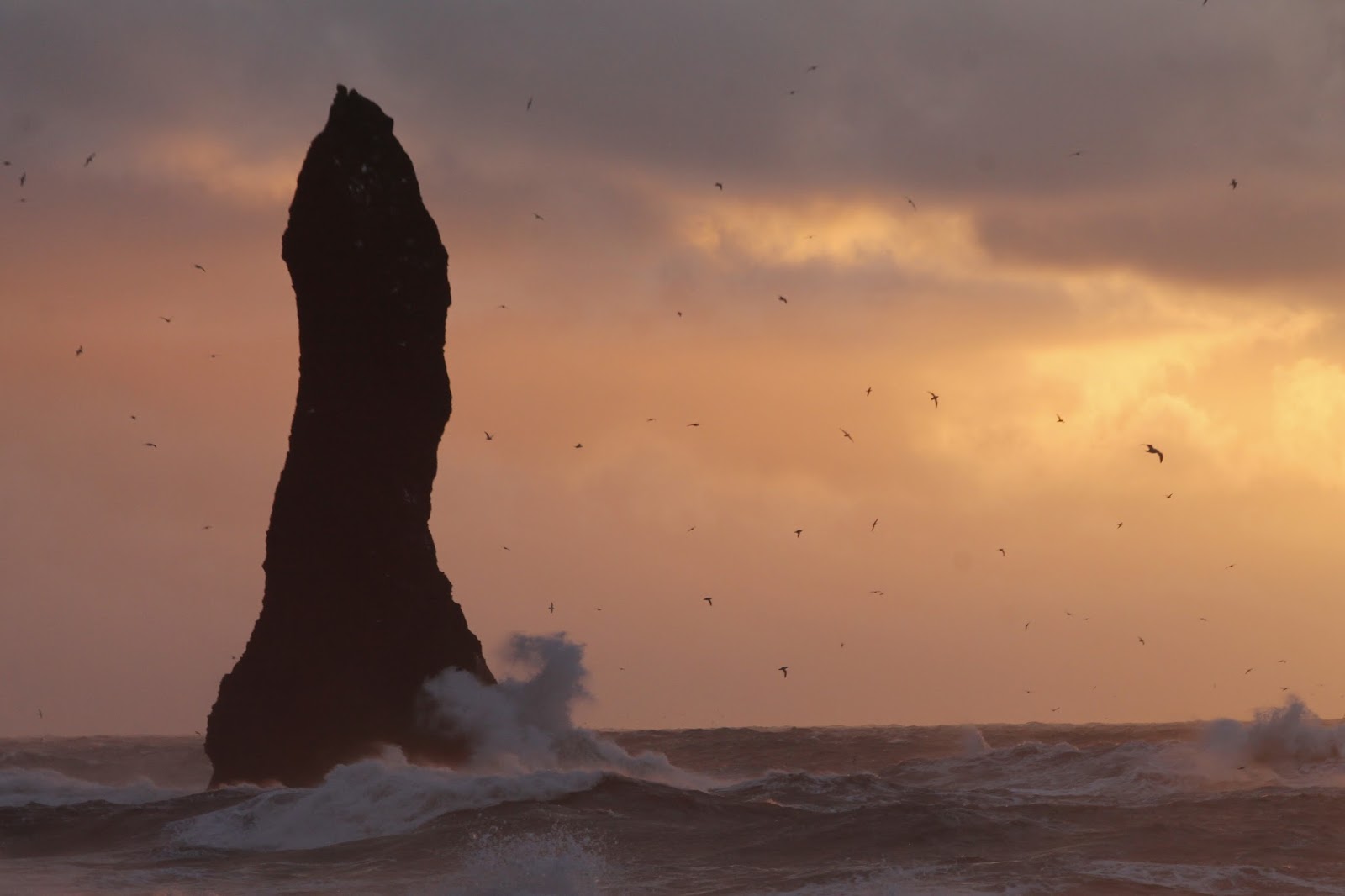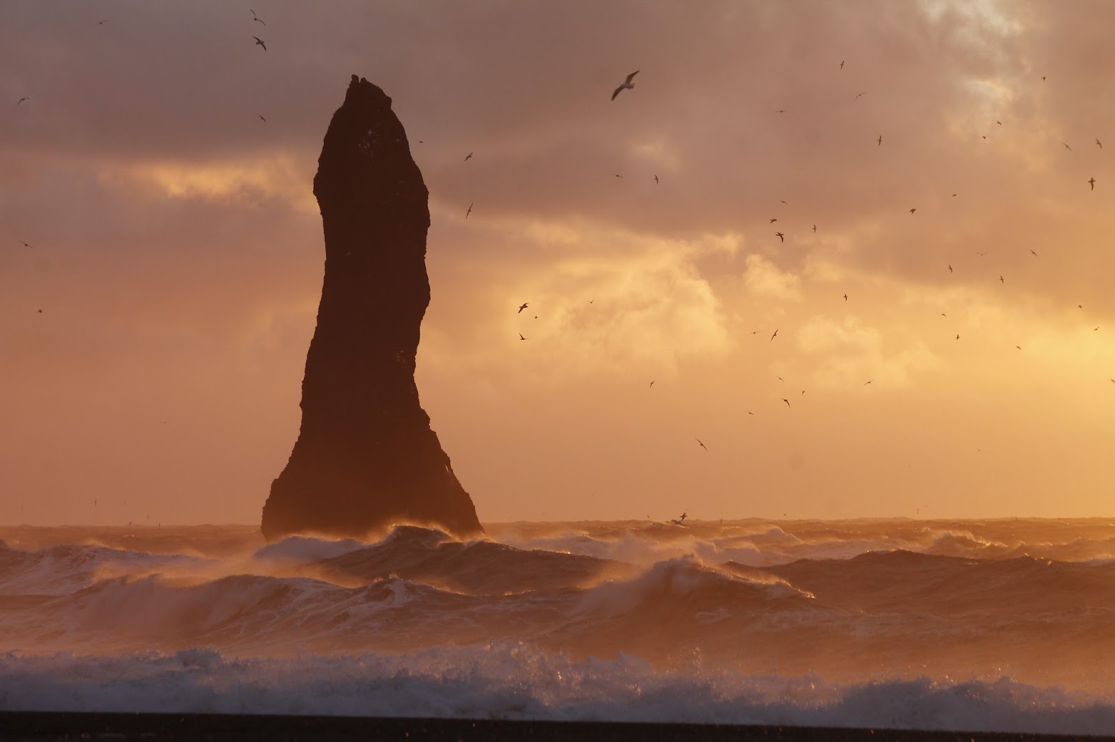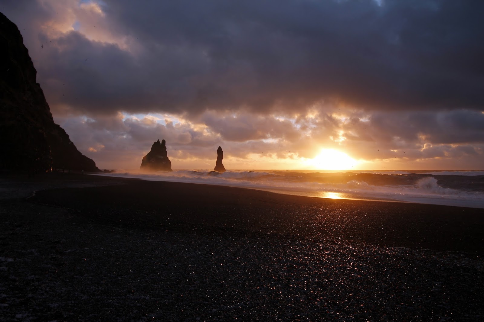 Our visit coincided with the sunrise which dramatically lit the restless sea and the eerie basalt sea stacks of Reynisdrangar which stand a short distance off shore.