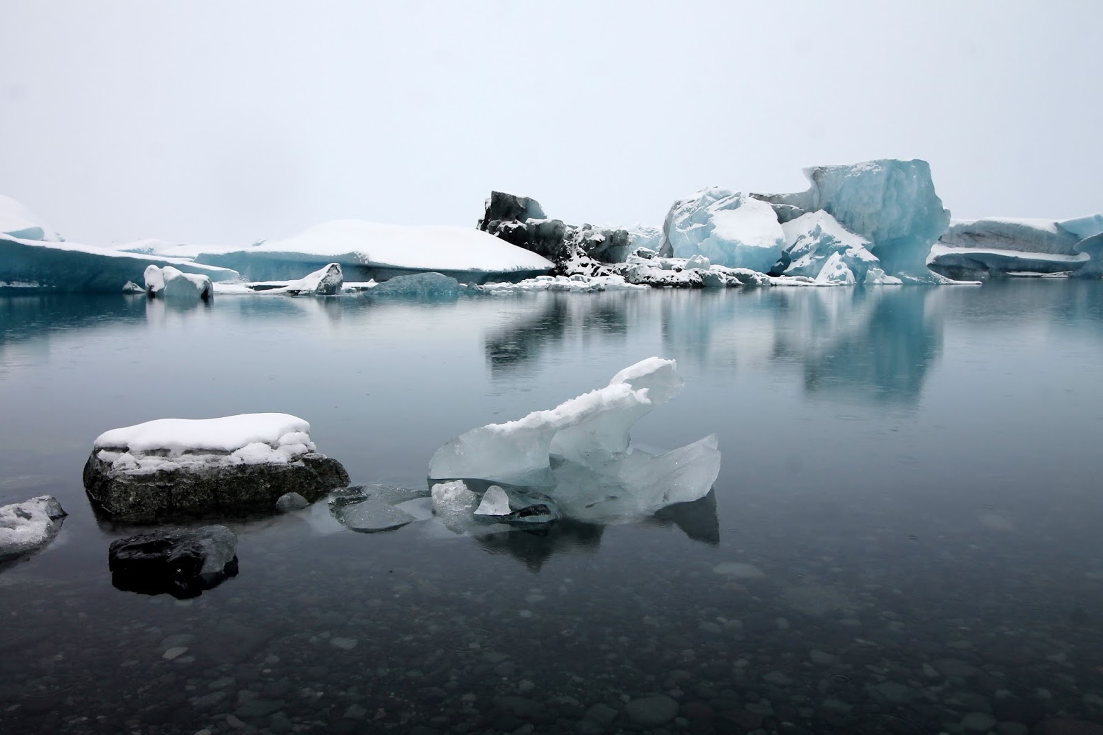 As the icebergs break away from the tongue of the glacier, they drift slowly to the mouth of the lagoon and eventually join the ocean. They are stated to float in the deep lagoon for around 5 years before they are released. Most are then broken up as they hit the waves and end up marooned on the black sands of the beach. It is an incredible place, even in the pouring rain.