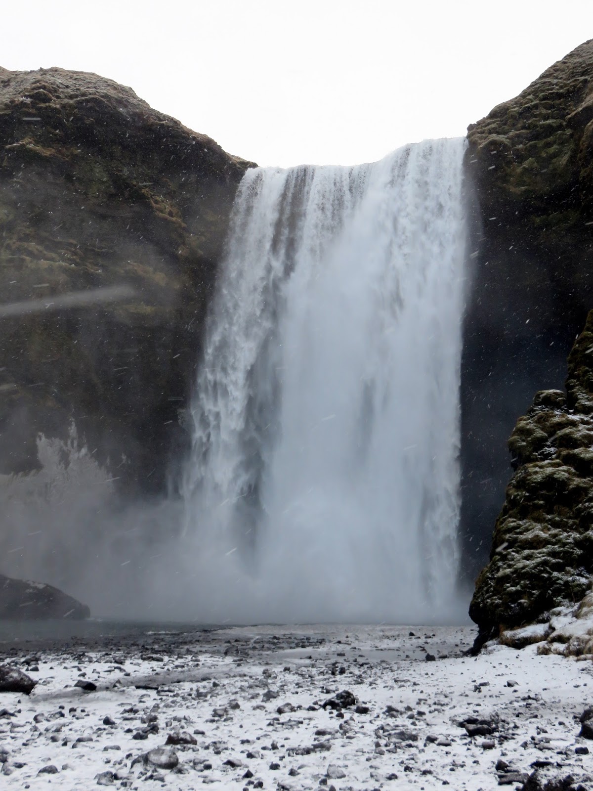 Continuing on, we made a short stop at the legendary Skógafoss waterfall, feature of many Icelandic postcards. Skógafoss is one of the biggest waterfalls in the country with a width of 25m and a drop of 60m. I had hoped to take some long exposure photos of it but the weather was awful while we were there so the big camera stayed in the car.
