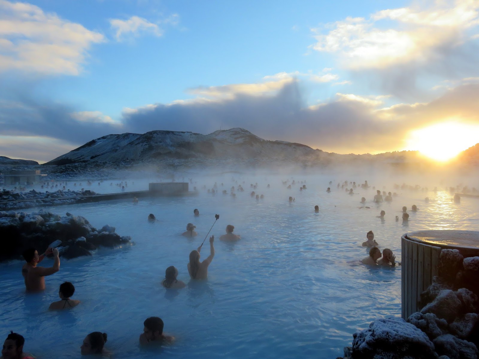 The lagoon itself is man-made, however, the constant 39 degree water is natural, pumped out of the ground by the nearby Svartsengi geothermal power station. The water is rich in minerals which are supposedly very good for treating skin complaints. Most of these photos were taken with a waterproof camera, which is allowed in the pool.