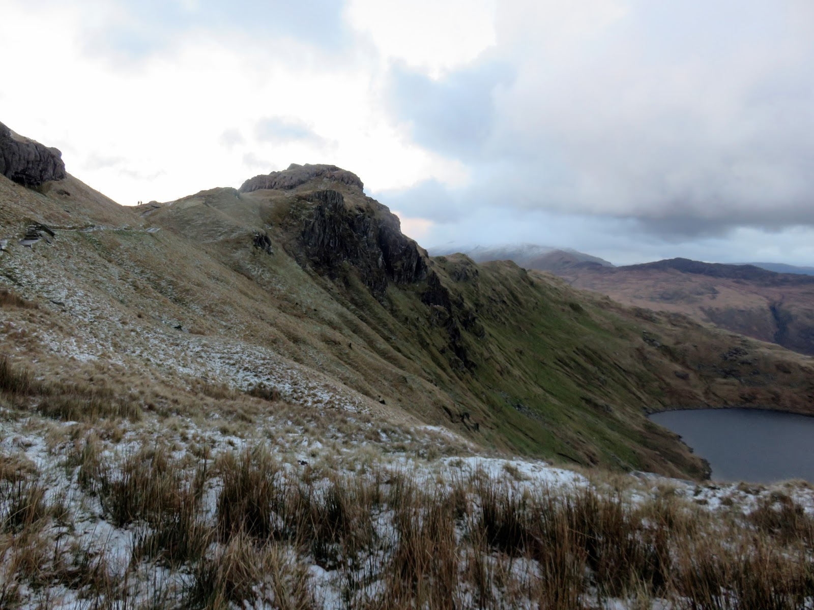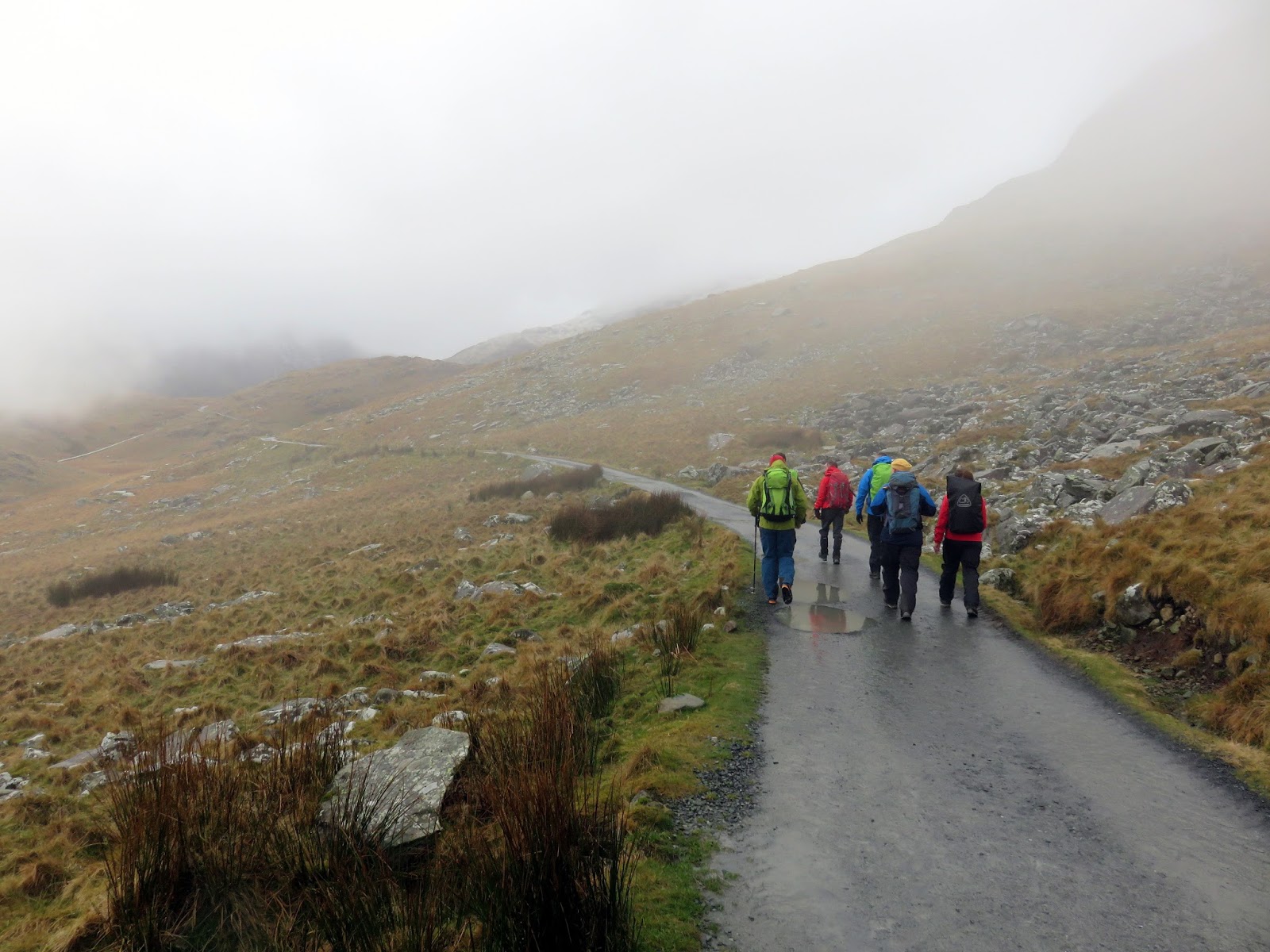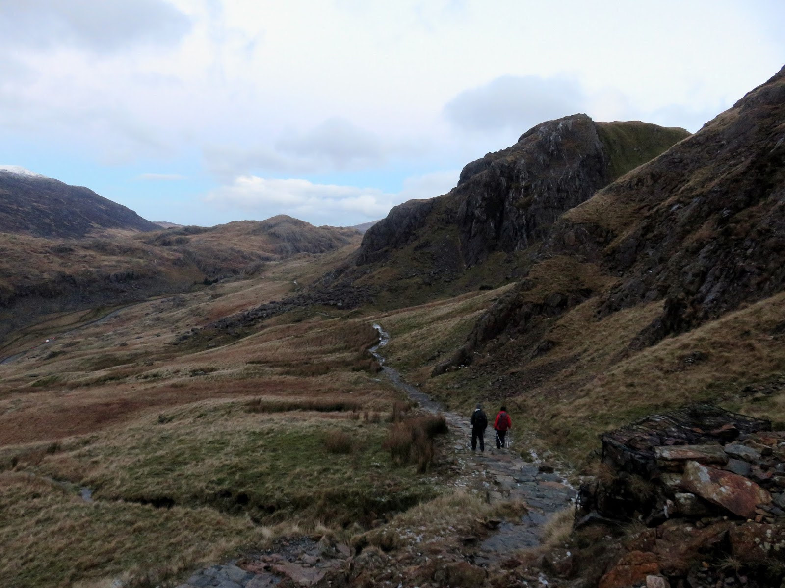 | Climbing the steep slope above Clogwyn y Garnedd |