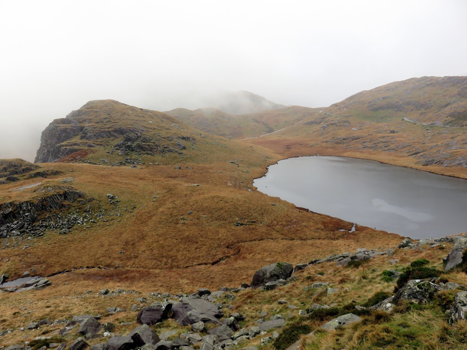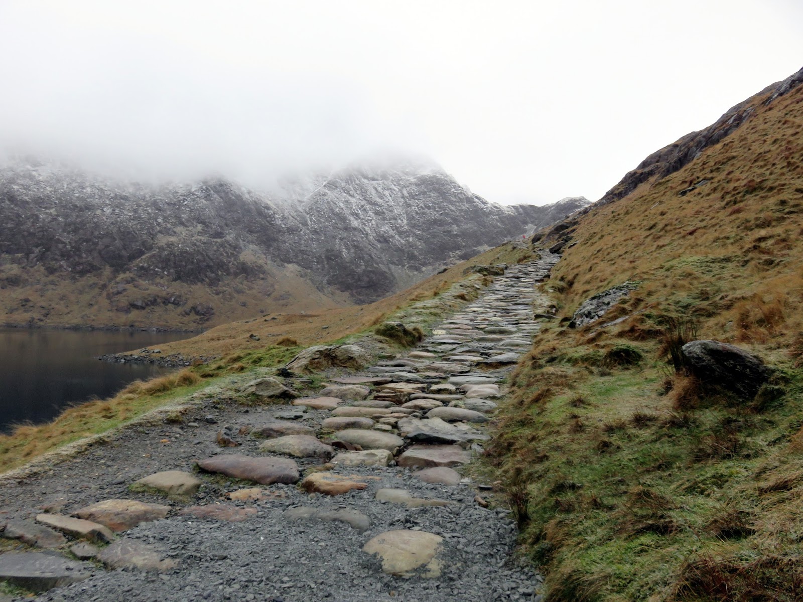 The walk started with an easy walk along the Miner’s Track which climbs very gradually up to Llyn Llydaw, crossing it via a causeway. The causeway was constructed in 1853 to facilitate the copper mining on Snowdon – prior to this horses and the extracted copper were carried across Llyn Llydaw by raft. The Miner’s Track was constructed at the same time.