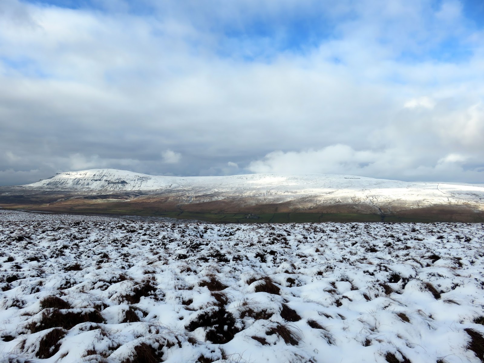 The direct route leads up onto the sprawling plateau of Fountains Fell and it wasn’t long before an impressive view of Pen y Ghent appears on the horizon. From this point, the route rises easily to Fountains Fell South Top, marked by a very small cairn.