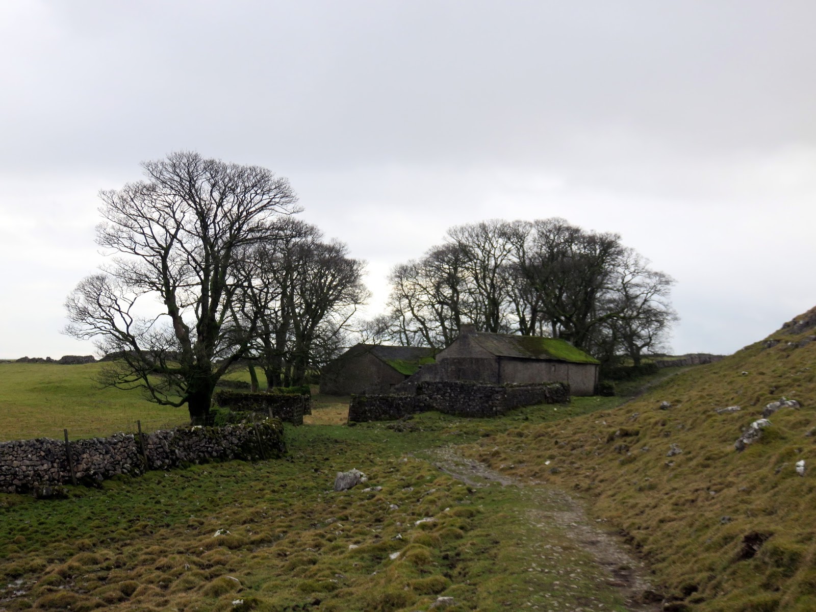 Eventually, I met the Arncliffe road as it passes around Nab End and I followed it down into the valley at Darnbrook House, a 12th Century farm house. The valley of Darnbrook Beck leads to Cowside Beck where a stone footbridge crosses the river. Ahead is one last climb up onto the interesting limestone heights of Flask and Out Pasture.