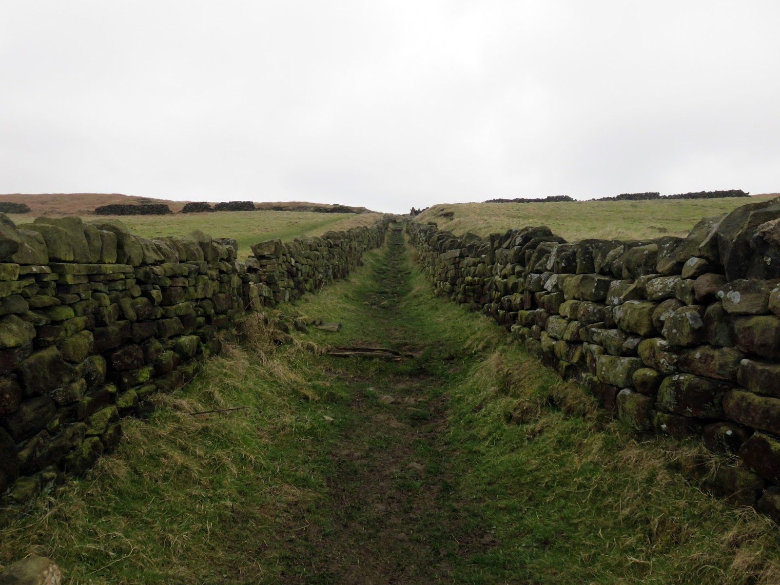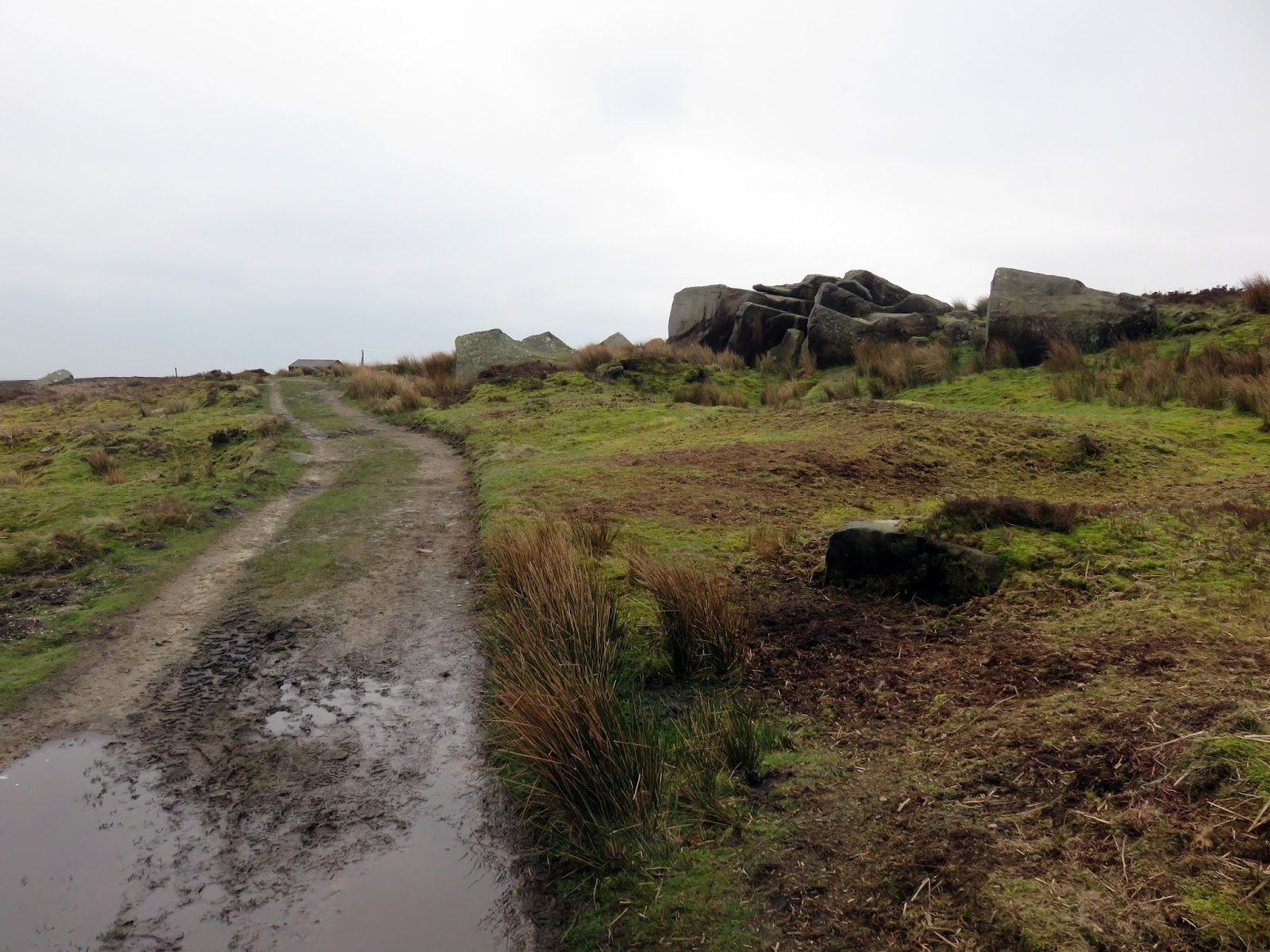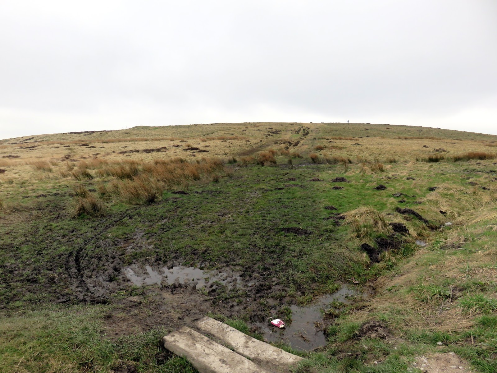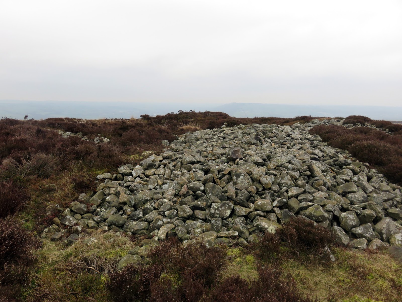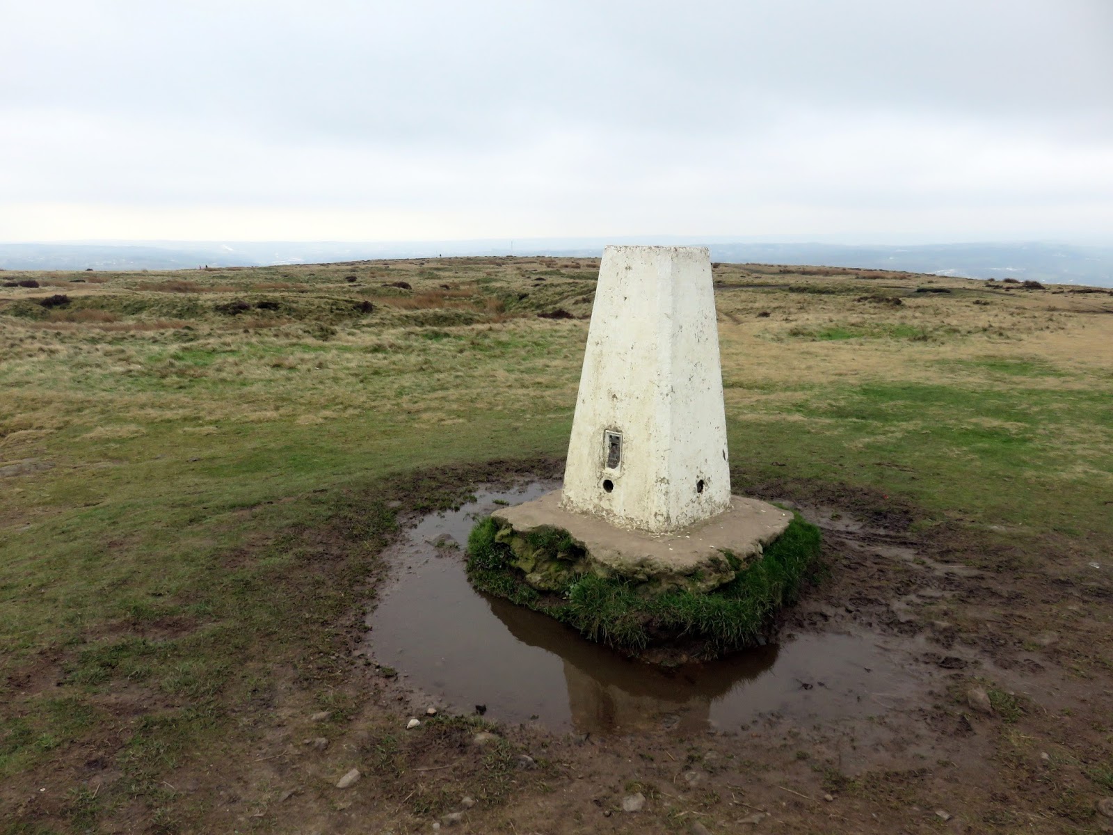 Heading to the summit is a path reminiscent of many across the Pennines – large blocks of stone floating atop a peaty bog. The shallow slopes around the summit limit the views though the radars of RAF Menwith Hill are visible on a clear day. A short distance from the summit is Lanshaw Lad, a vertical block of stone that marked the 19th Century boundary between Burley and Ilkley.