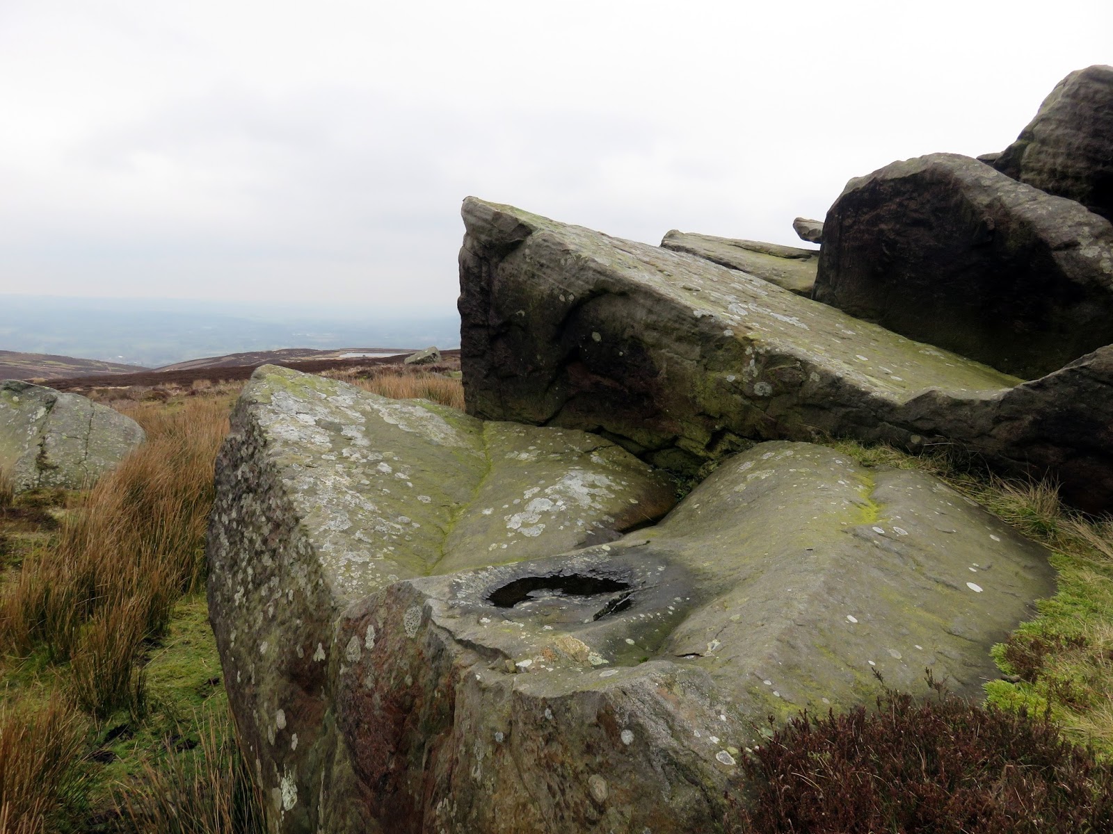 I returned to the Twelve Apostles and continued on past High Lanshaw Dam to the Great Skirtful of Stones, a large though badly damaged Bronze Age cairn. Close by is a fine outcrop of gritstone that commands a view over Otley and The Chevin – the perfect place for a sandwich stop.