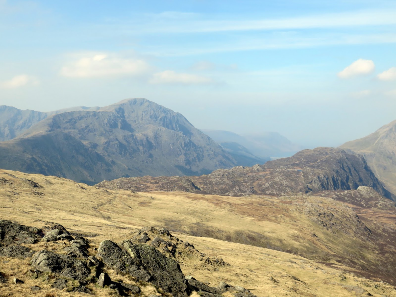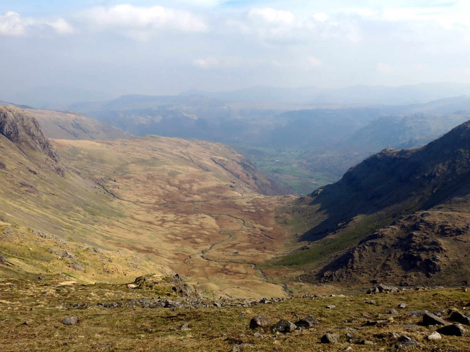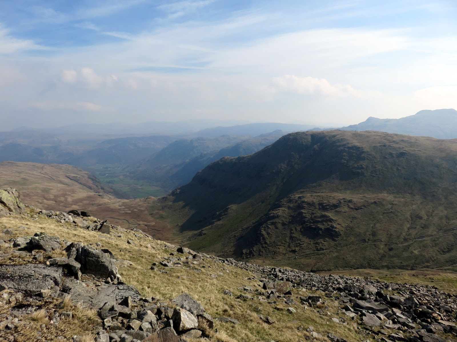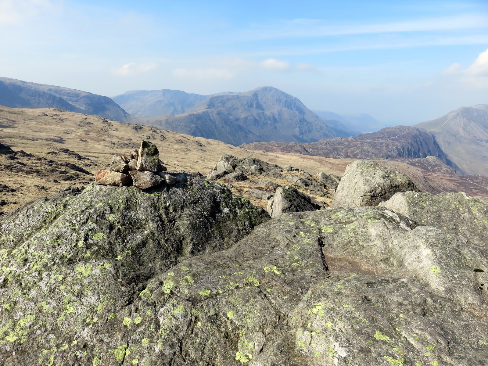 The wind had picked up, bringing with it some cloudier weather and a significant haze that started to restrict the views a bit. The crosses Gillercomb Head and affords fine views down into Gillercomb below. Ahead, the path steadily climbs towards the summit of Green Gable.