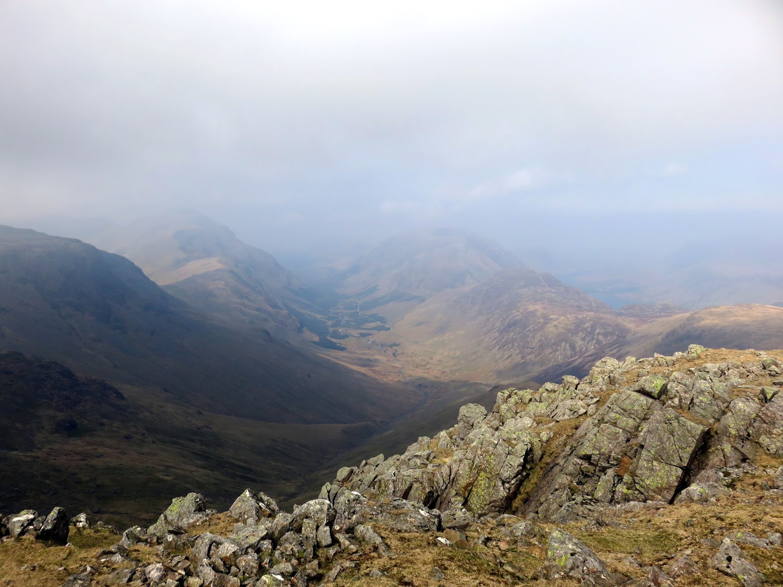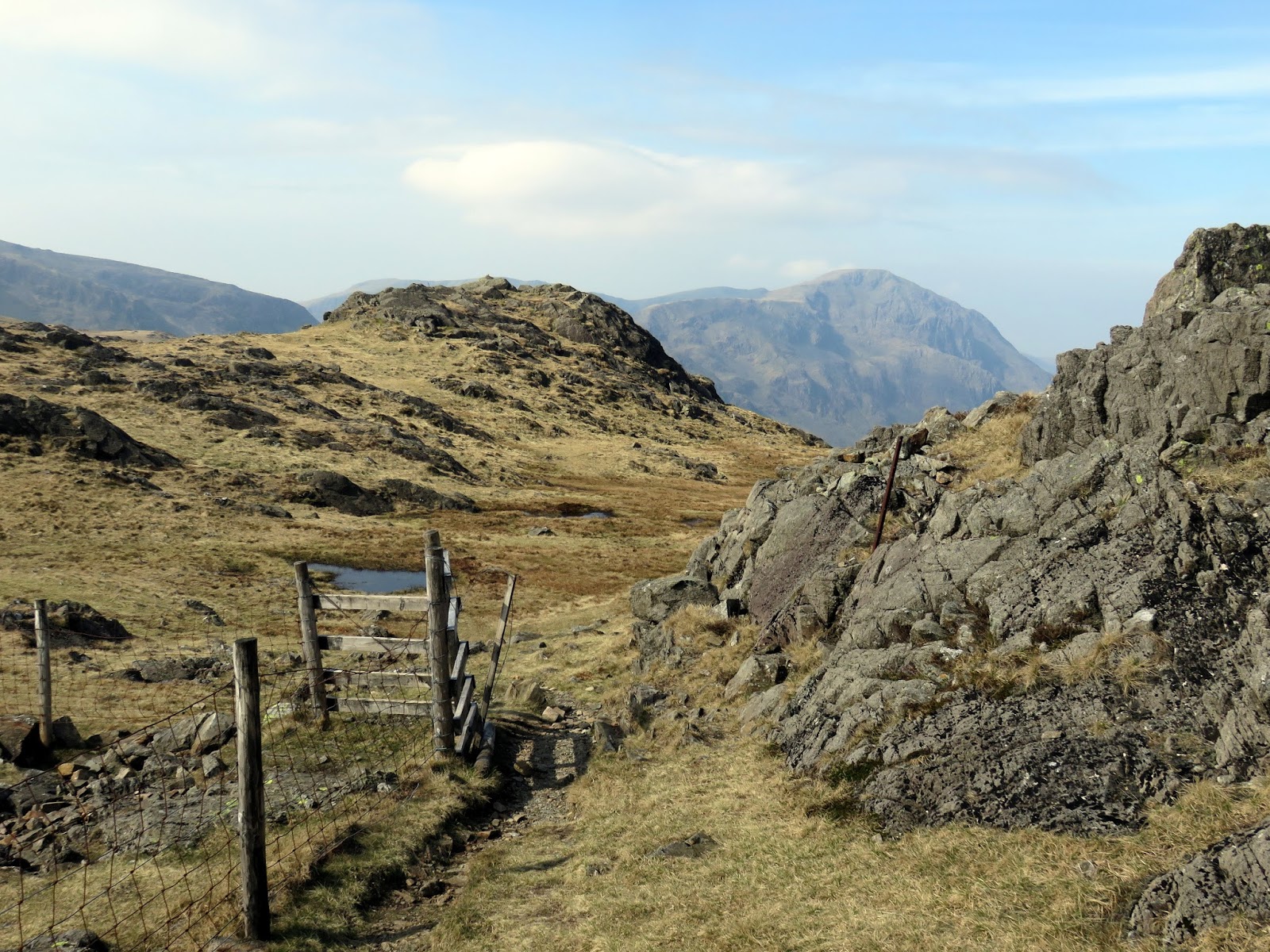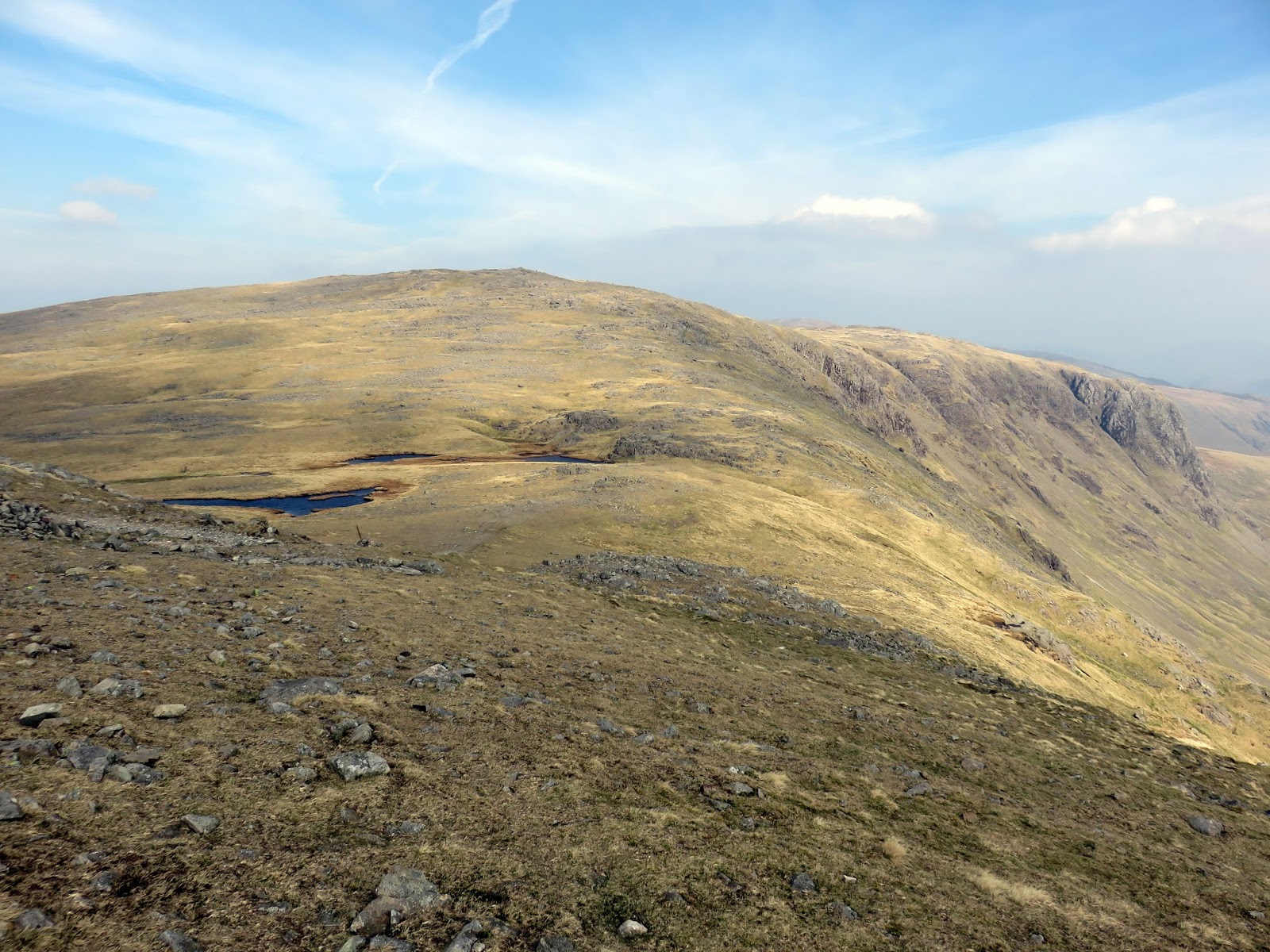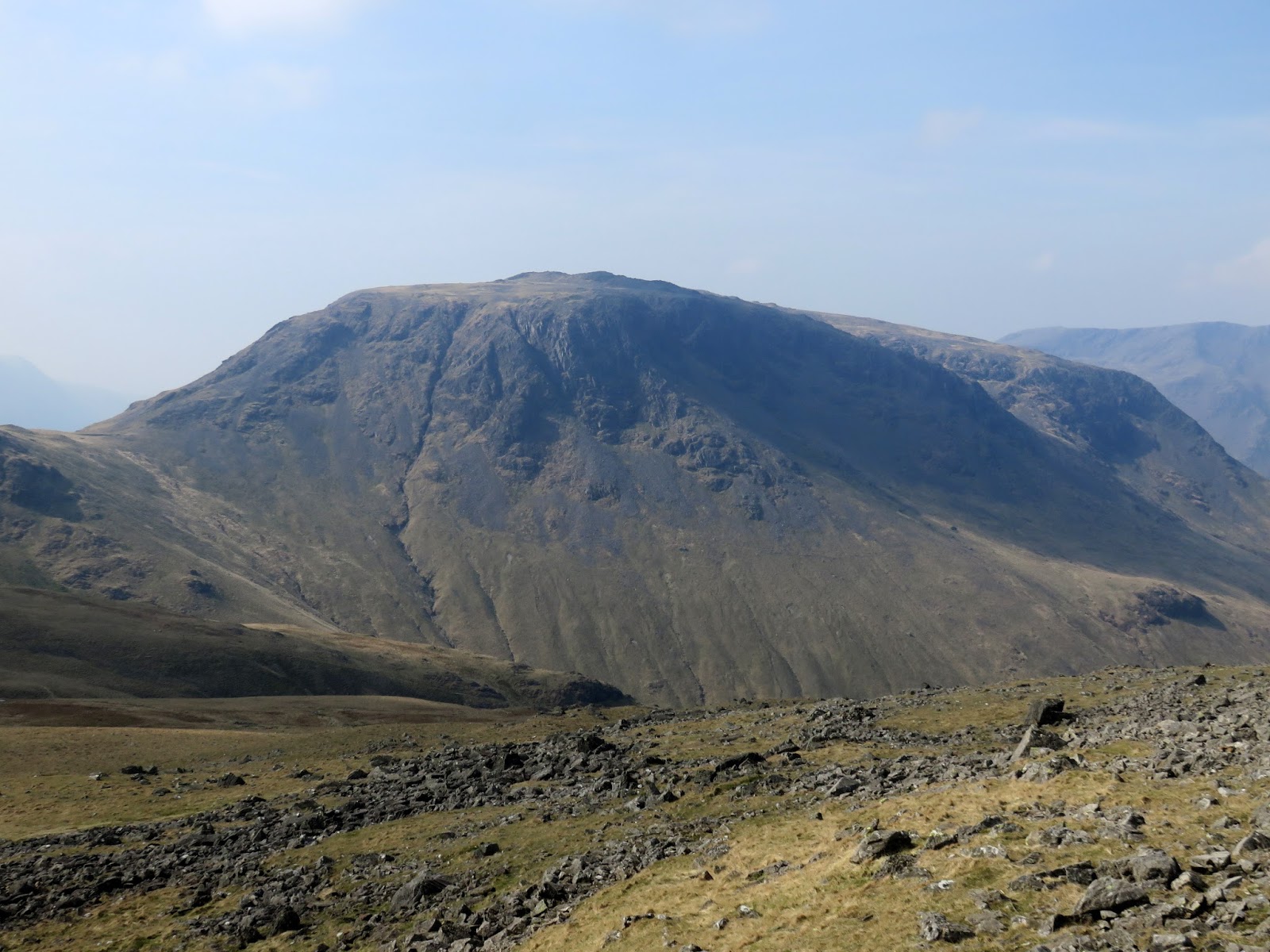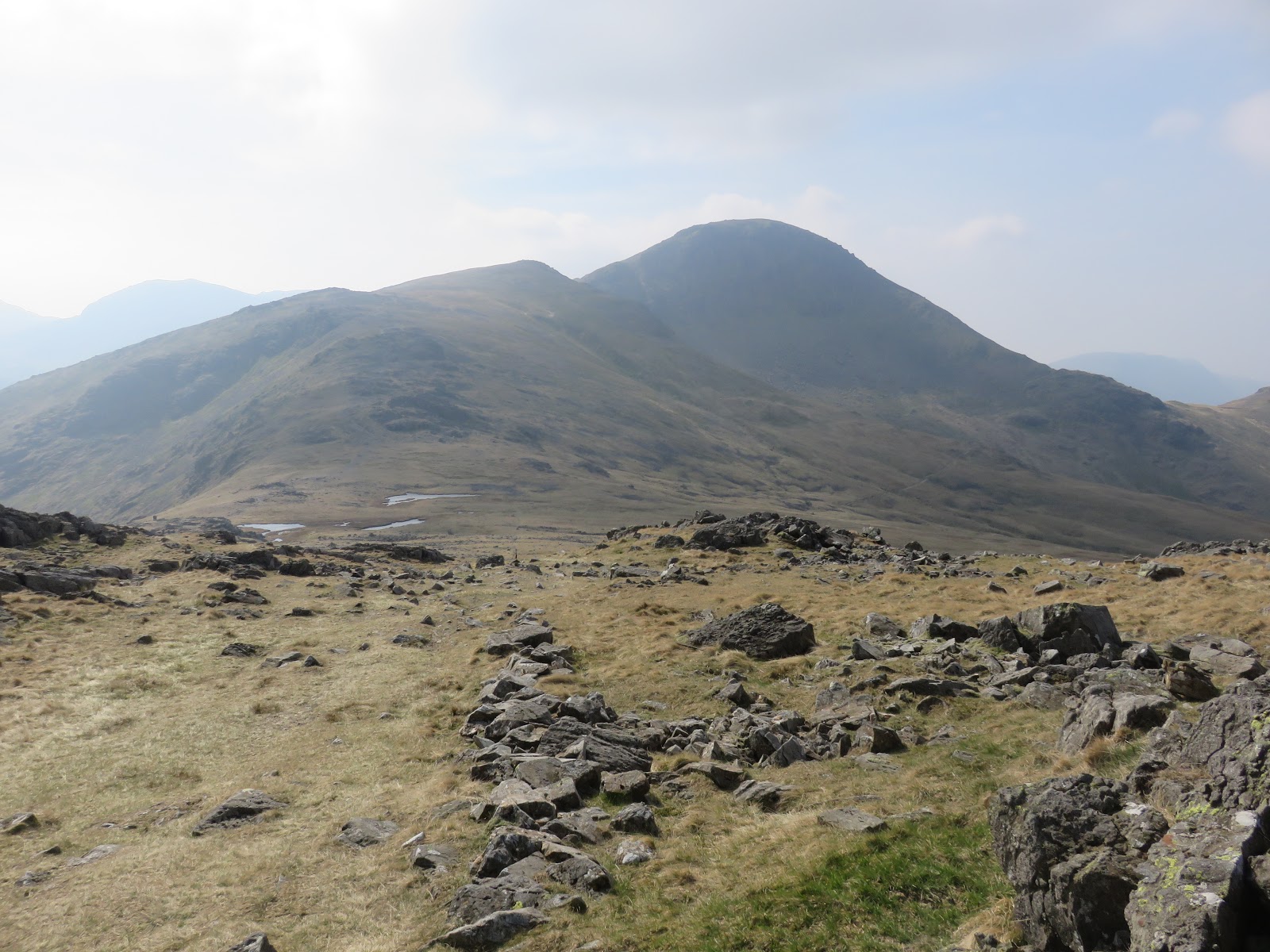 The wind had picked up, bringing with it some cloudier weather and a significant haze that started to restrict the views a bit. The crosses Gillercomb Head and affords fine views down into Gillercomb below. Ahead, the path steadily climbs towards the summit of Green Gable.